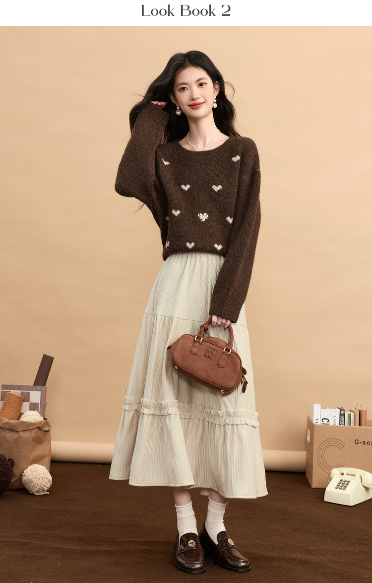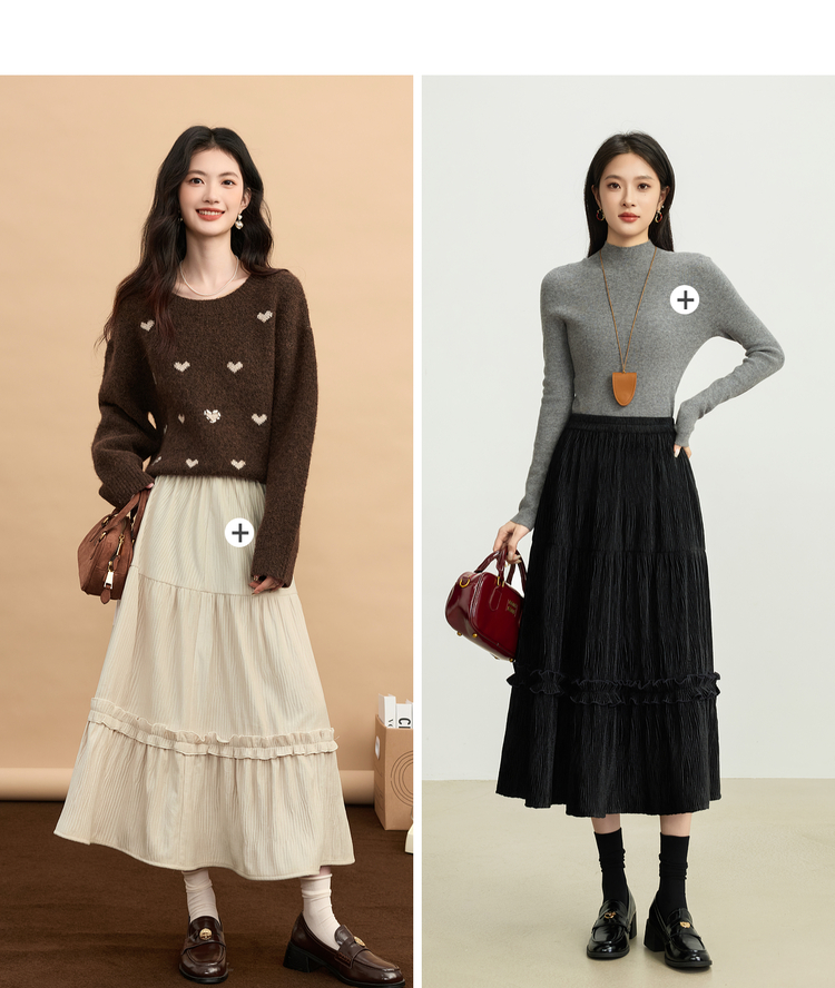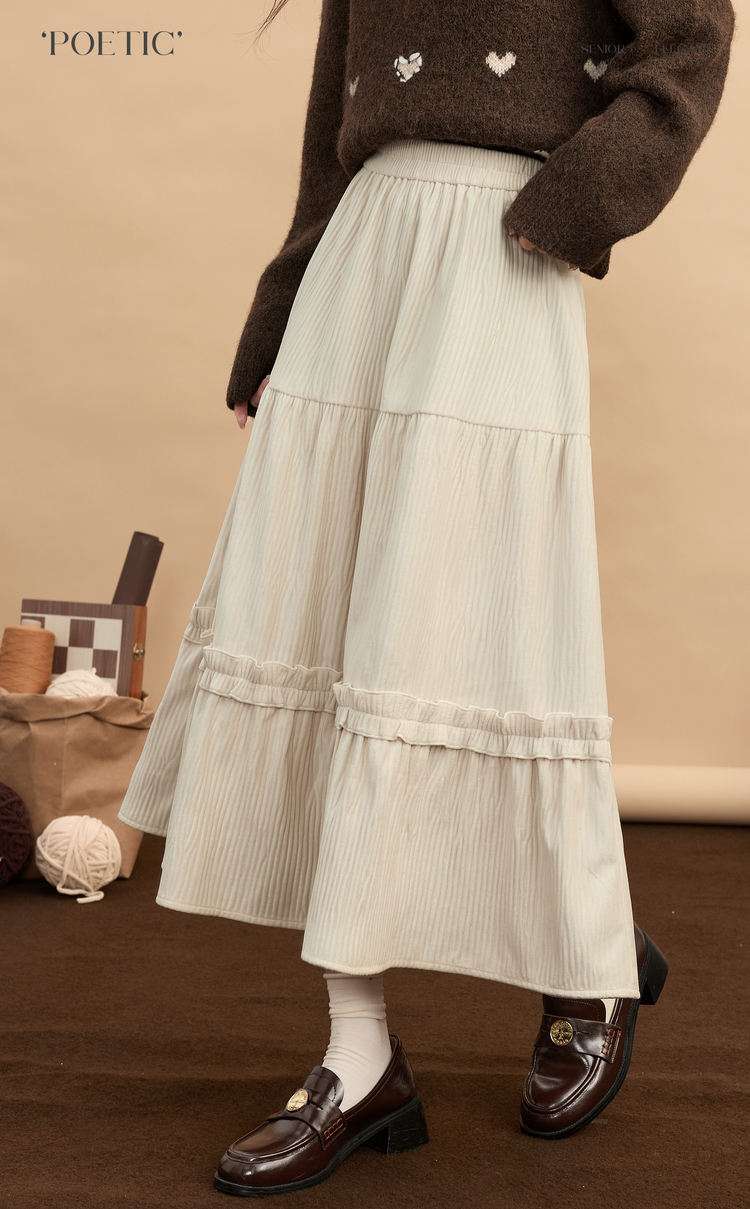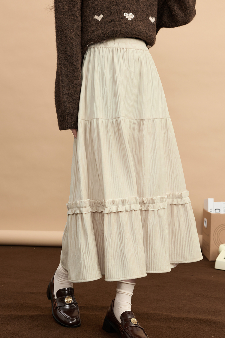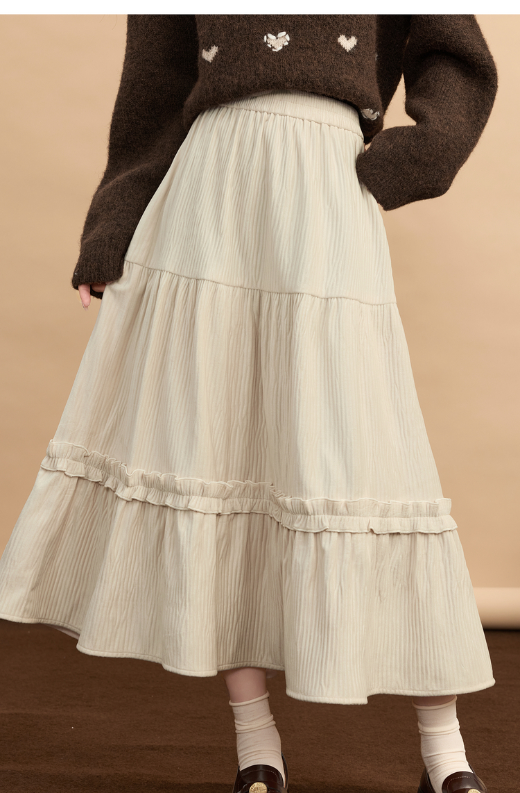 【11/19新品】熙世界三宅风木耳边丝绒半身裙女2025秋冬款高腰遮胯显瘦a字长裙