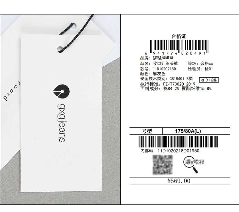 gxg.jeans男装裤子夏季韩版束脚卫裤宽松灰色运动裤男休闲长裤11D1020218D