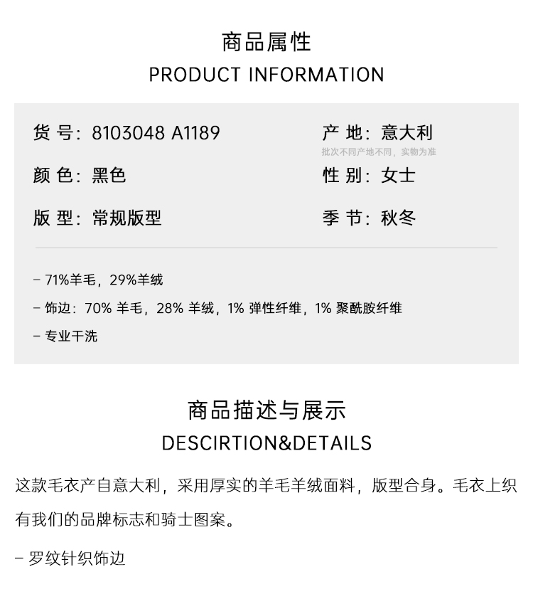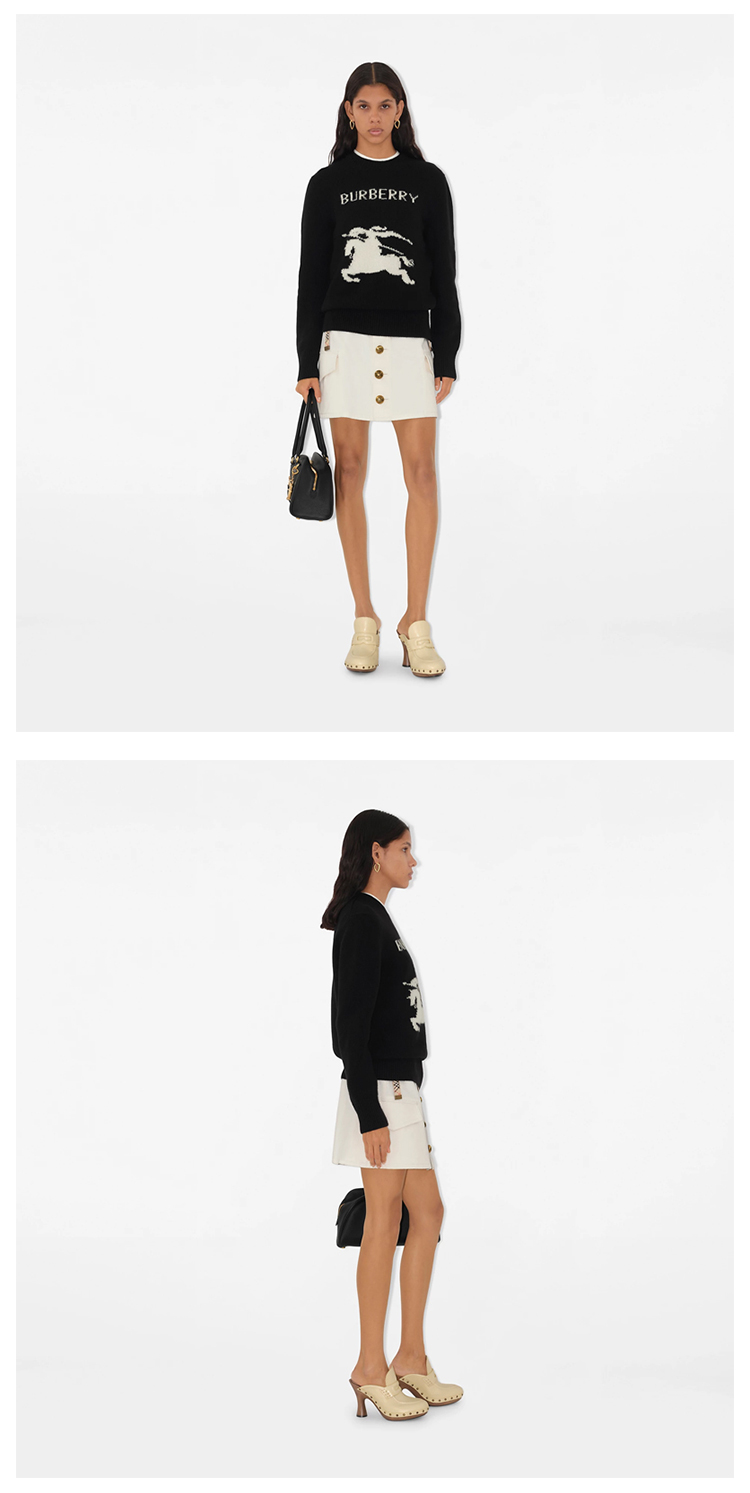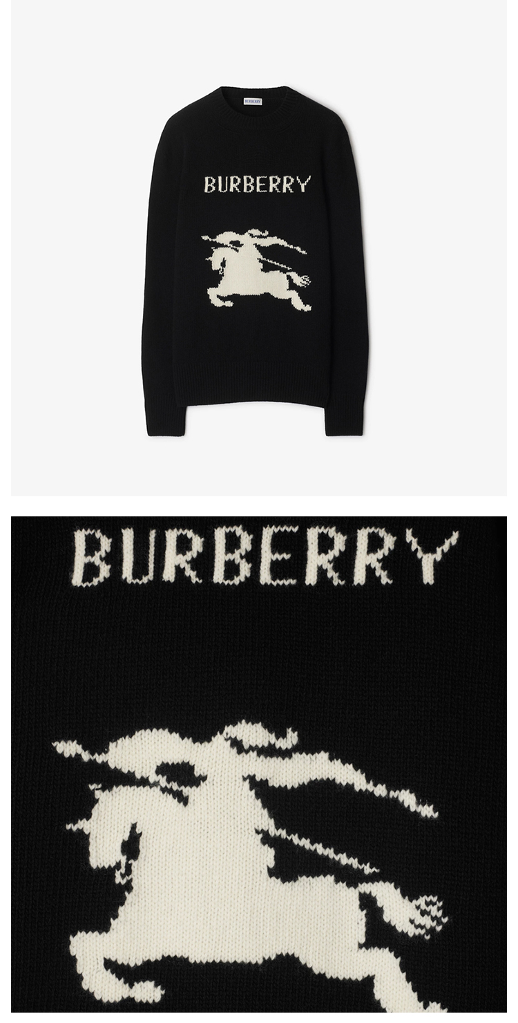 BURBERRY 巴宝莉 女士马术骑士徽标嵌画羊毛针织衫 黑色 8103048 A1189