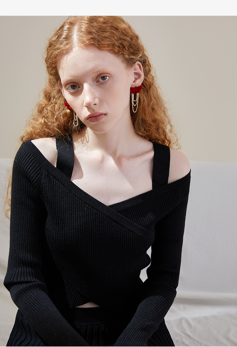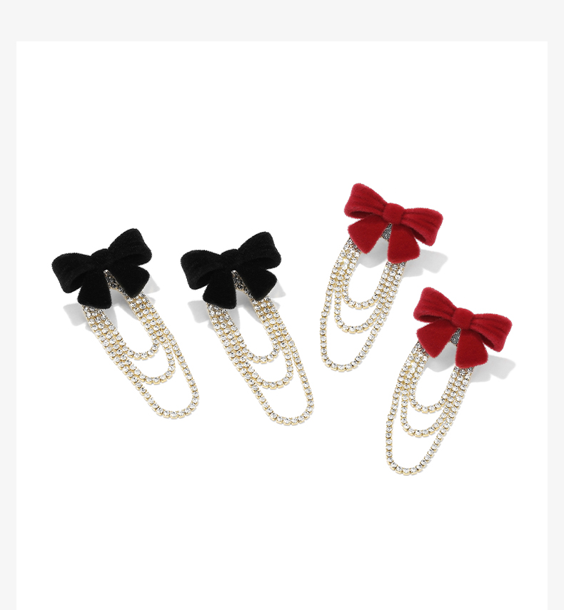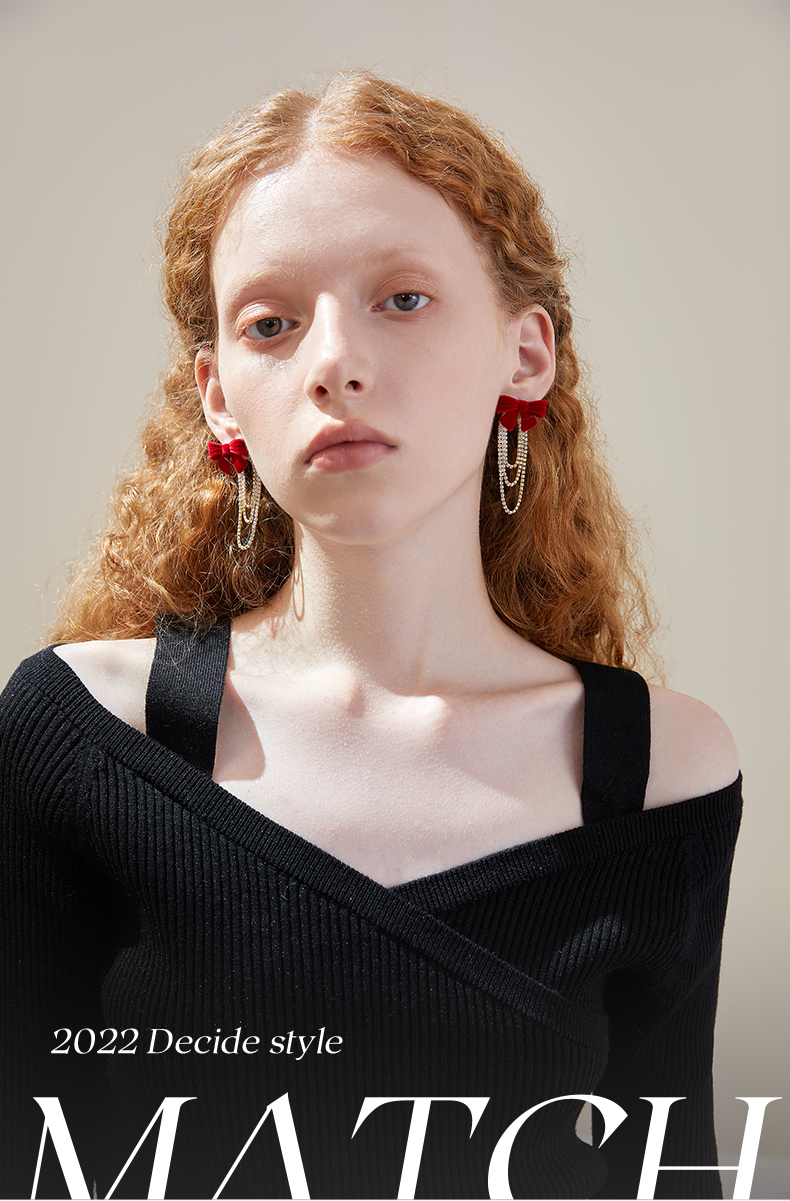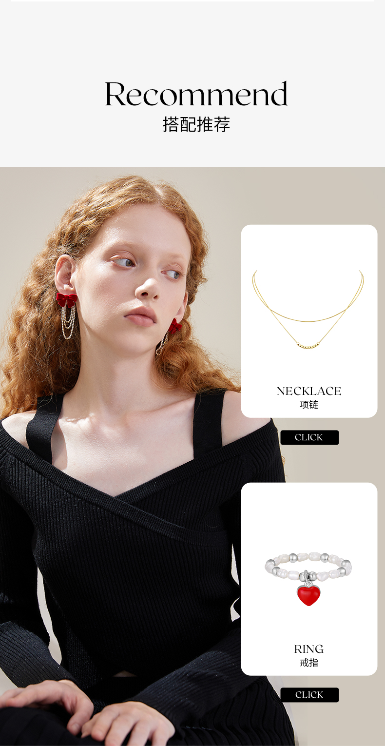ZEGL红色丝绒蝴蝶结耳环女小众设计感高级流苏耳钉秋冬新年耳饰品