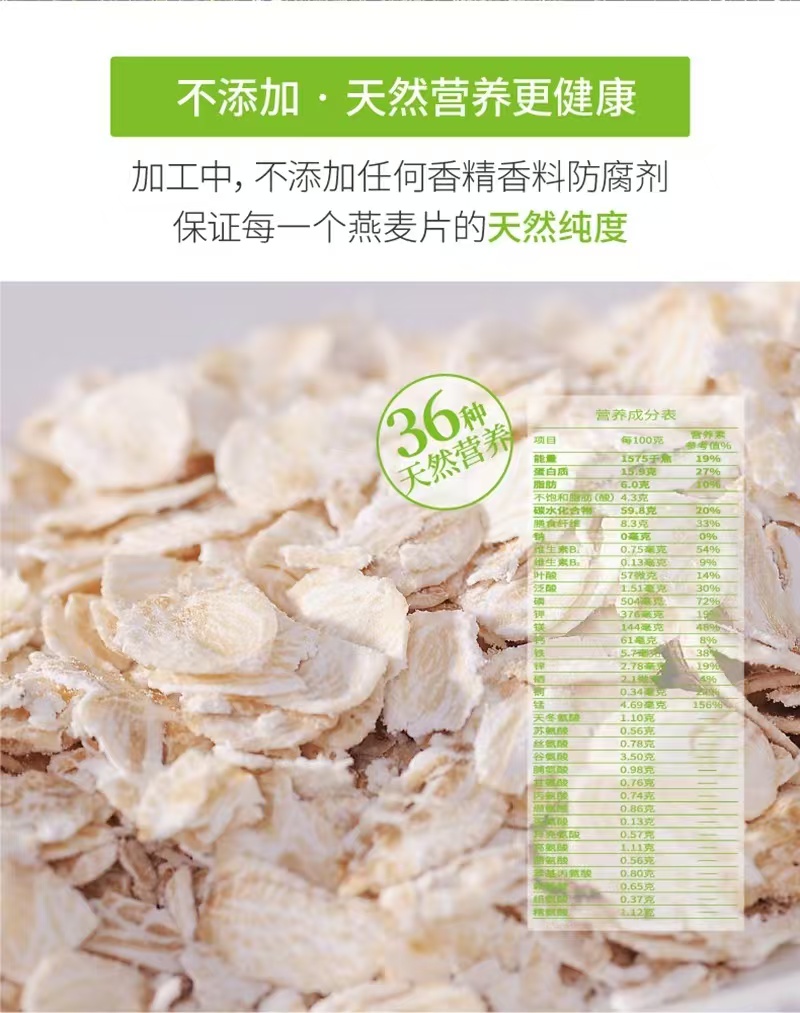 天然燕麦中含有丰富的营养成分,加工过程无添加剂及辅料,纯天然制造。