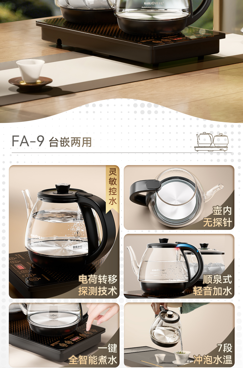 金灶FA-9全自动上水烧水壶泡茶专用茶台一体保温电热水壶2025新款