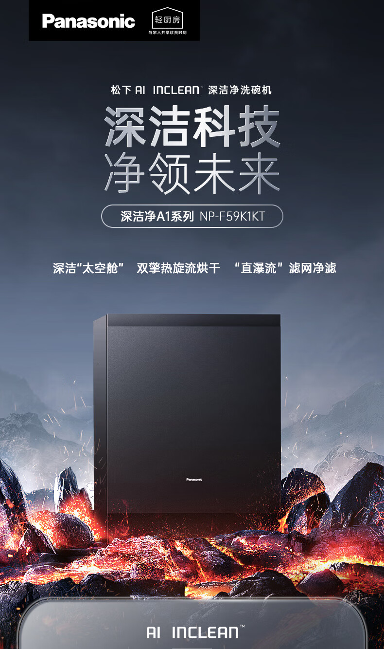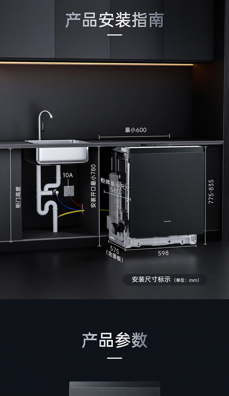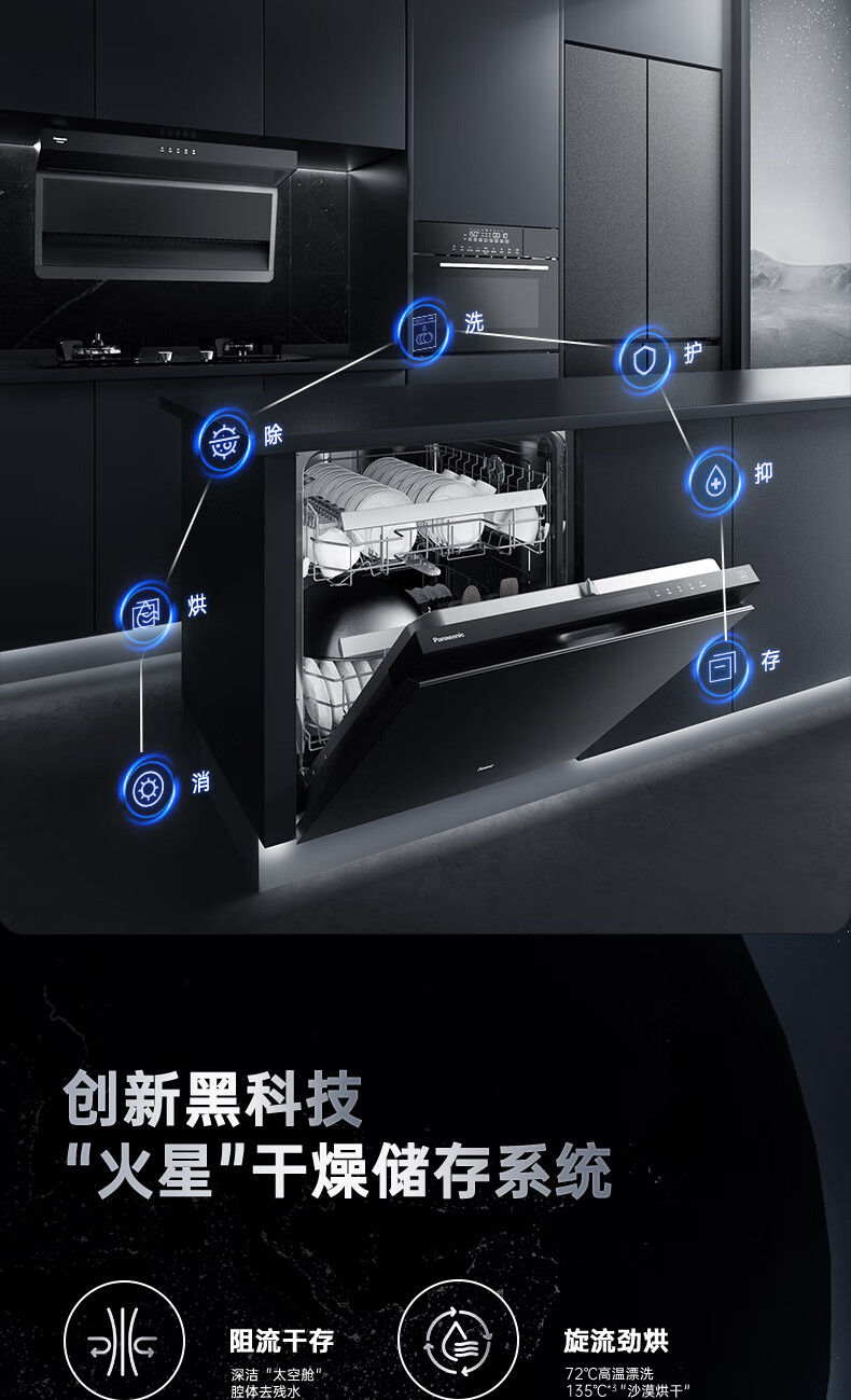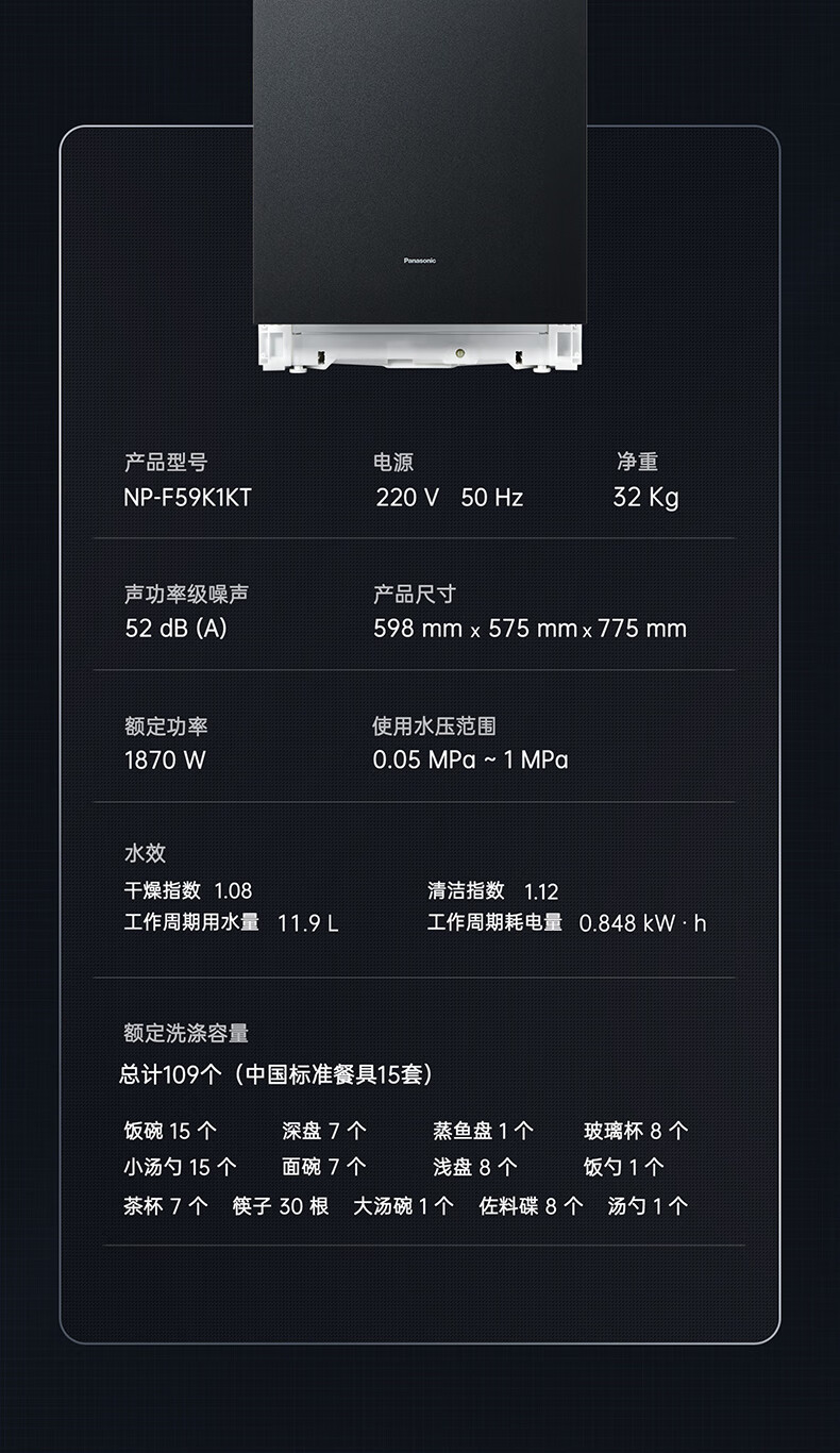 8月内购 松下15套洗碗机NP-F59K1KT嵌入式大容量A1系列135℃高温除菌洗烘干