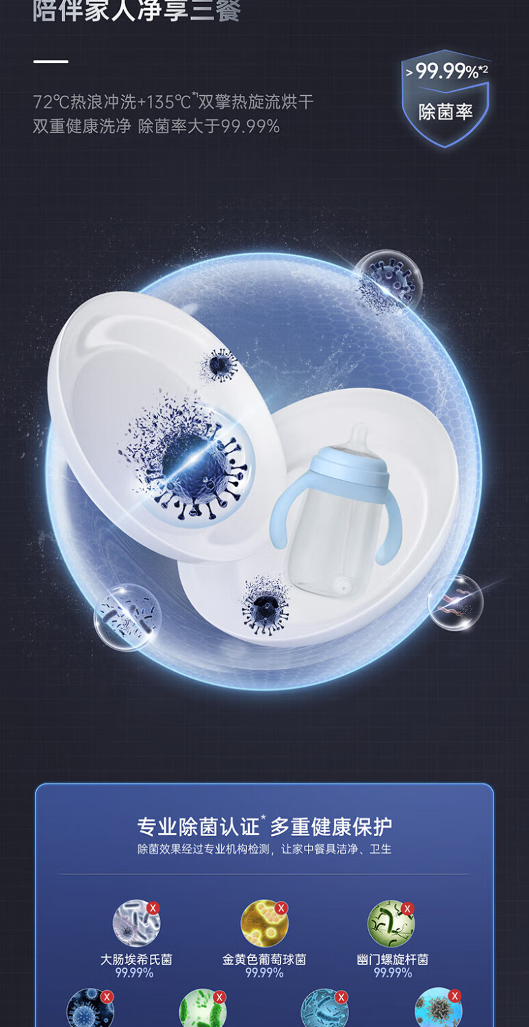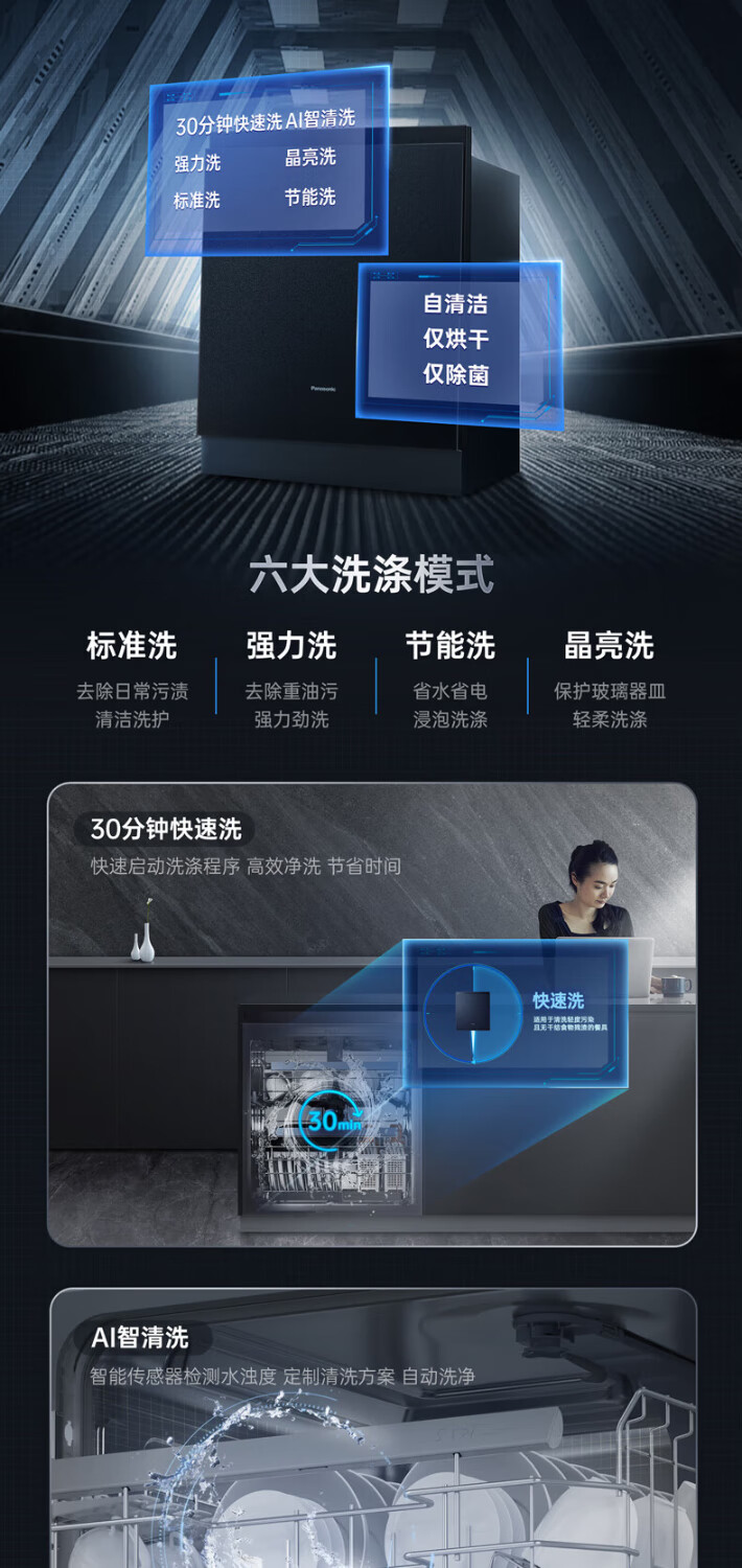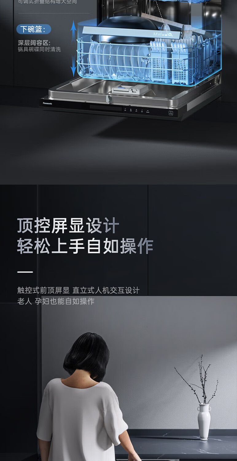8月内购 松下15套洗碗机NP-F59K1KT嵌入式大容量A1系列135℃高温除菌洗烘干