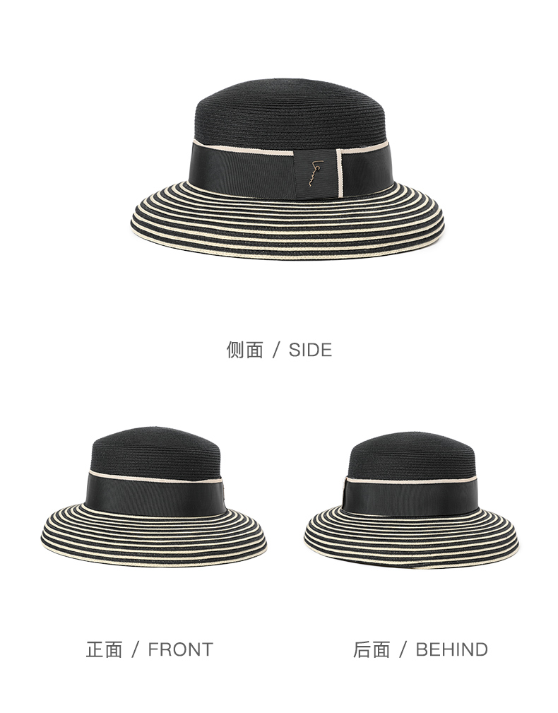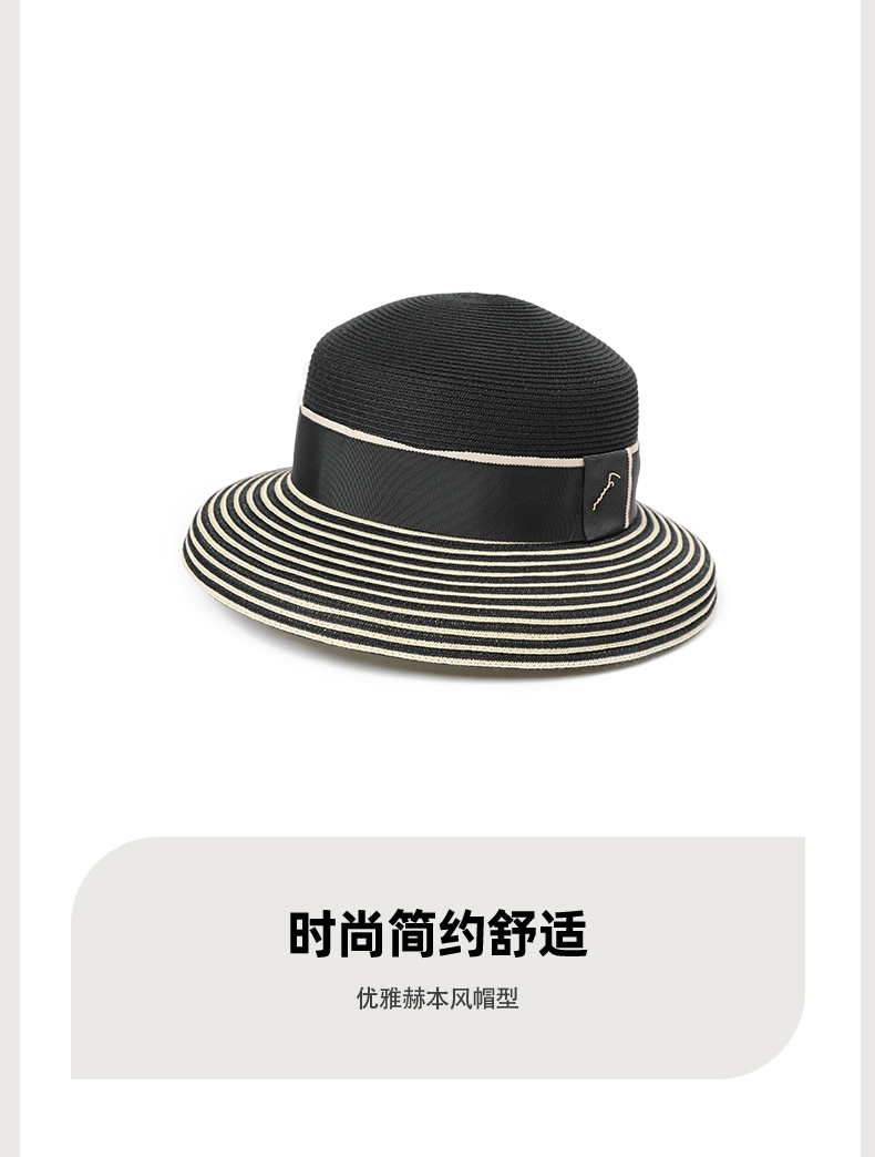 11232104001 帽仕汇JEFFSUN赫本风草帽女夏天优雅条纹太阳帽出游拍照遮阳帽