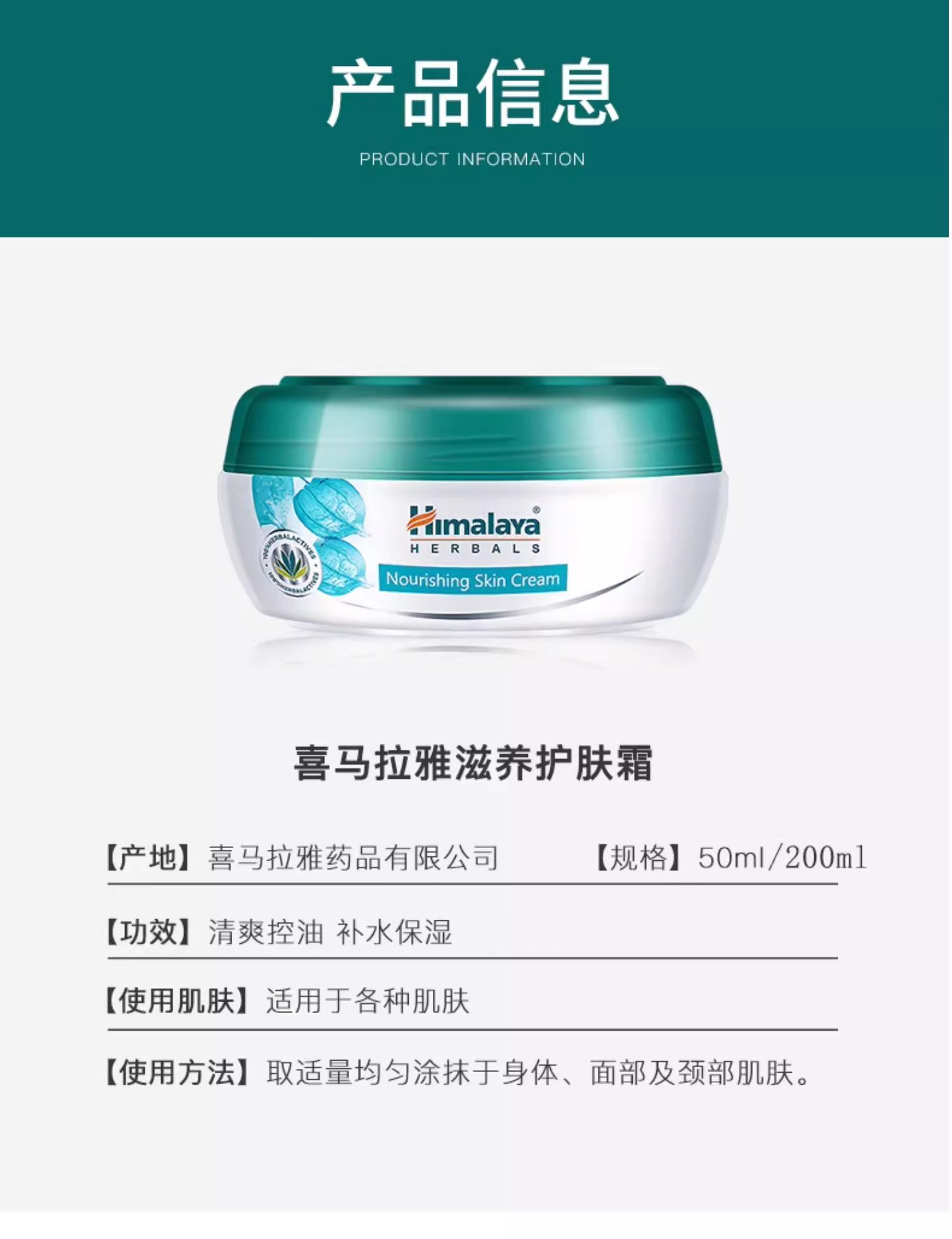 【跨境】Himalaya喜马拉雅保湿面霜50ml(效期:2027.6)