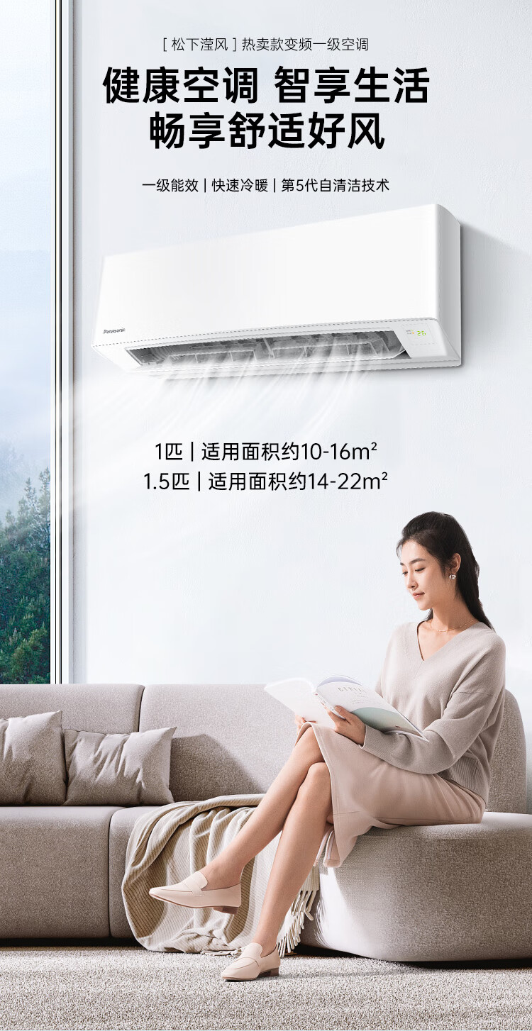 松下(Panasonic)空调 新一级能效 卧室空调变频冷暖两用空调挂机 高温杀菌 WiFi智能 以旧换新 1.5匹 一级能效 升级款R13KT10