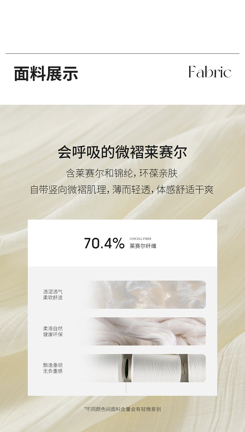 【内购】尚都比拉微褶莱赛尔套装轻盈飘逸落肩宽松衬衫&松紧腰中长A字半身裙套装-58654
