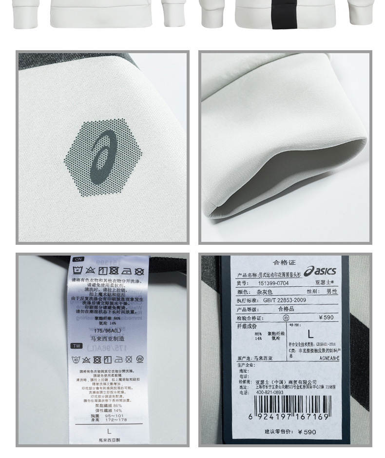「断码清仓」ASICS 亚瑟士 男款运动印花圆领套头衫 151399