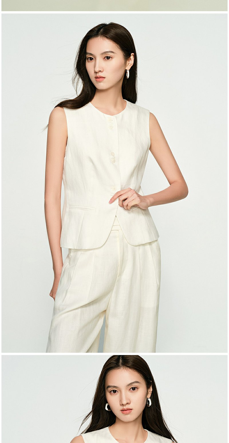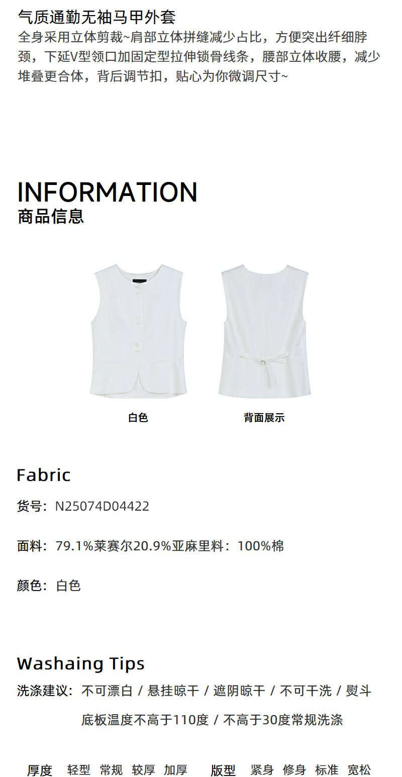 NEELLY纳俪商场同款春季新款时尚气质无袖马甲女极简个性收腰上衣N25074D04422