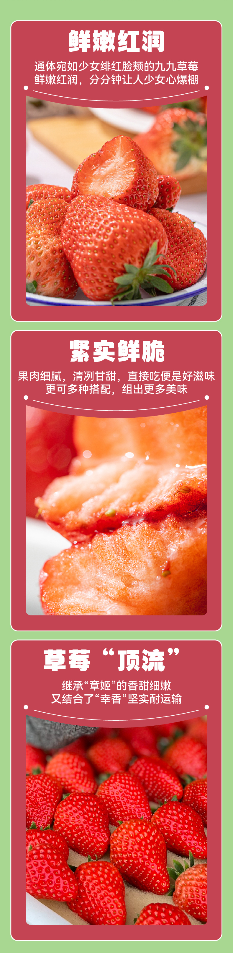 注意事项:草莓轻微压伤不影响食用暂不售后,如无法判断能否食用可进线联系在线客服。