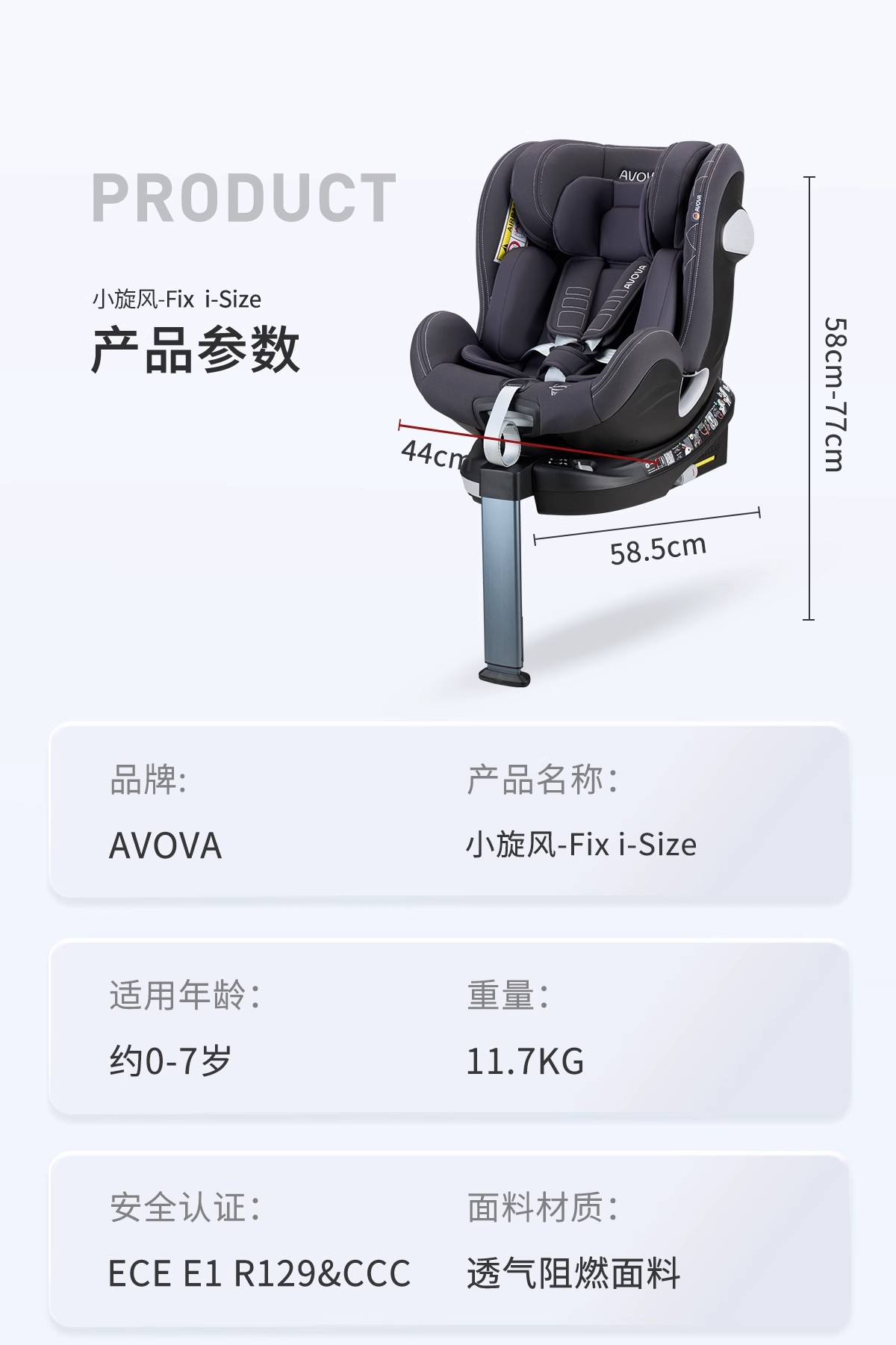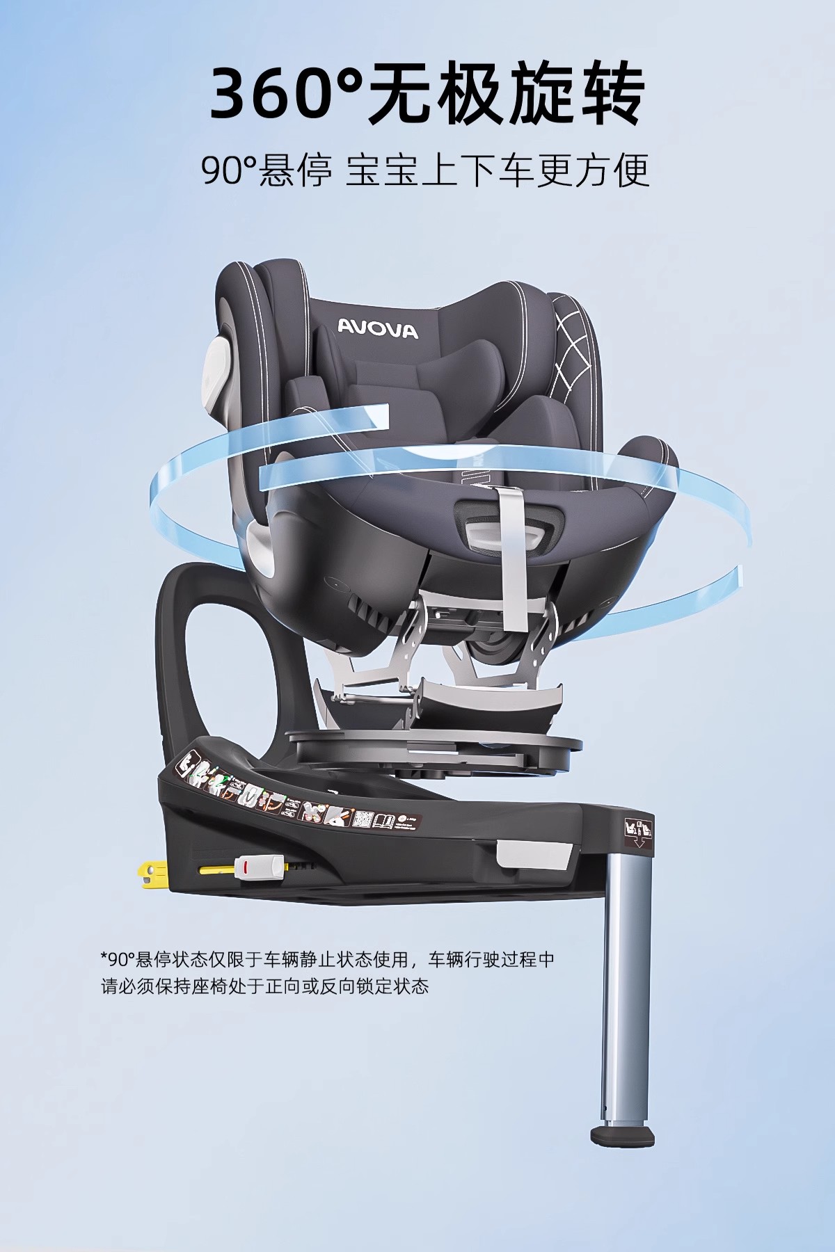 德国AVOVA Swan-Fix i-Size 小旋风 儿童安全座椅汽车用宝宝360度旋转座椅 0-7岁