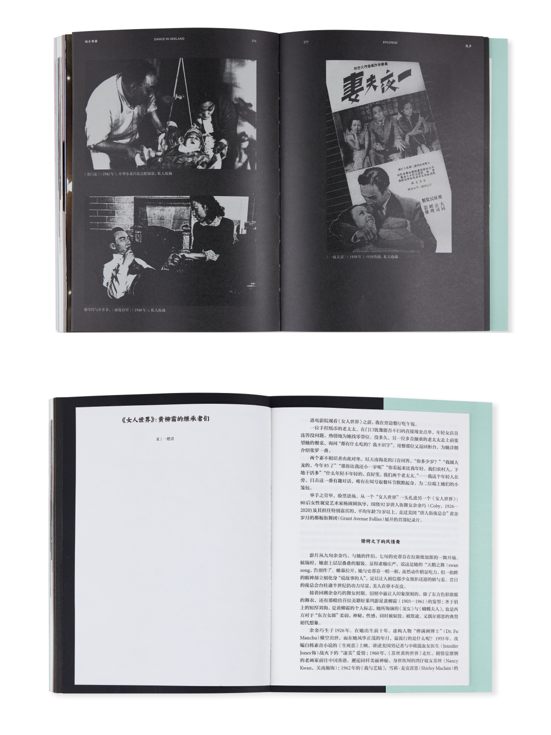 作为本书的落幕,一切回到圆圆整个项目的创作来源——华裔女导演伍锦霞。由学者兼导演魏时煜回顾伍锦霞的电影之路。其作品曾被世人遗忘,在今天看来却依然先锋。从伍氏到余金巧和都板街舞团,再到挖掘和重现她们历史的圆圆,几位不同时代的女性在无形中建起了纽带,这也是贯穿本书的潜在线索。接下来,《她乡舞曲》将去往世界的各个角落,也许它将被再次续写。