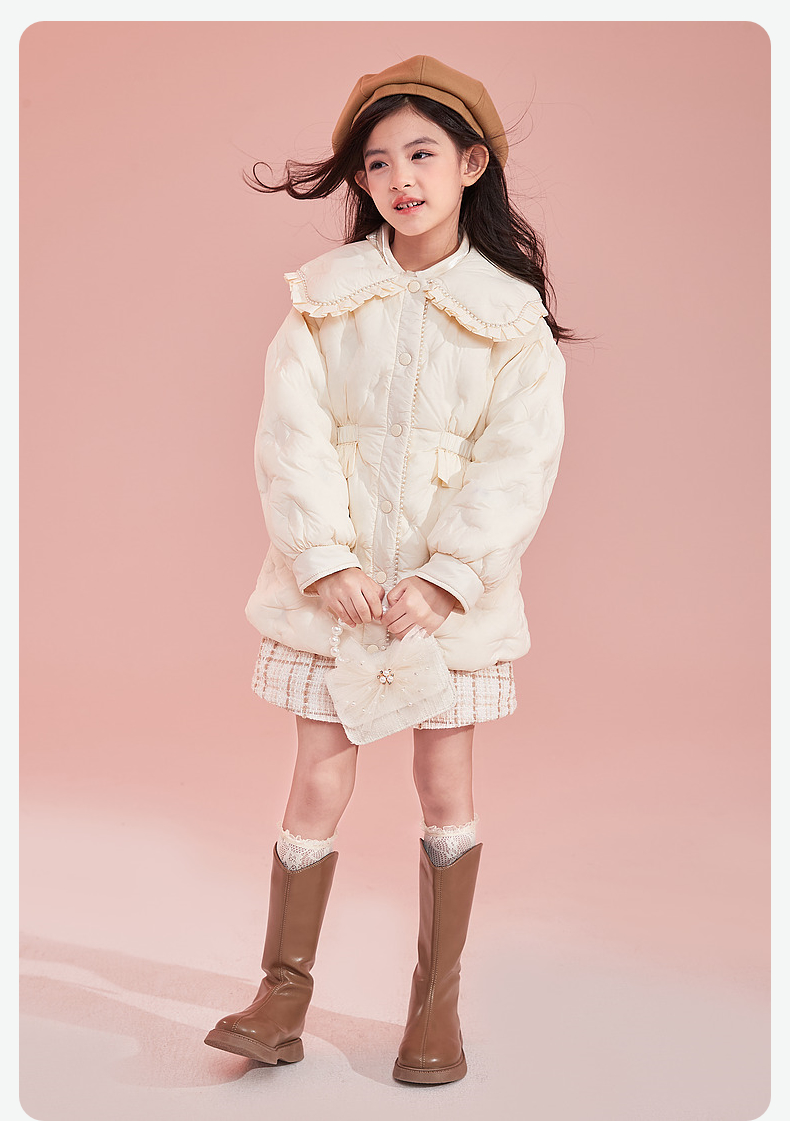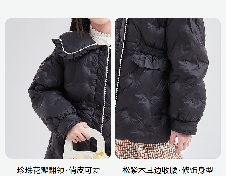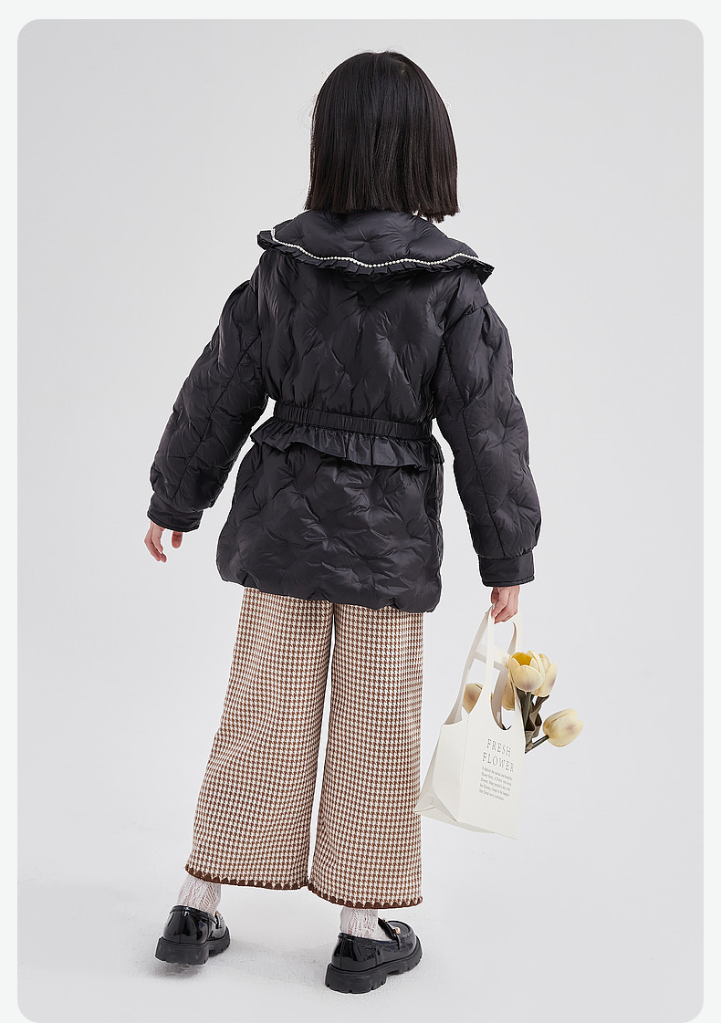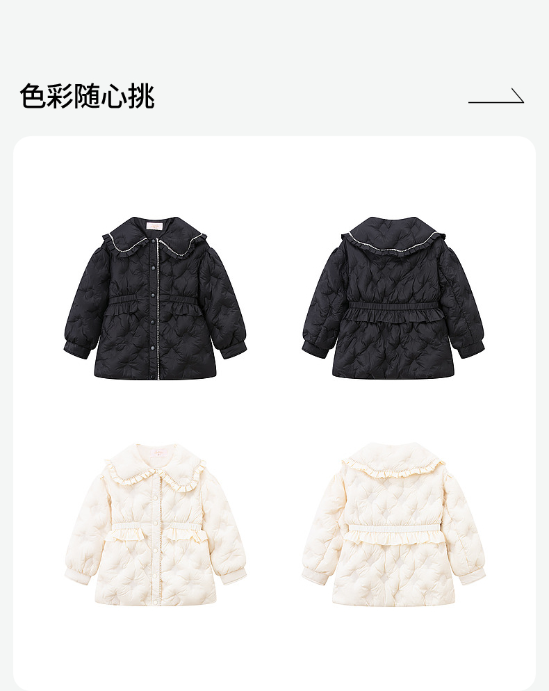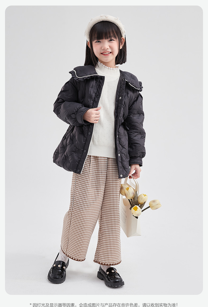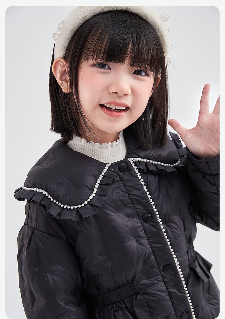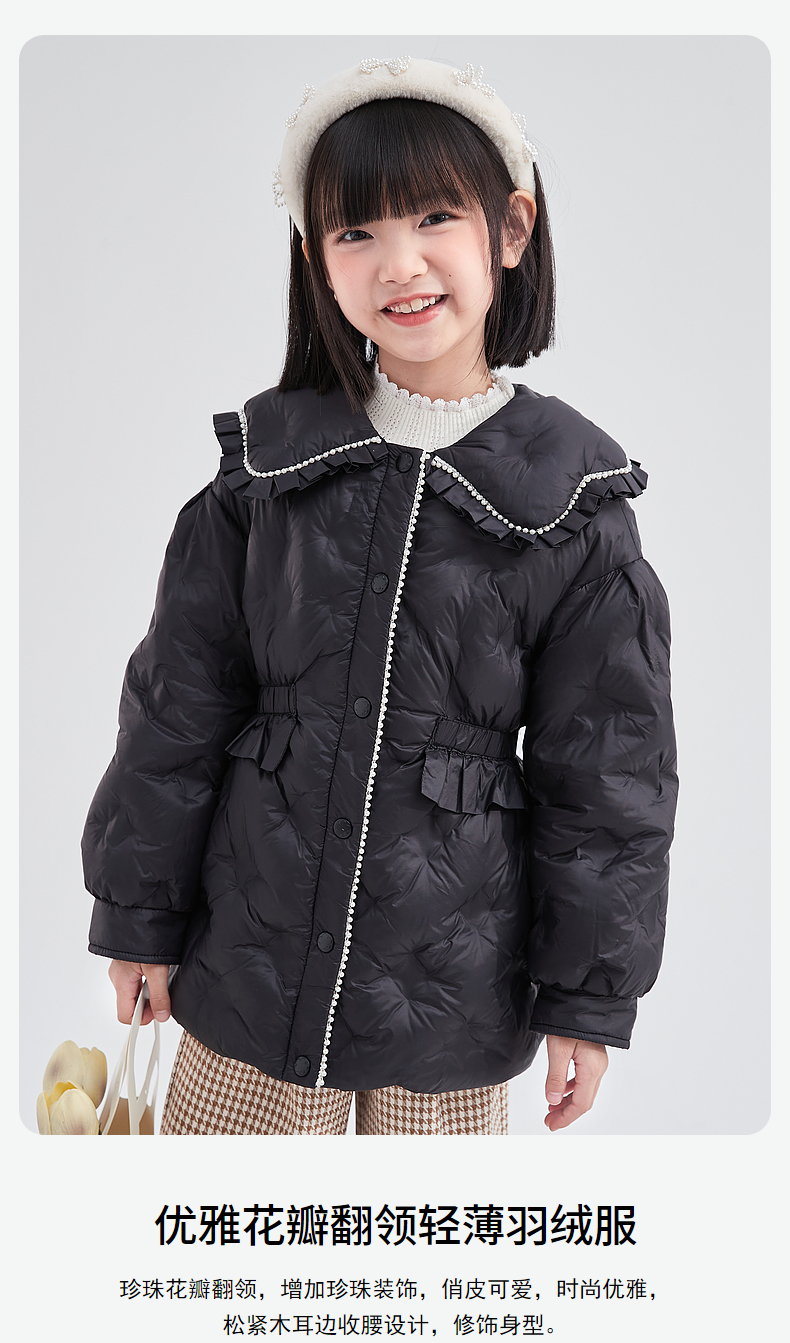 笛莎女童羽绒服2023冬季新款优雅花瓣翻领轻薄羽绒服