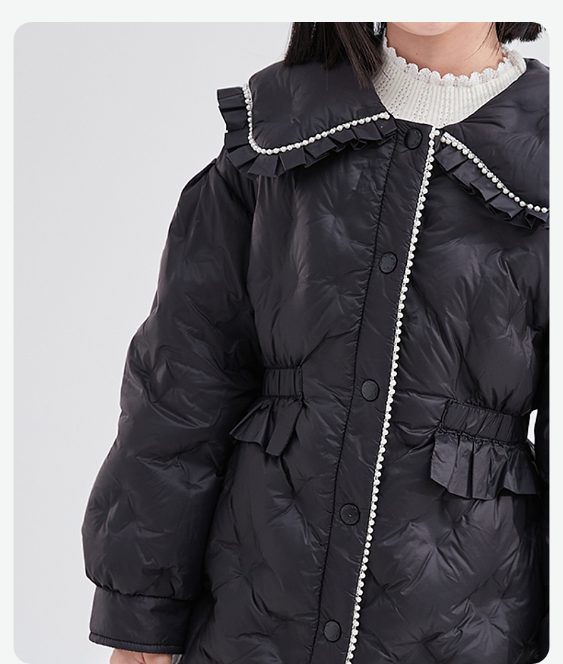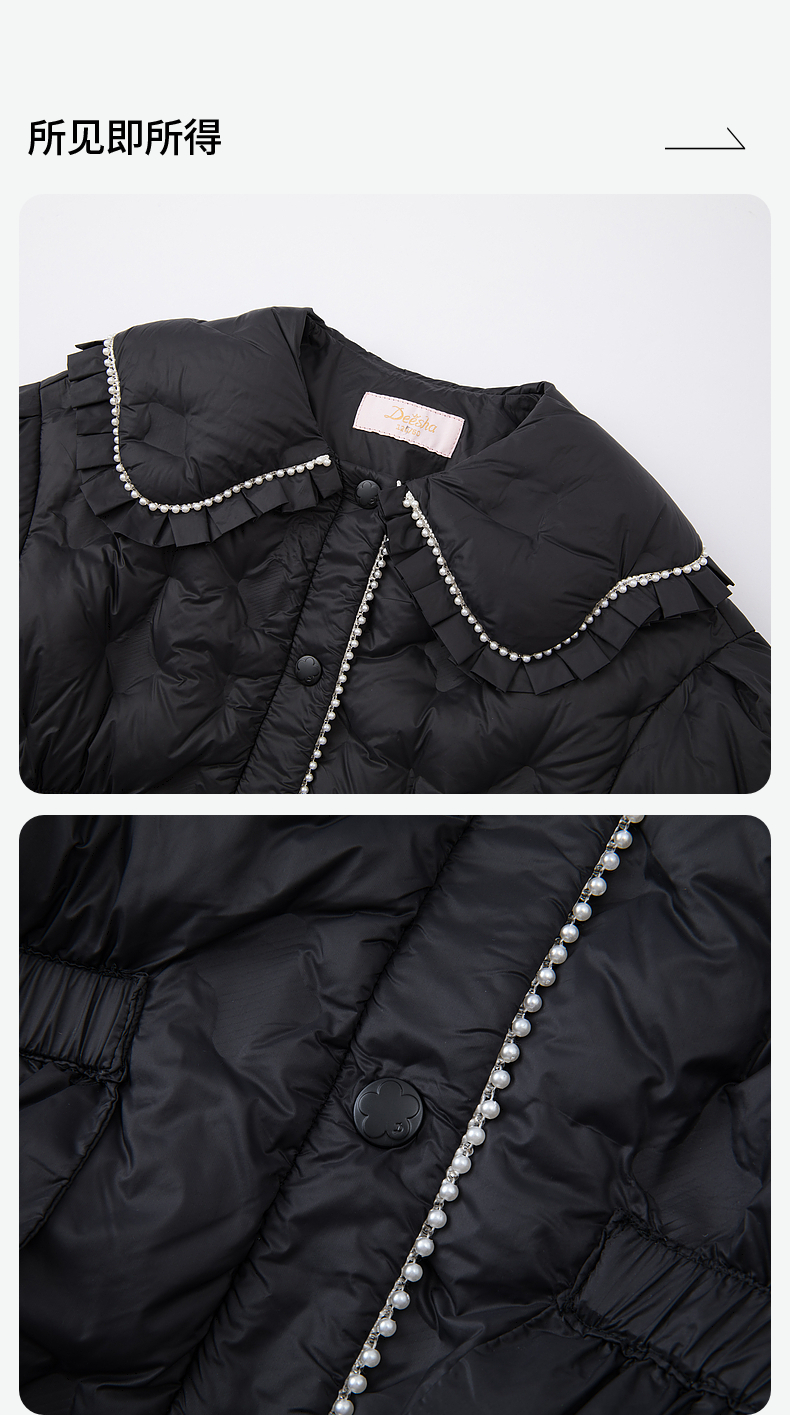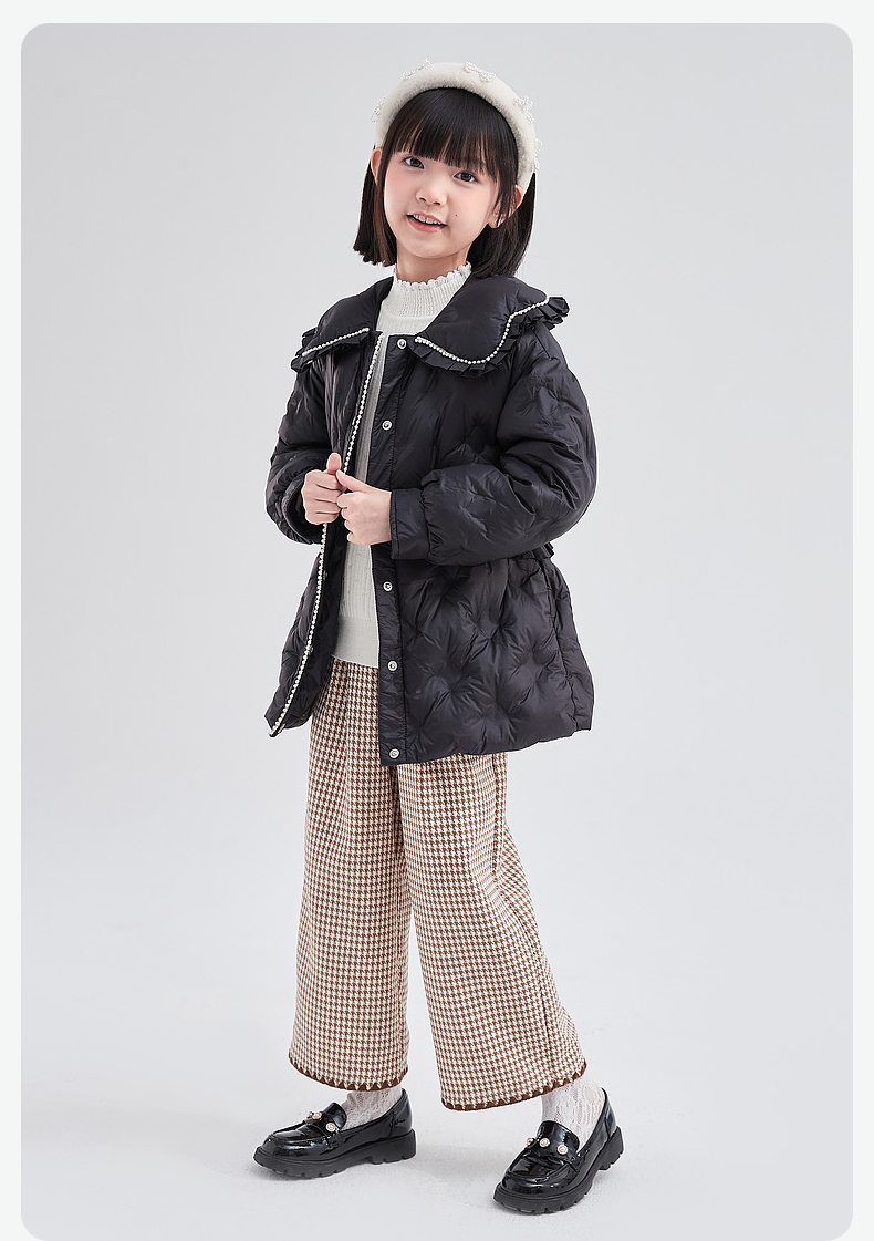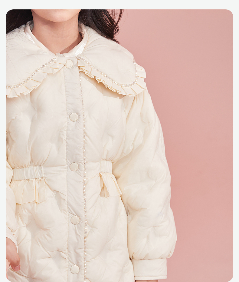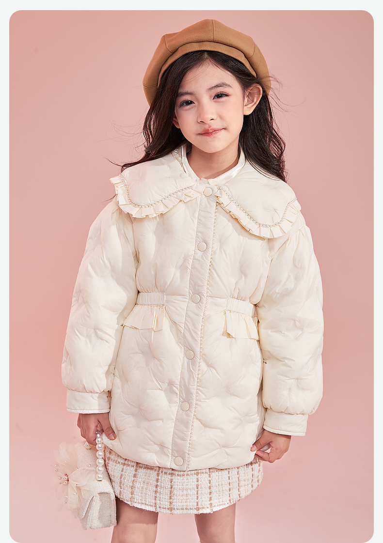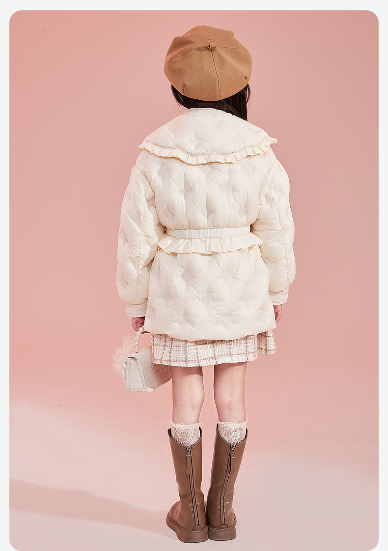 笛莎女童羽绒服2023冬季新款优雅花瓣翻领轻薄羽绒服