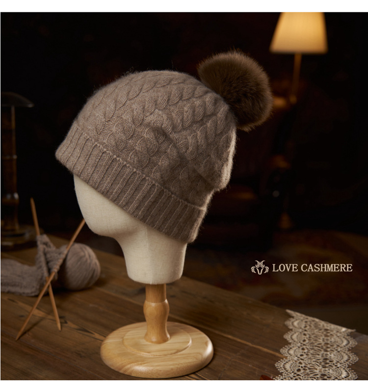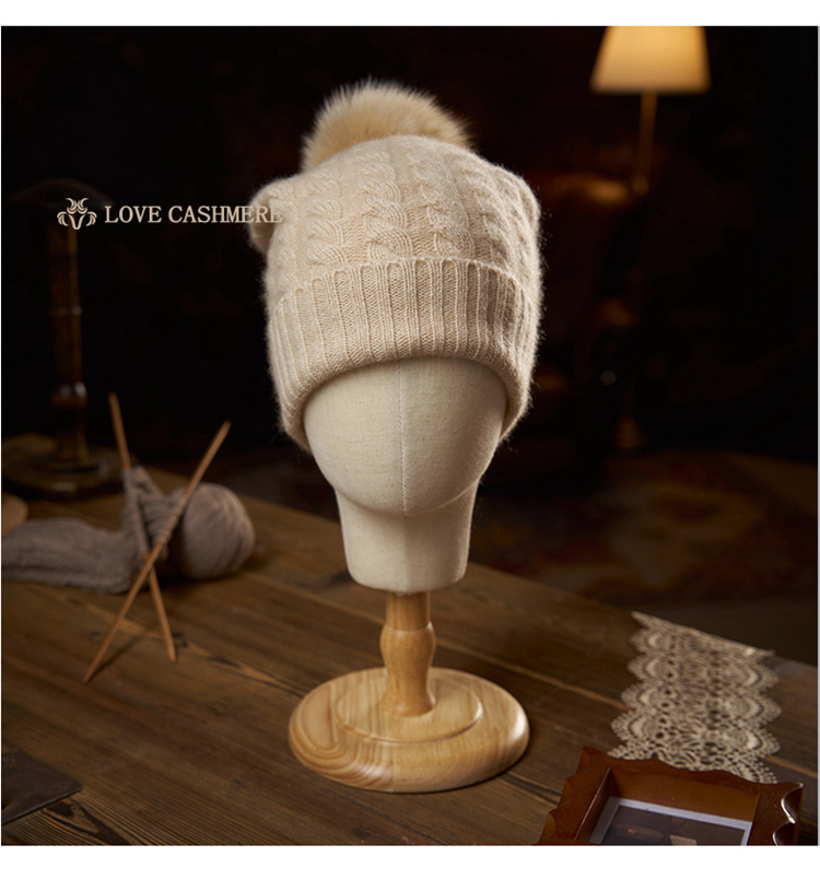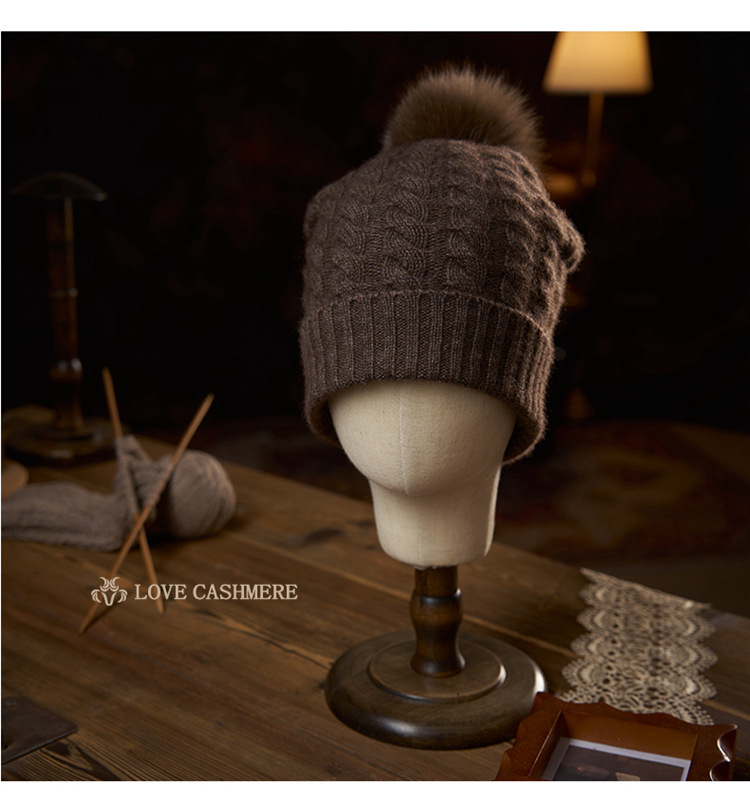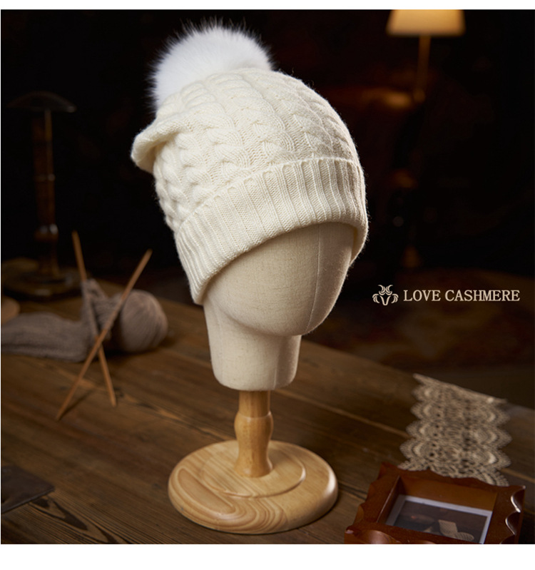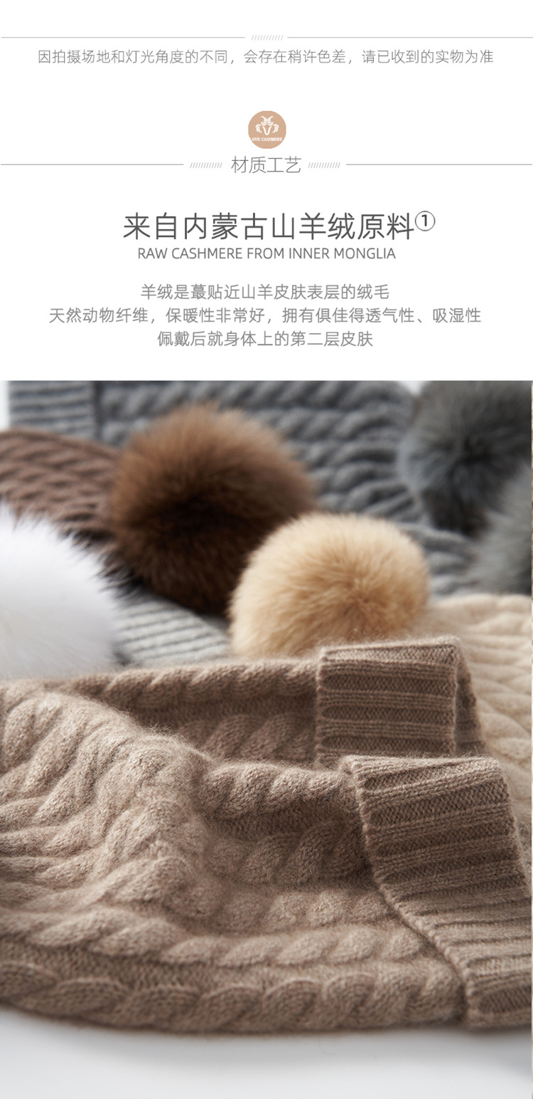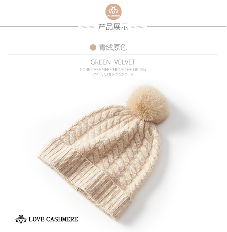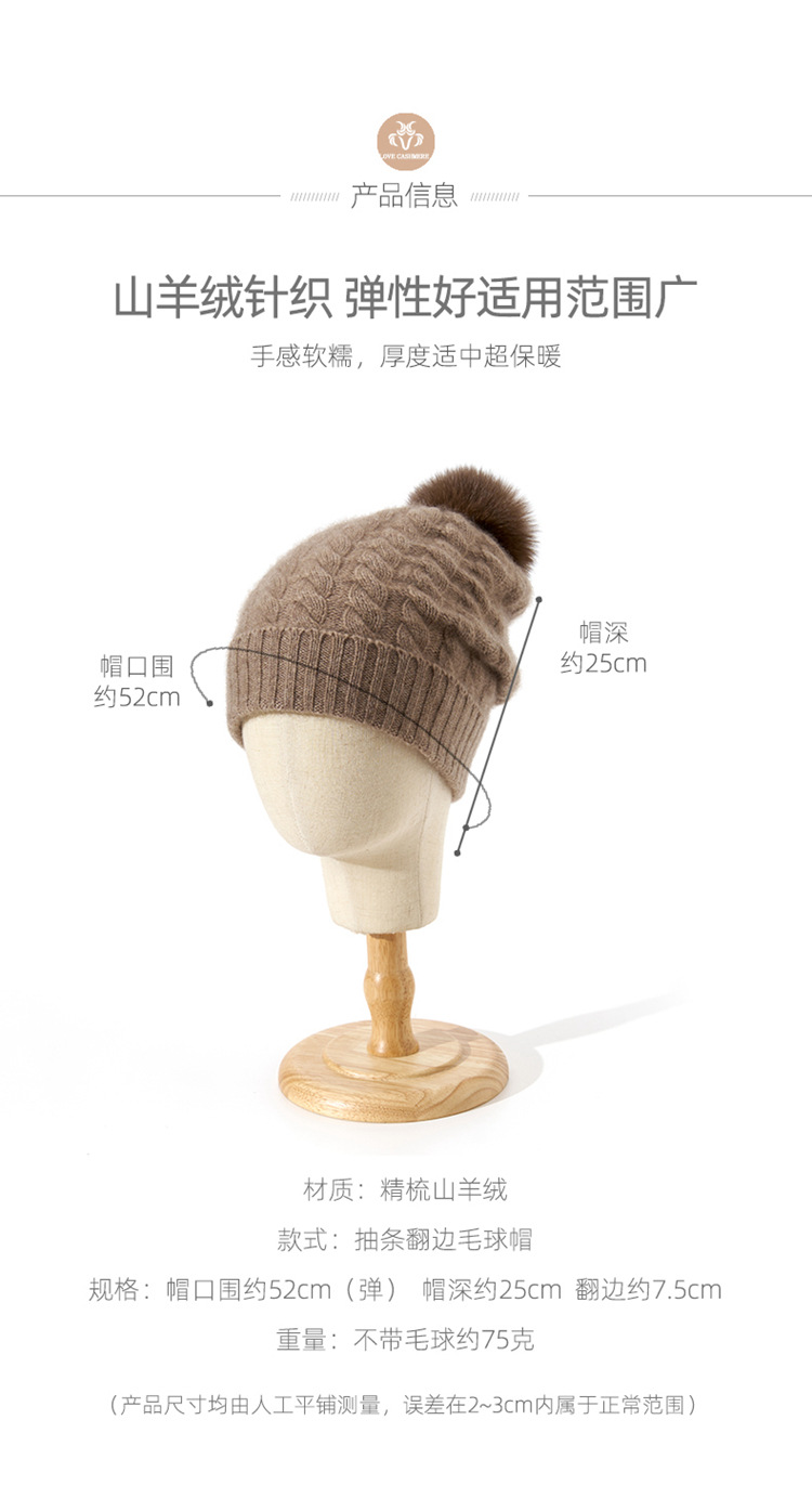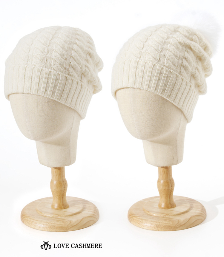 冬季新款【山羊绒女高端针织包头帽】扭花毛球 月子加厚保暖护耳 毛线帽