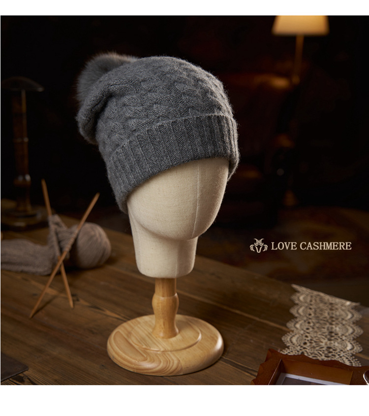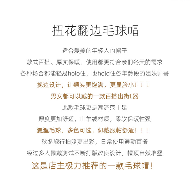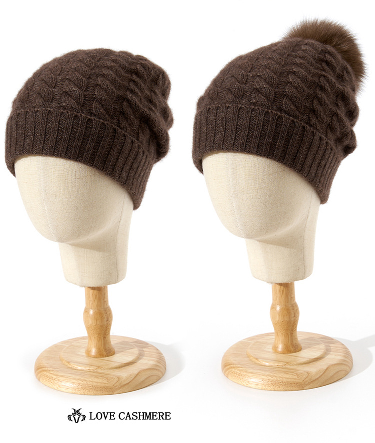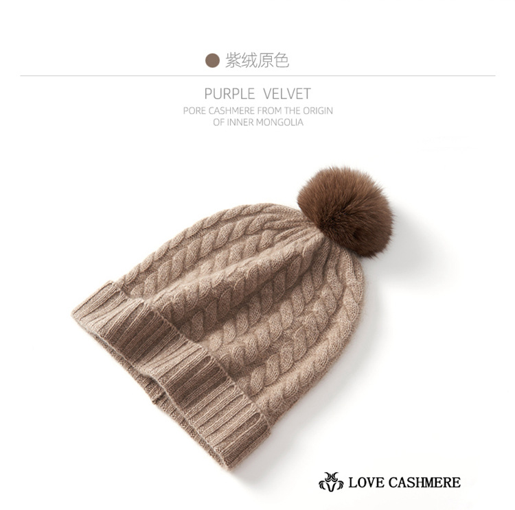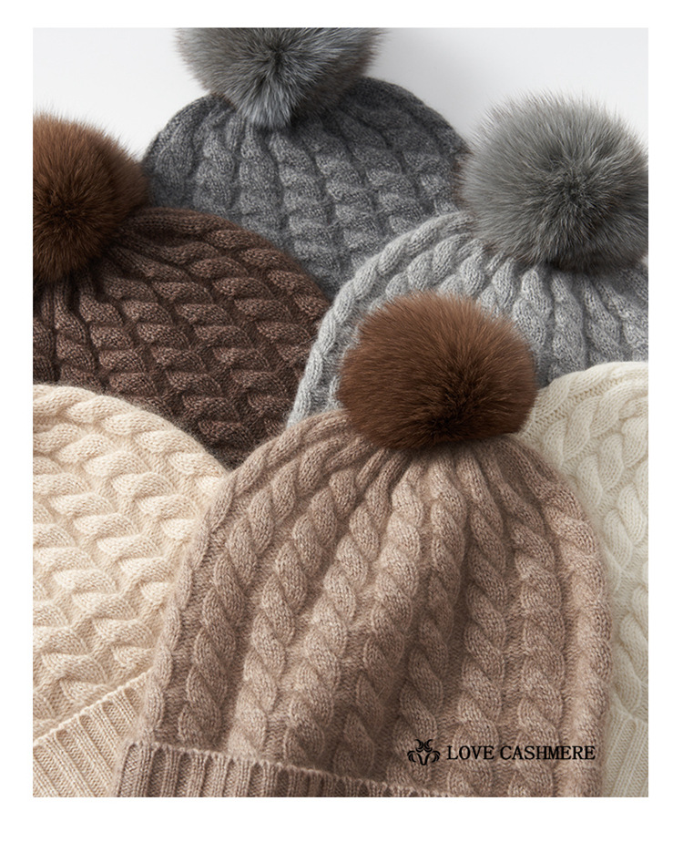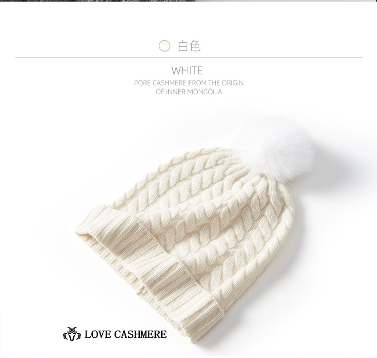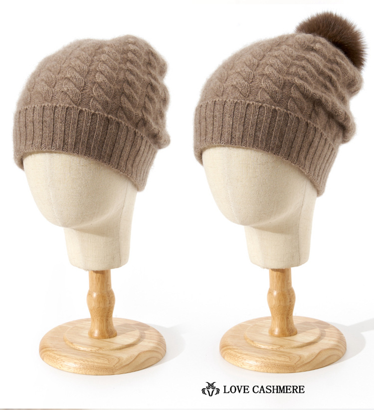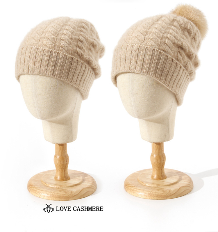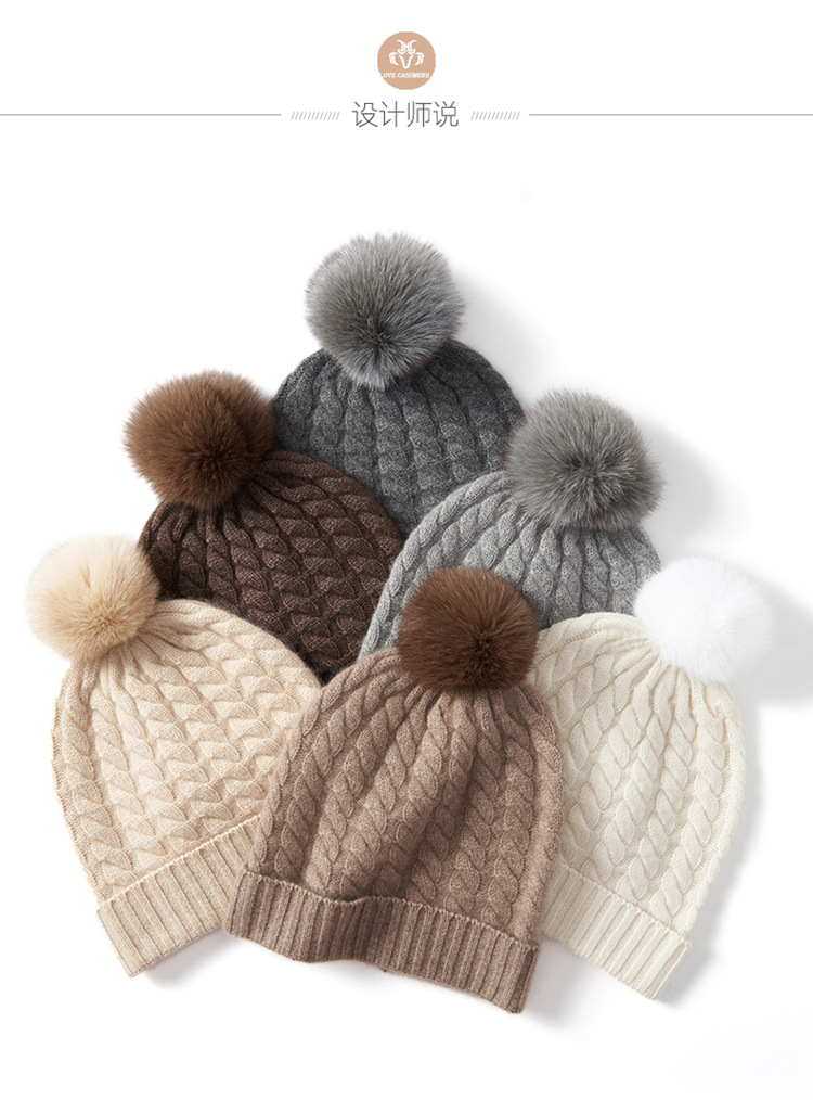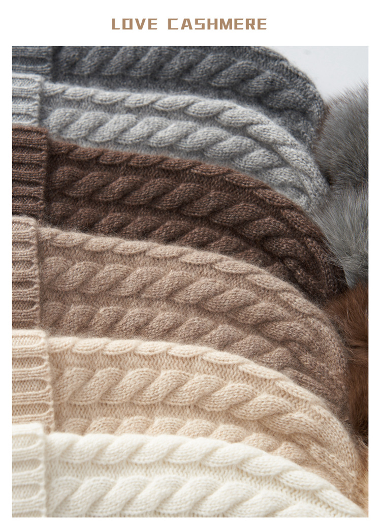 冬季新款【山羊绒女高端针织包头帽】扭花毛球 月子加厚保暖护耳 毛线帽