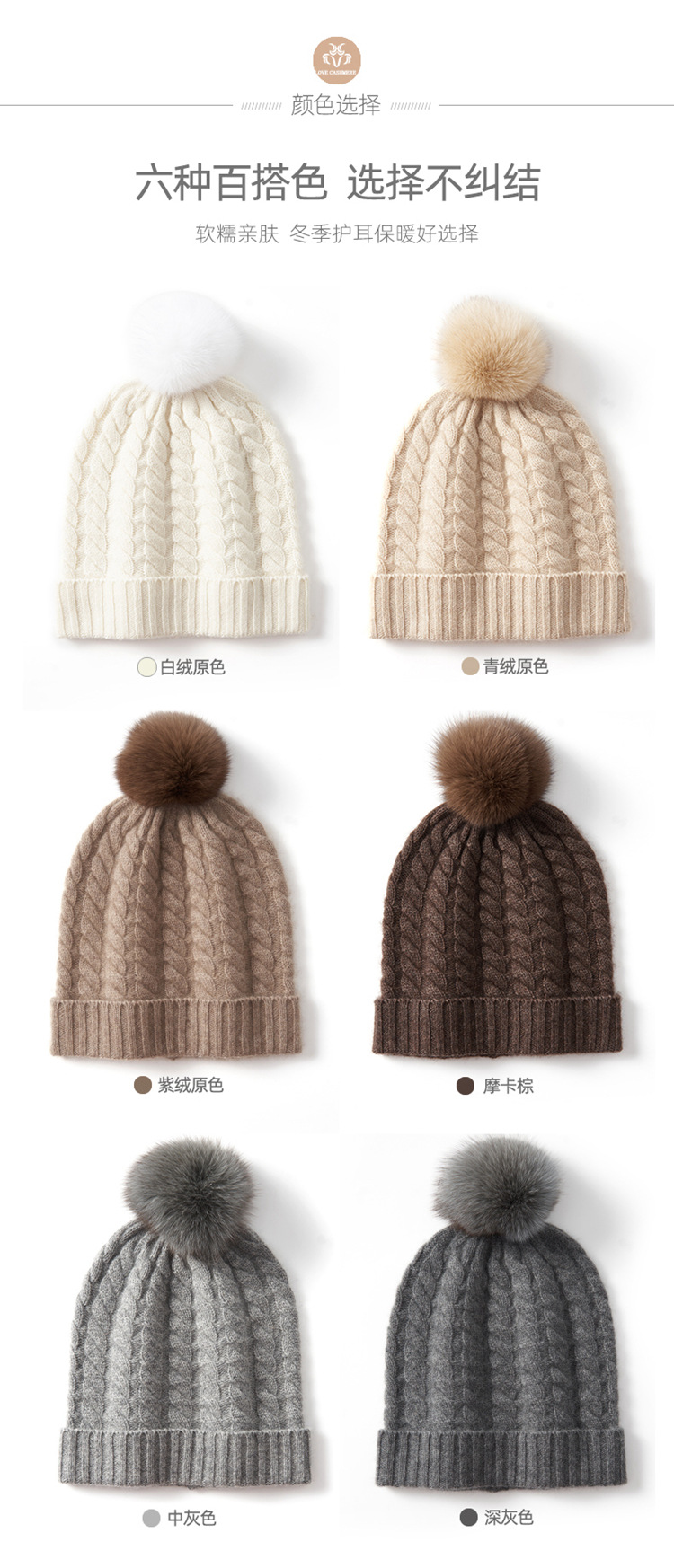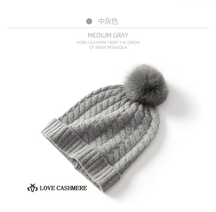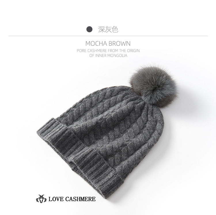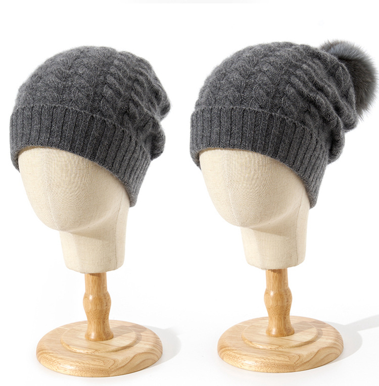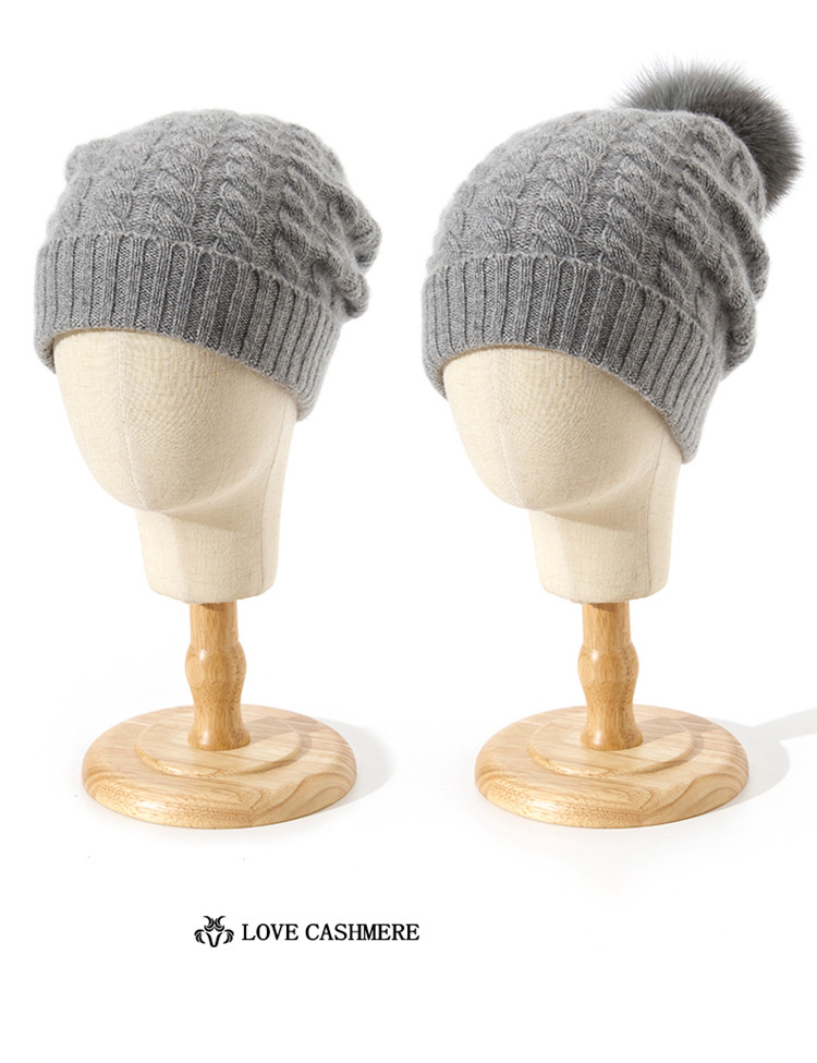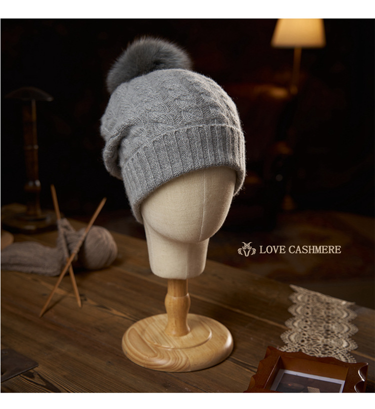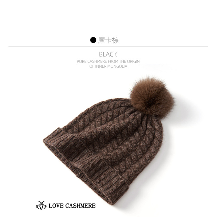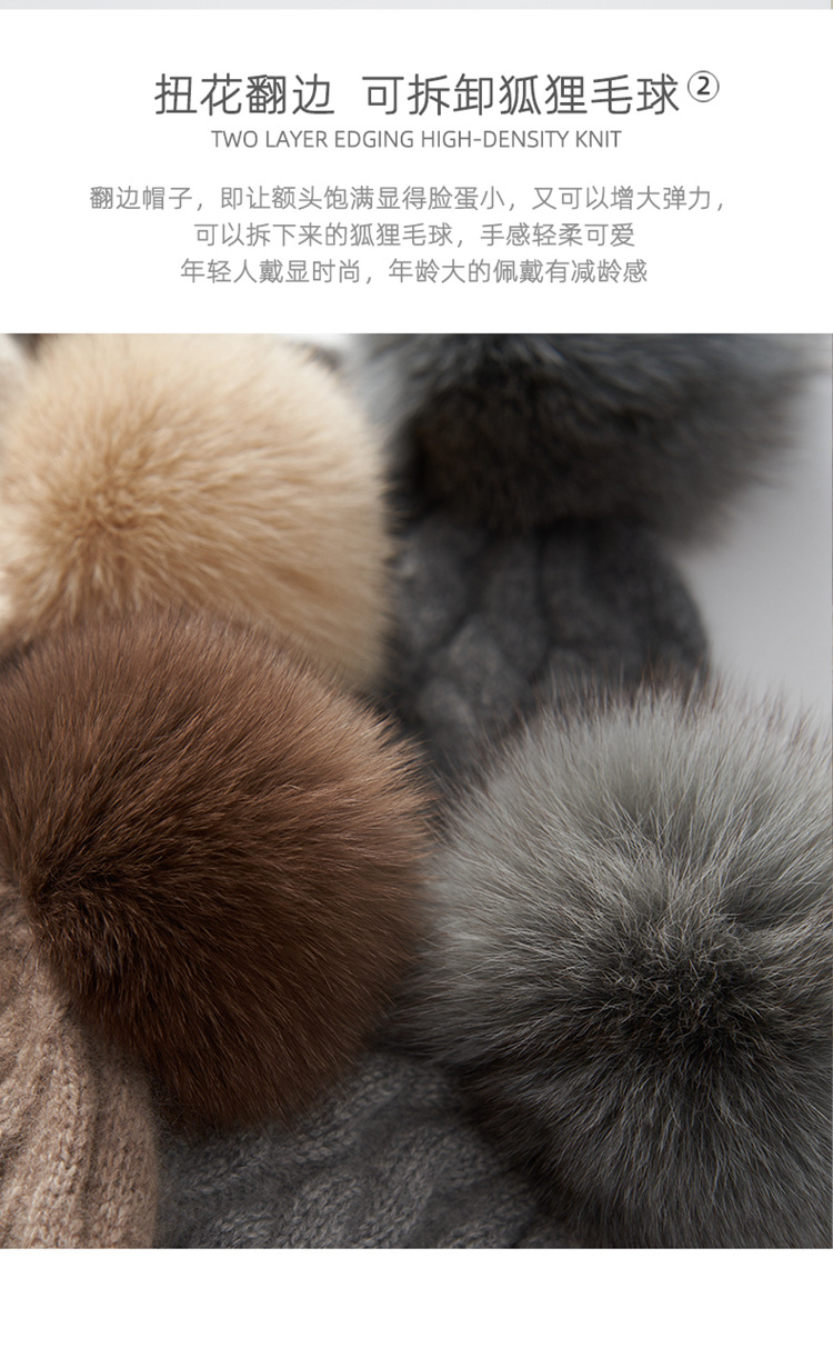 冬季新款【山羊绒女高端针织包头帽】扭花毛球 月子加厚保暖护耳 毛线帽