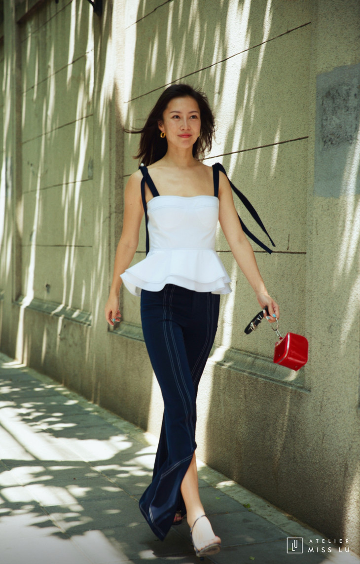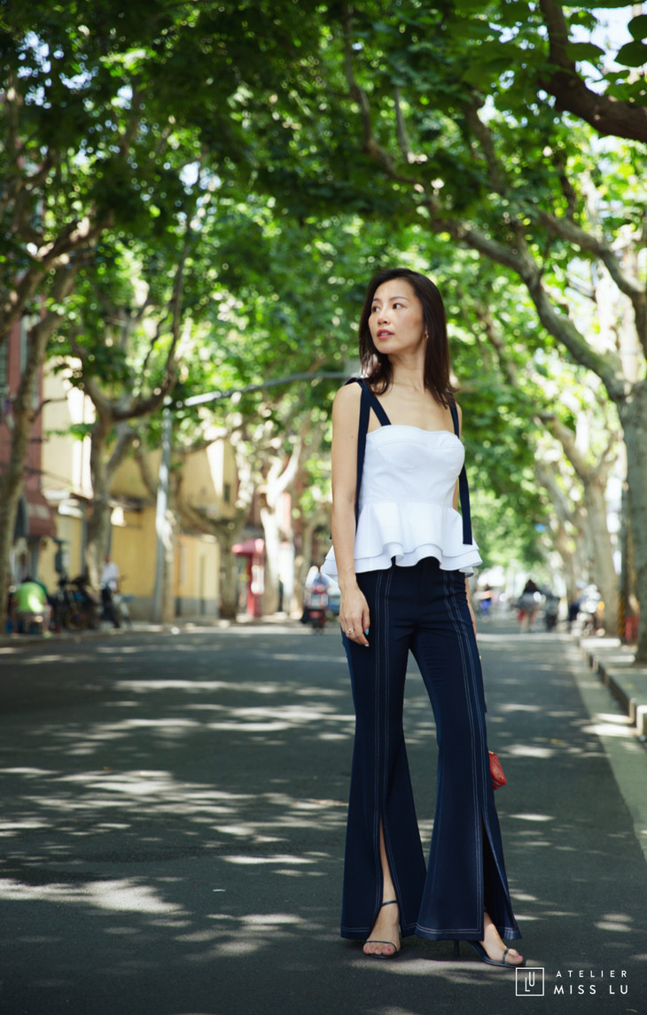 AtelierMissLu / Ivy-白色荷叶边飘带上衣