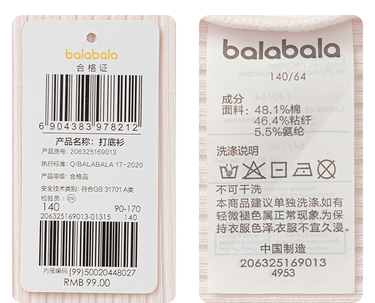 【商场同款】巴拉巴拉女童长袖T恤秋新品宝宝打底衫大童内衣秋衣
