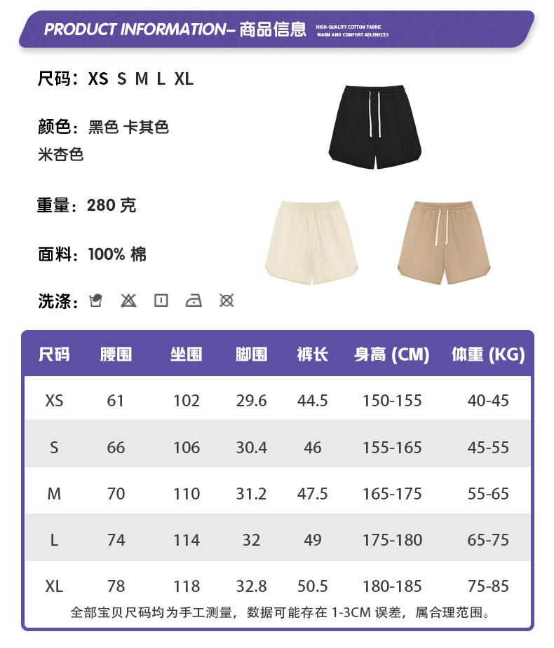 RS男装|2023夏季300克毛圈重磅纯色男士短裤宽松休闲款男女五分裤