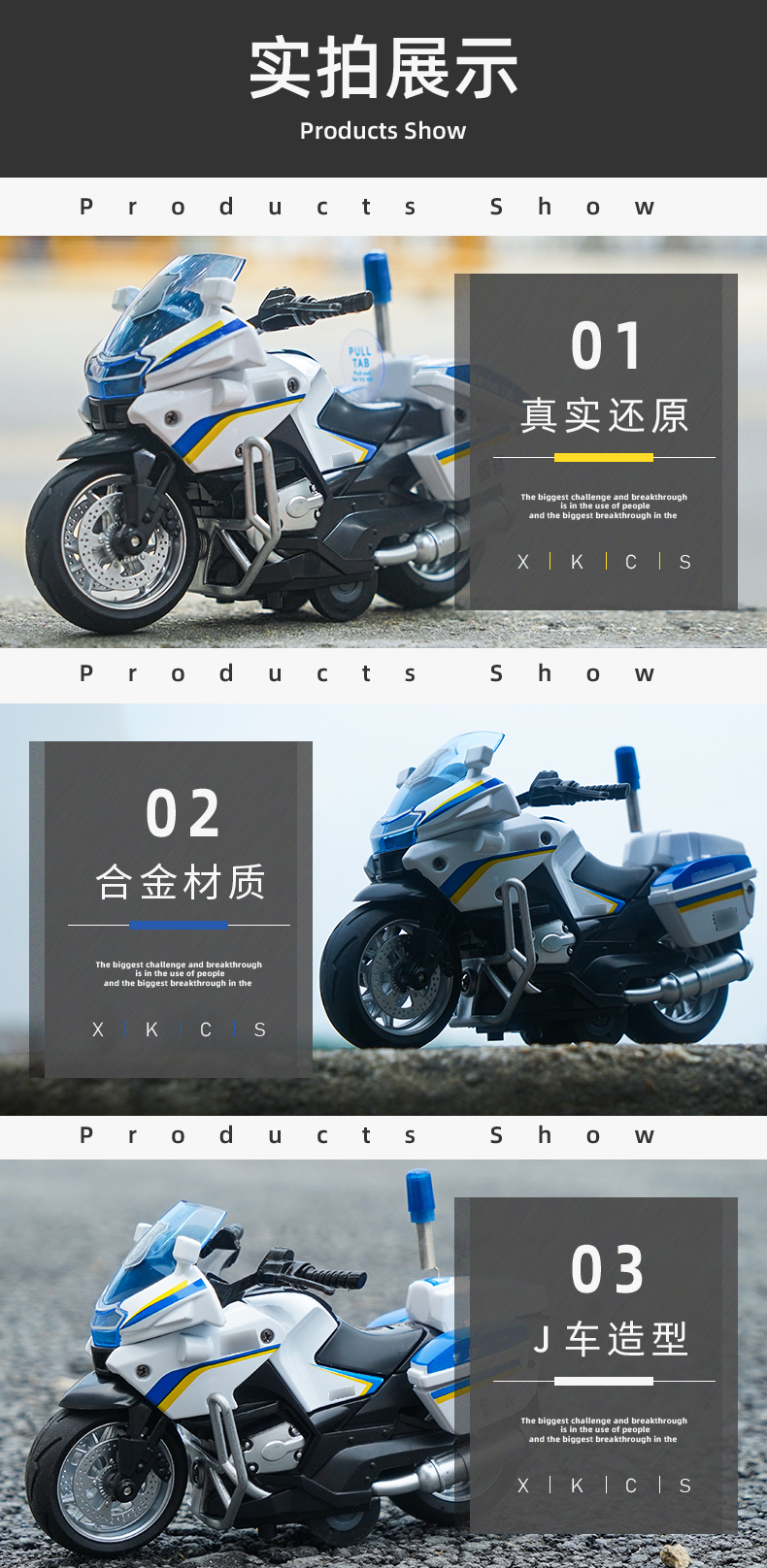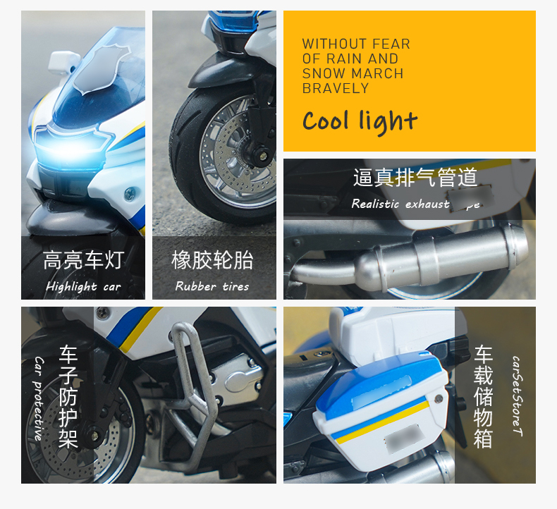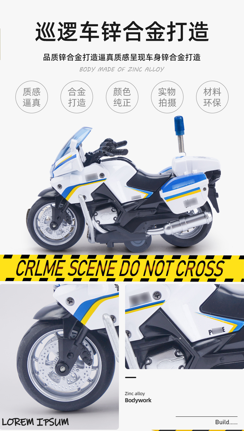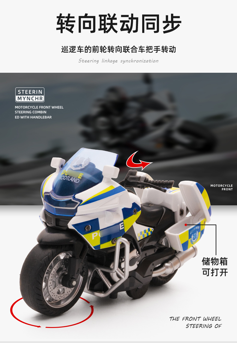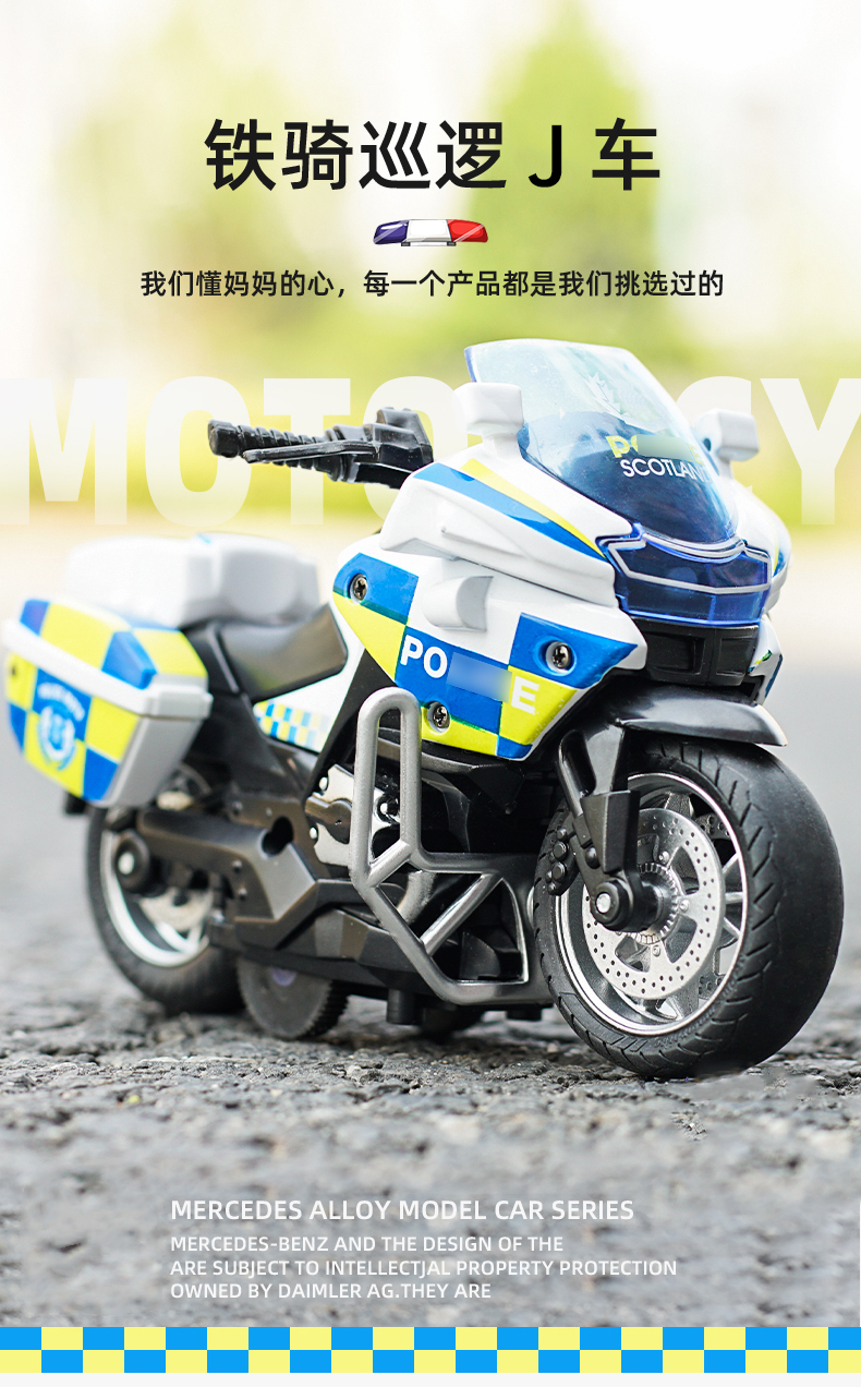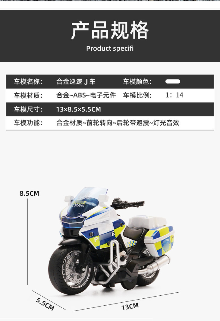 【1:14铁骑摩托车】合金巡逻摩特车模型 儿童玩具车礼品摆件