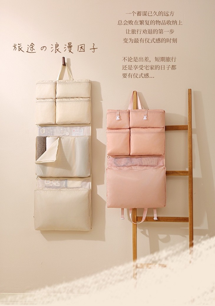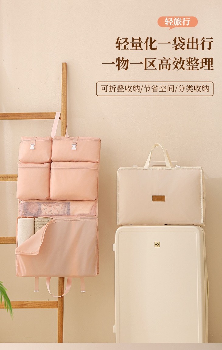 移动衣柜⭐旅行收纳还得靠它呀‼️旅行收纳包, 分格收纳✅容量巨大✅干净整洁! 多规格的收纳,完全承包了分区收纳的烦恼 再也不用找真多的袋子来收纳了 内置衣物袋区可有效压缩衣物,节省行李箱空间还有可悬挂设计,让袋子秒变临时衣柜 内衣、袜子、外套、化妆品分区收纳一目了然