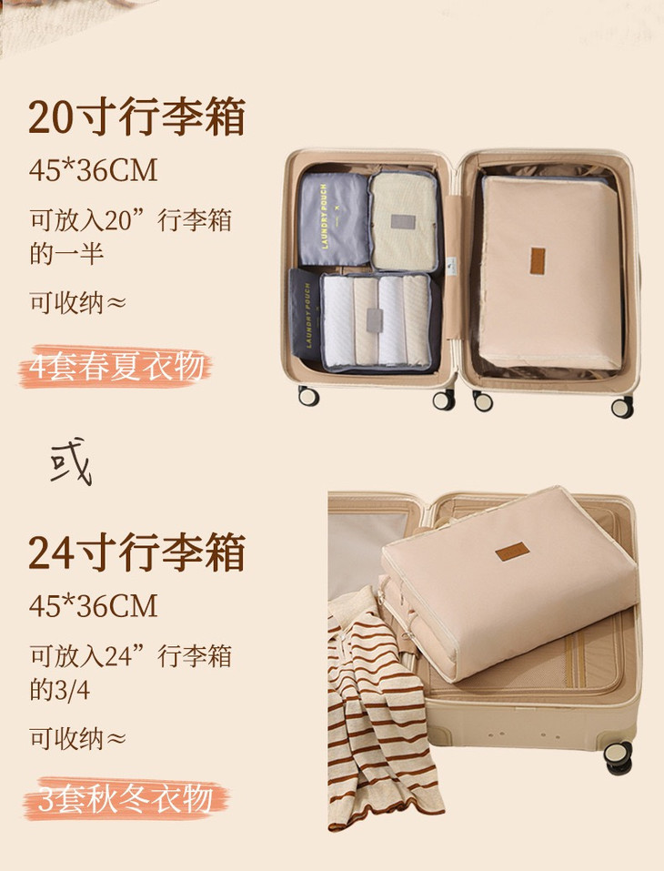 空间炸干王,这个收纳袋太好用了 出差旅行必备! 六合一/八合一收纳袋实测🧳 出差频率高,行李总是乱糟糟的,直到发现了这个收纳袋!加厚材质,质感挺扎实的 颜值也很好看,内衣、内裤、贴身衣物都能分开装,再也不怕衣服皱了。 容量真的很大 装下一周的衣物完全没问题