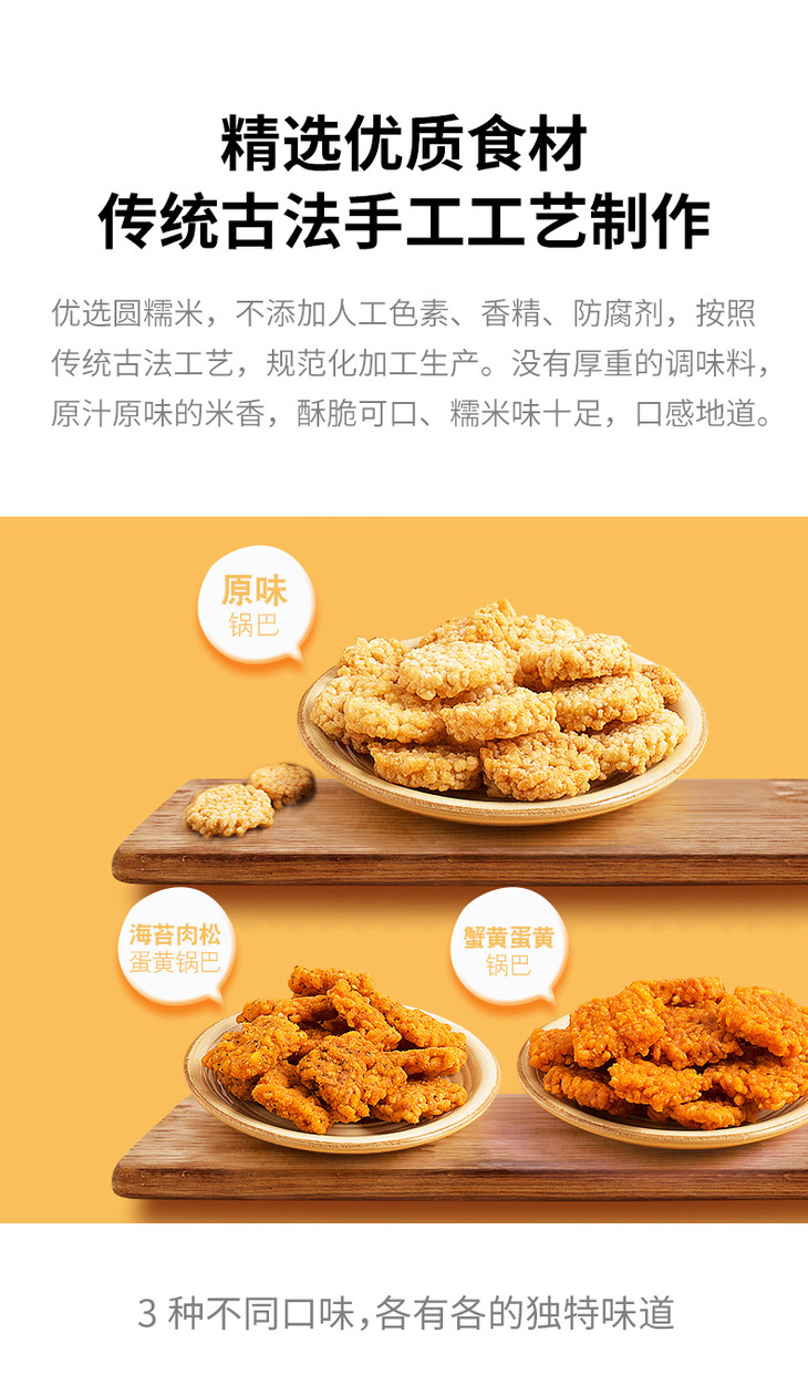 糯米锅巴经典原味+蟹香蛋黄味+海苔