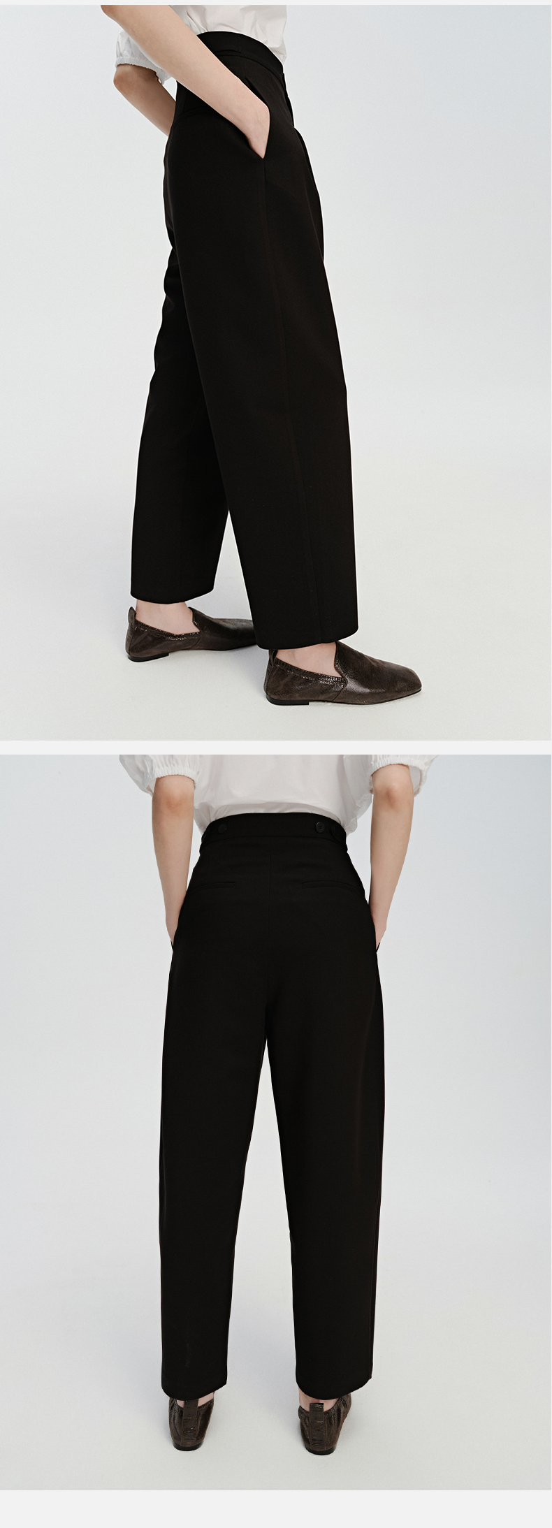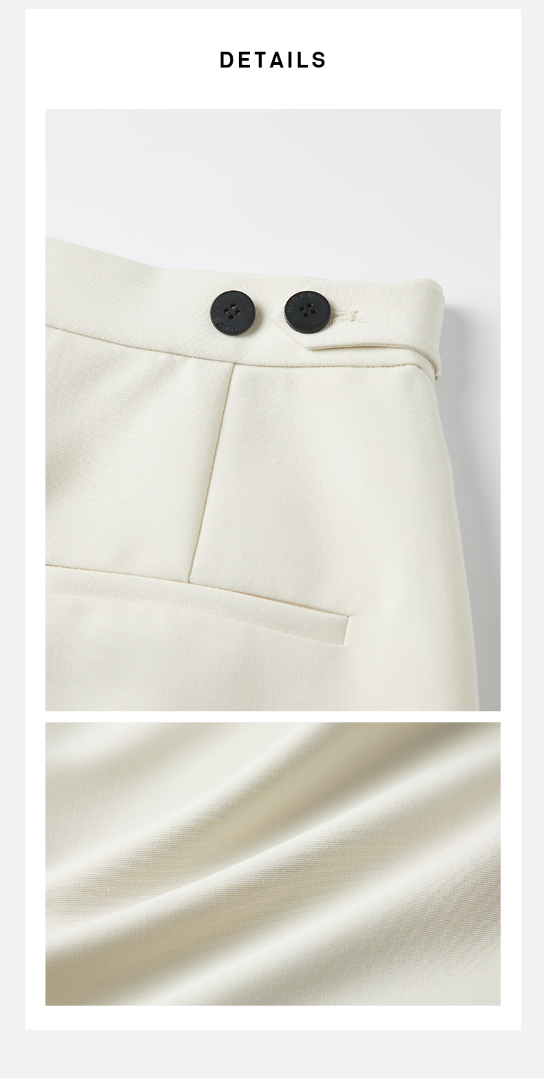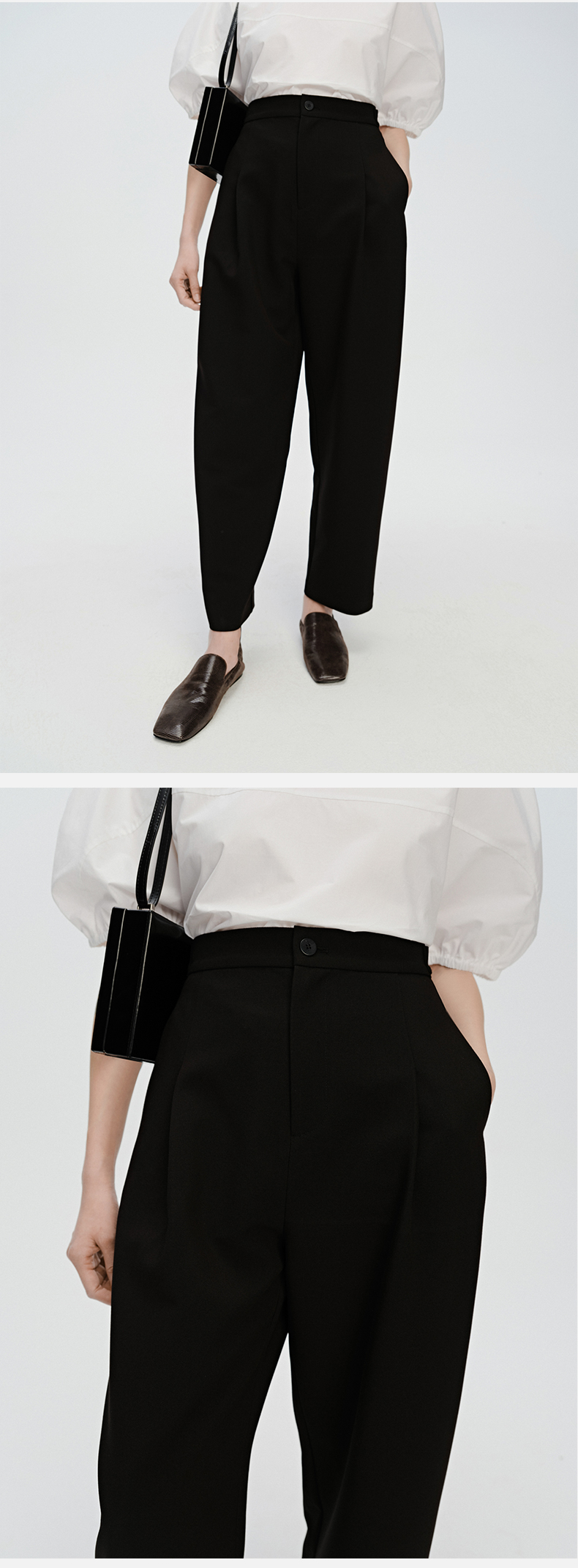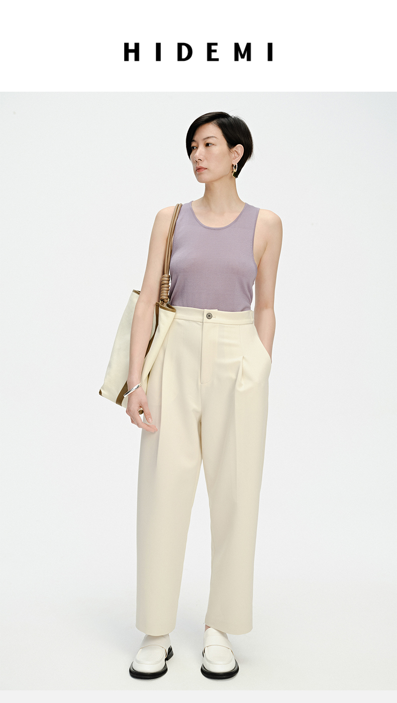 HIDEMI 一粒扣显瘦舒适茧型九分裤 豆乳白/黑色