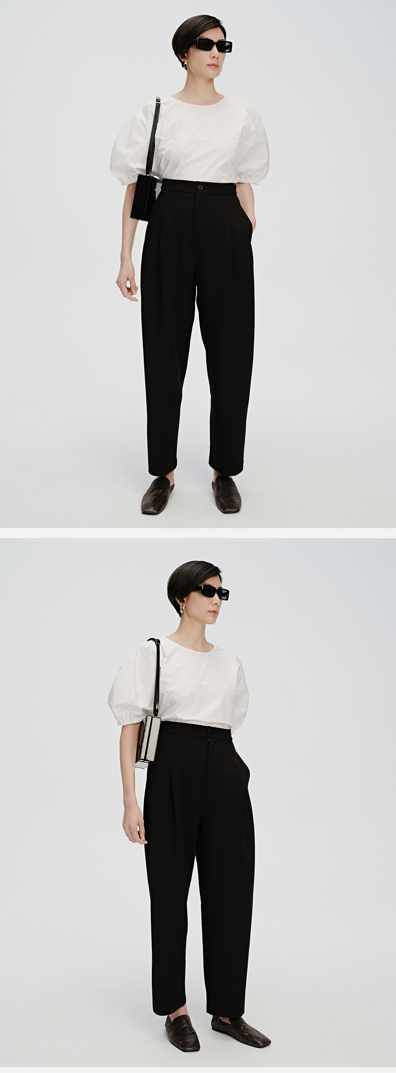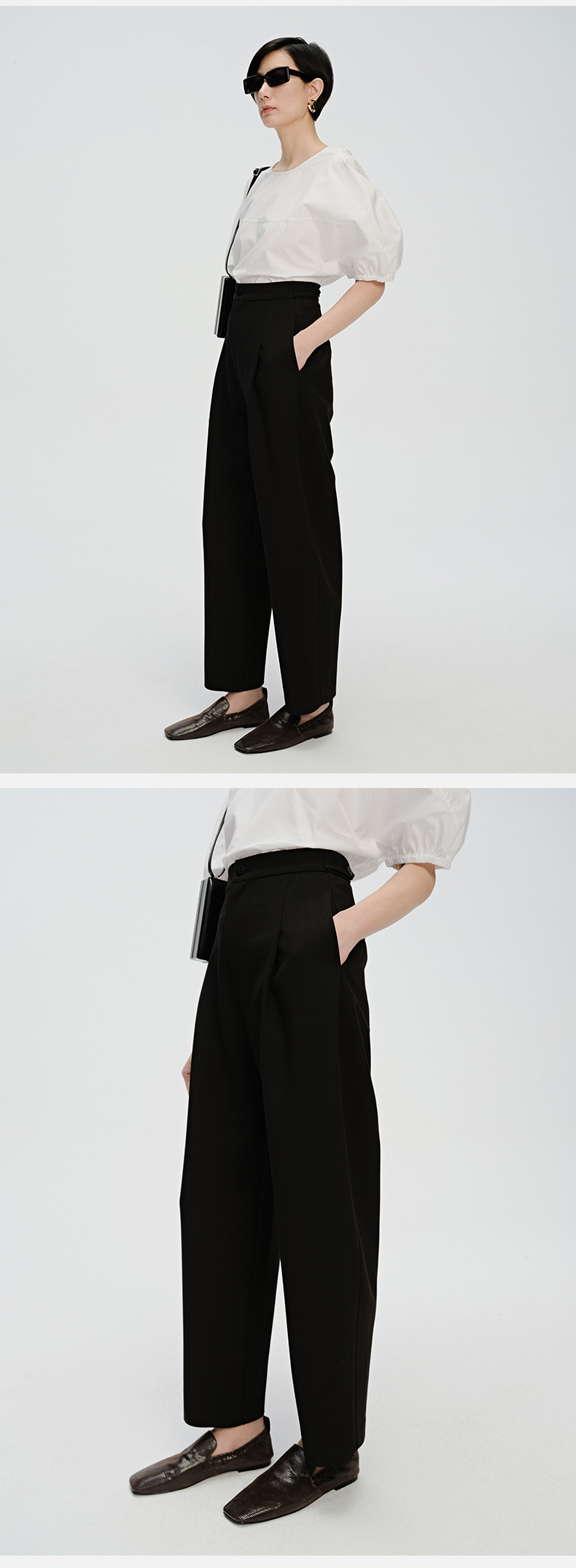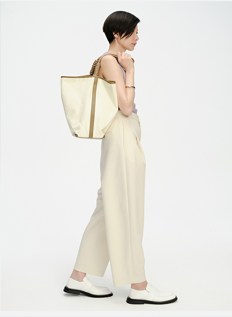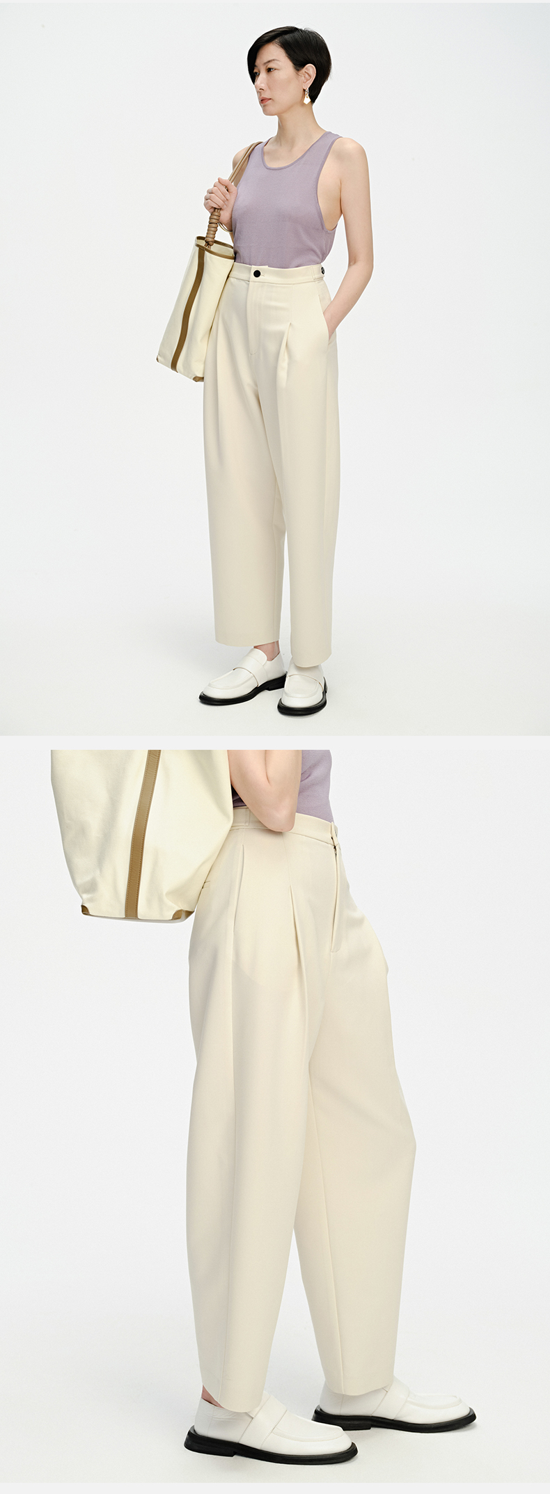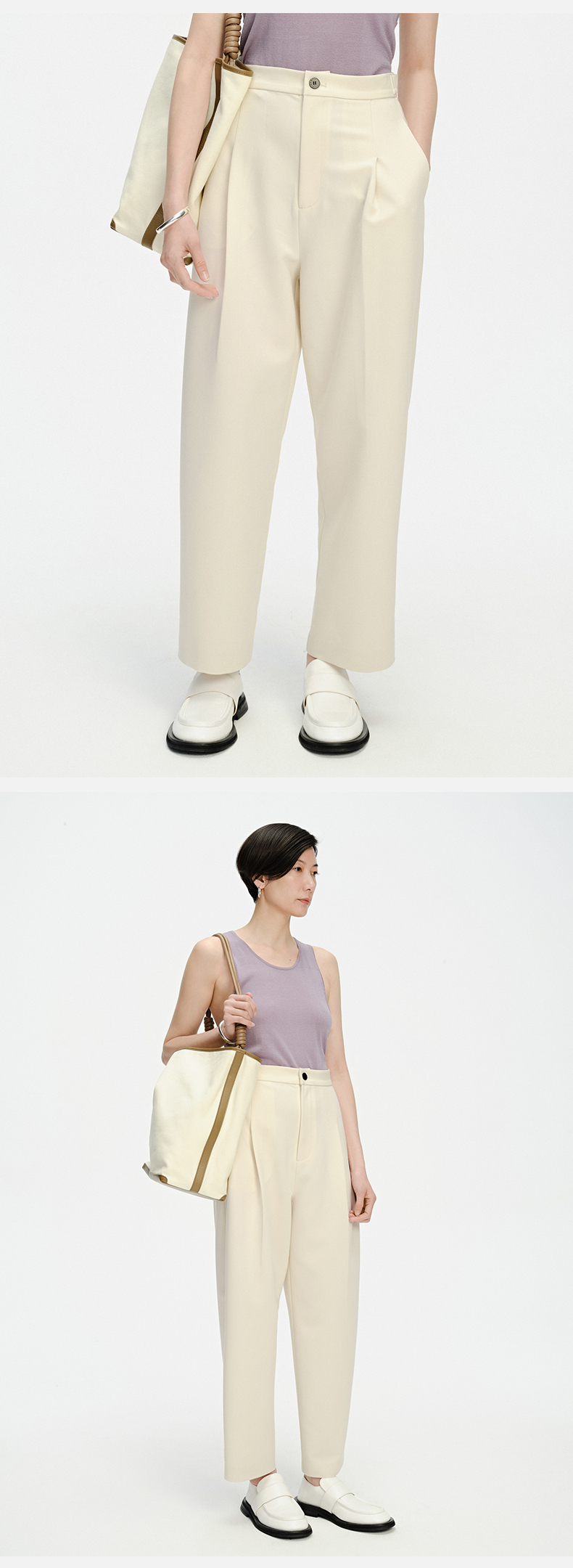 HIDEMI 一粒扣显瘦舒适茧型九分裤 豆乳白/黑色