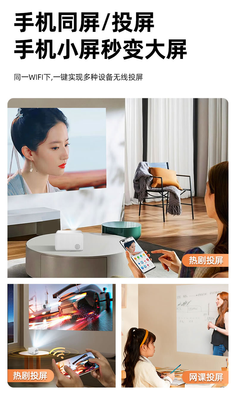 【不分场合 Ai智能语音!】欢乐投投影仪,萦绕着奇幻的气息,陪伴你进入一个神奇的世界。小巧便携,高清超清晰画面打造家庭影院。让欢乐不再遥远,一键即可体验!