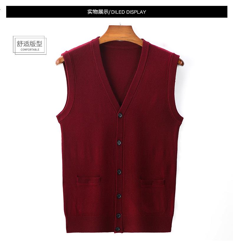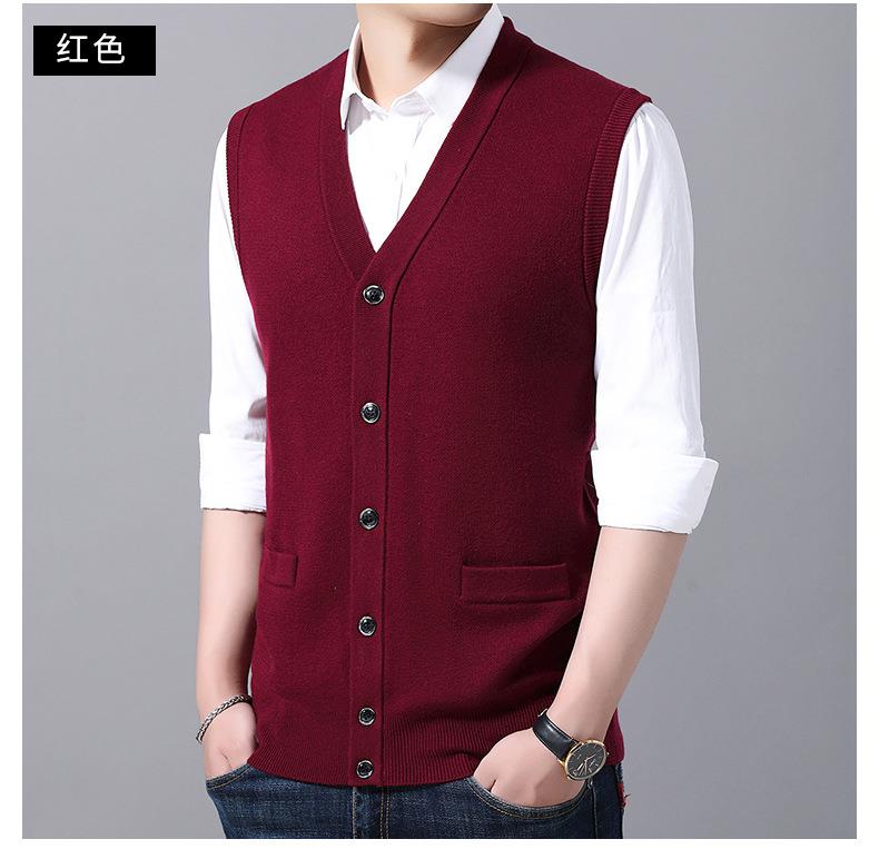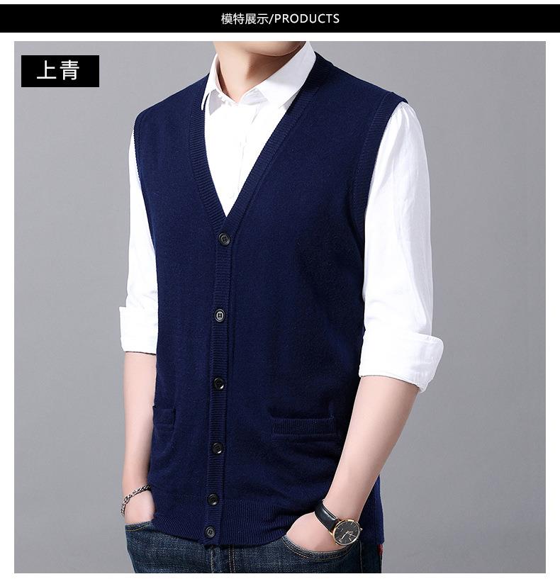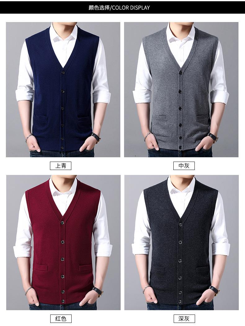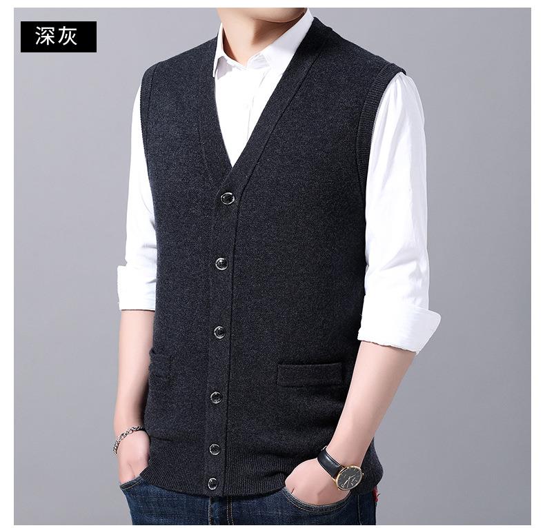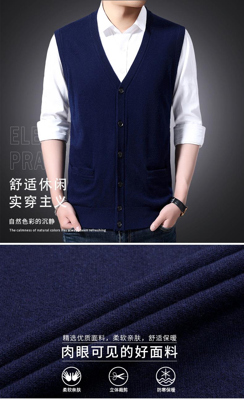 含毛混纺秋冬季男士羊毛背心中年休闲纽扣无袖开衫爸爸男装打底衫