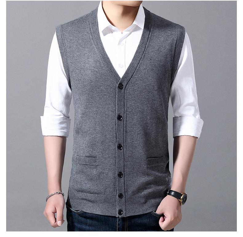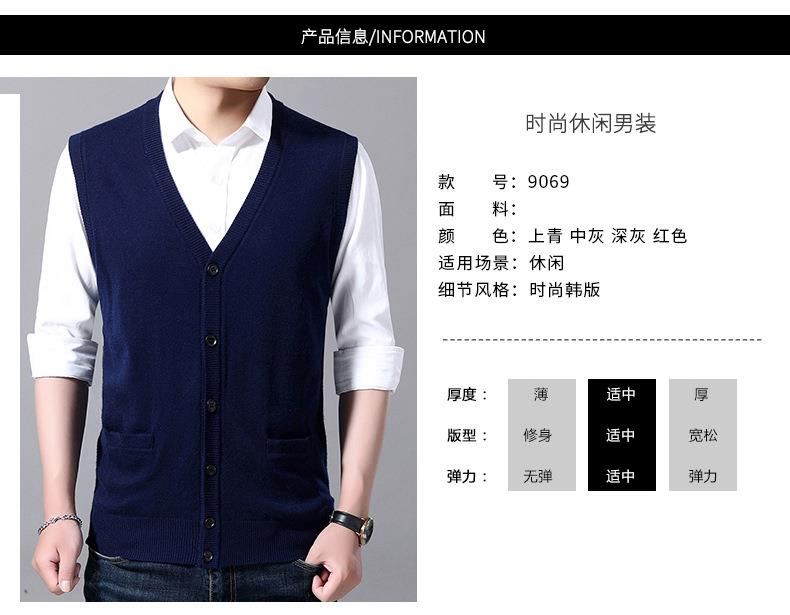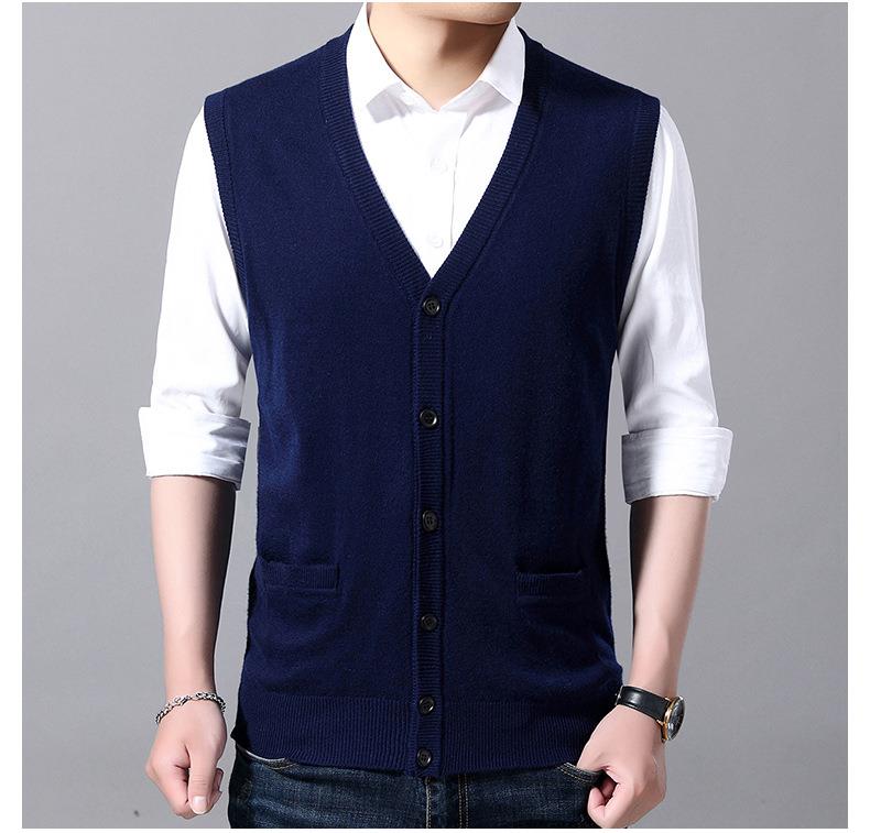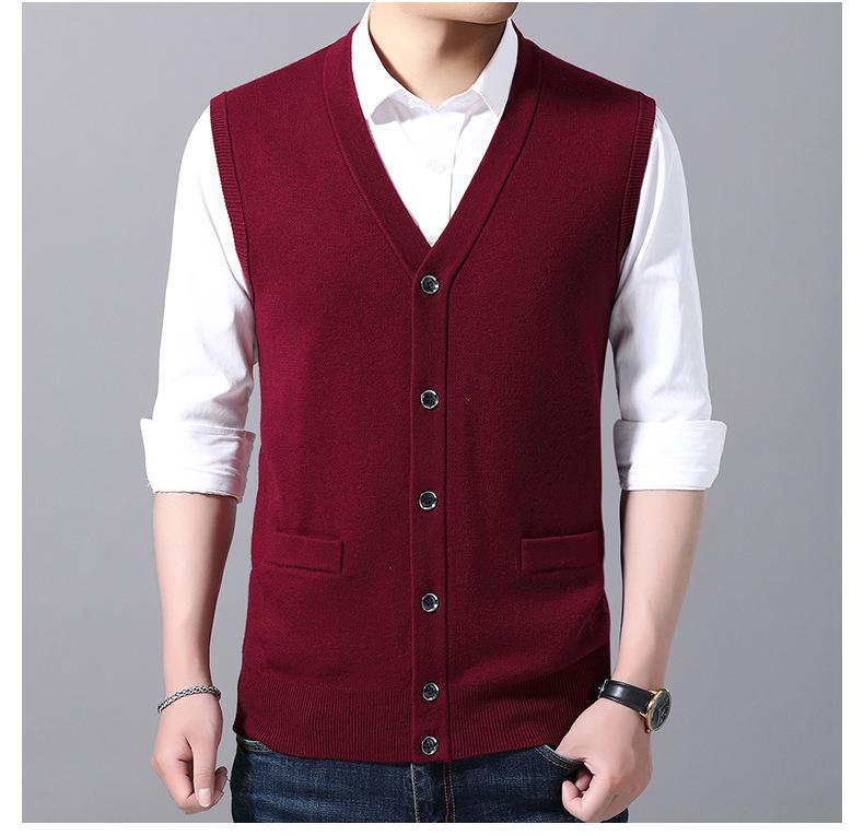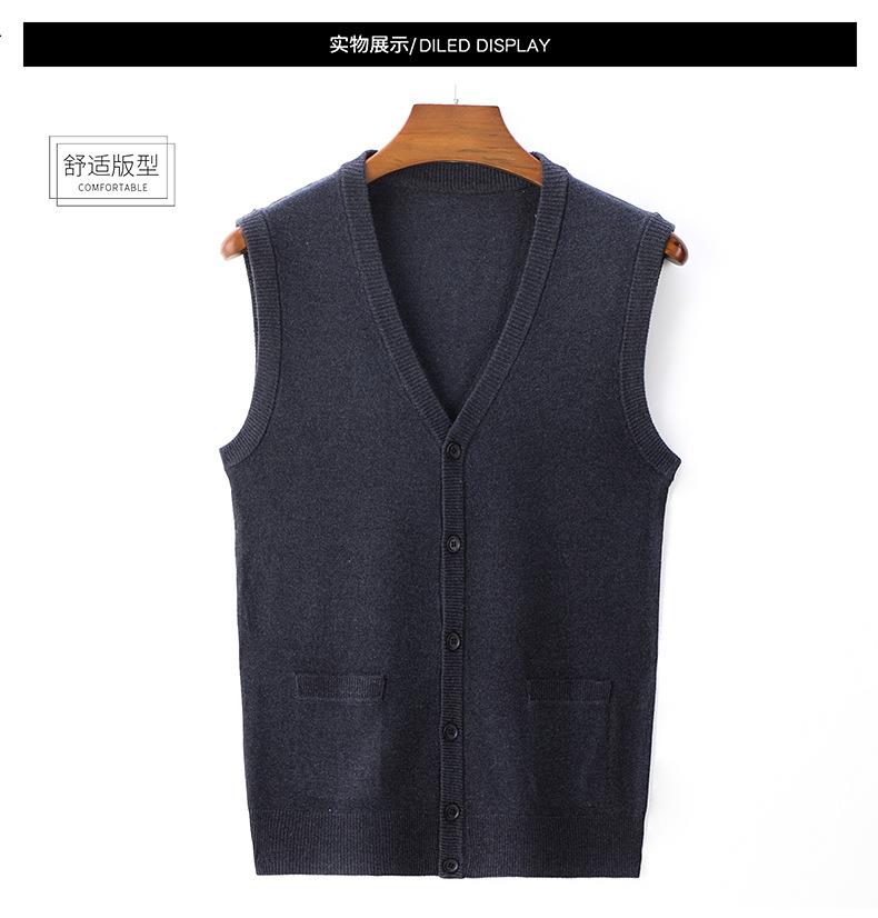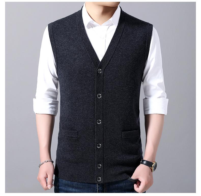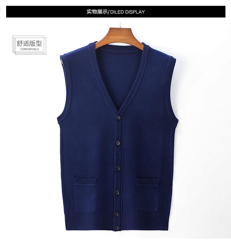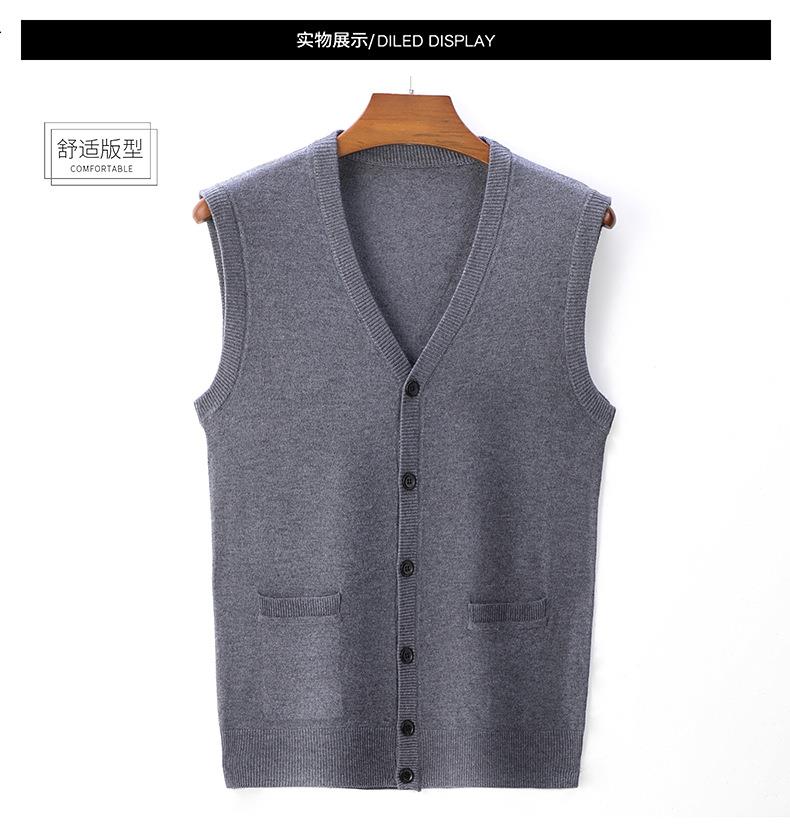 含毛混纺秋冬季男士羊毛背心中年休闲纽扣无袖开衫爸爸男装打底衫
