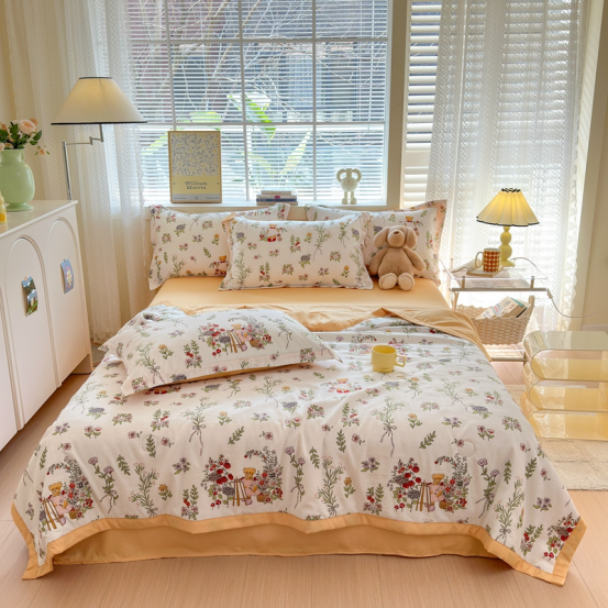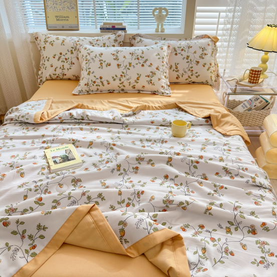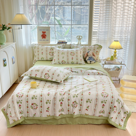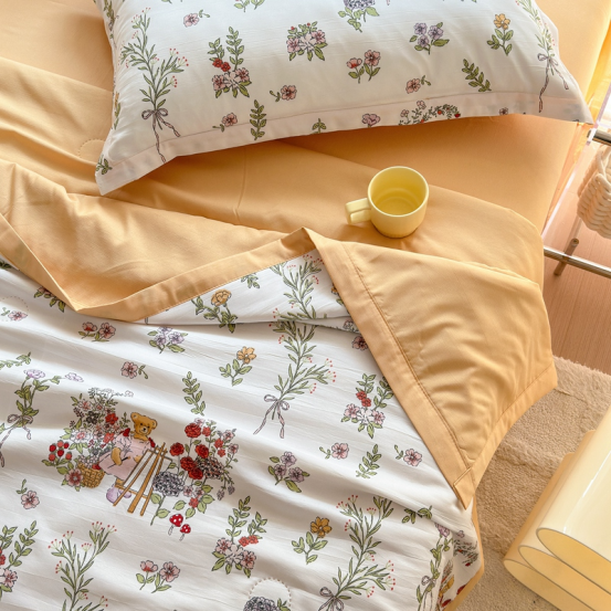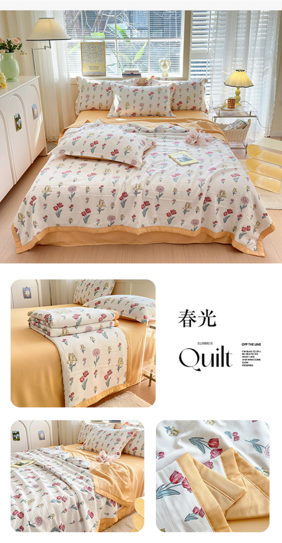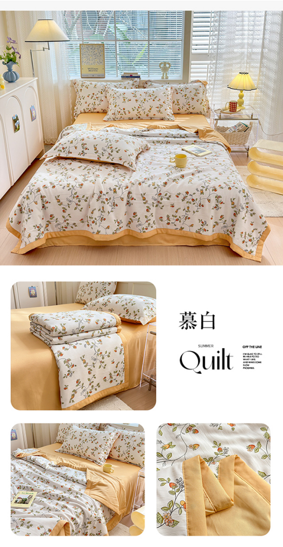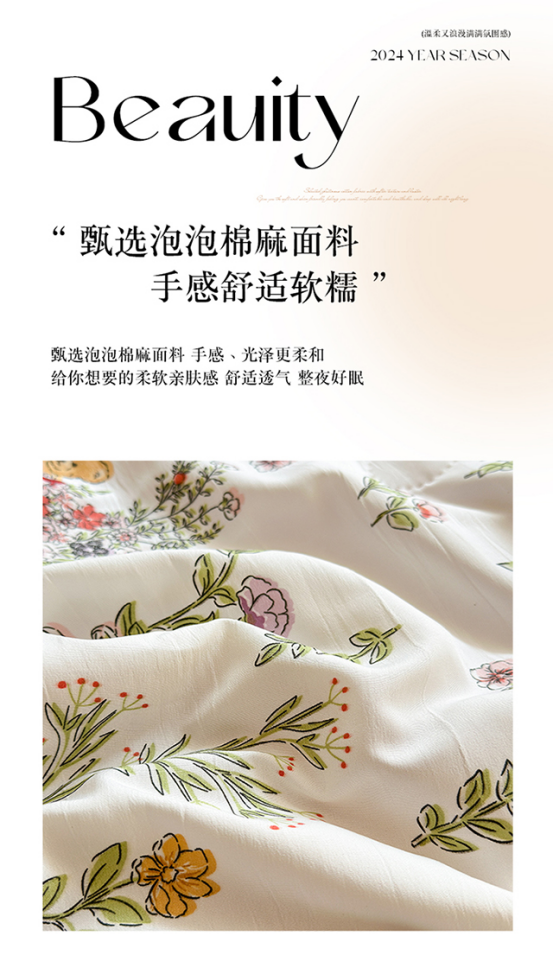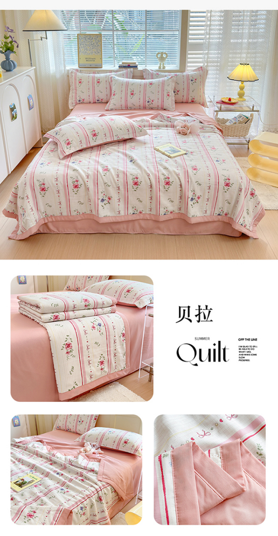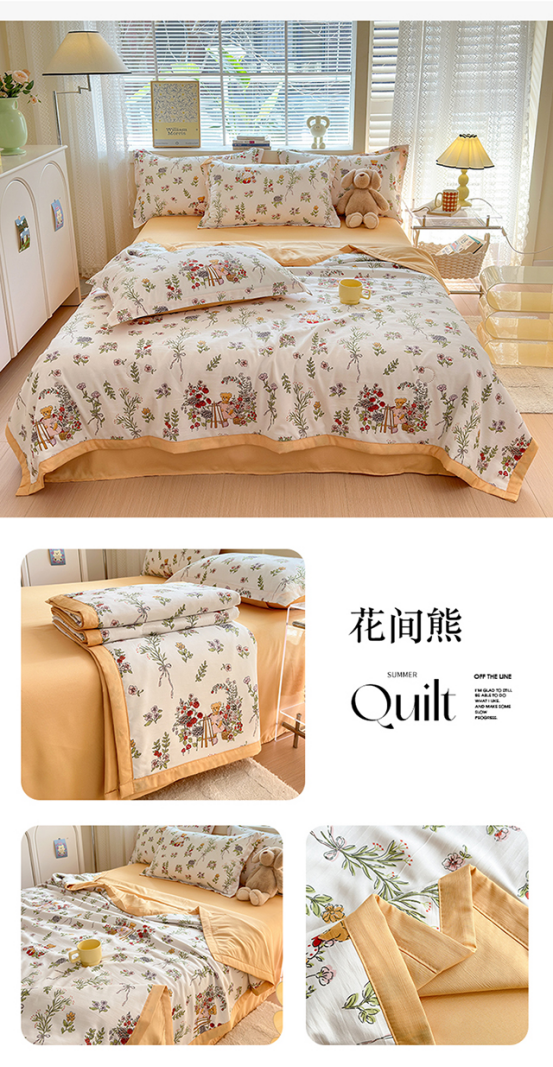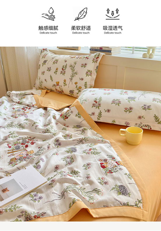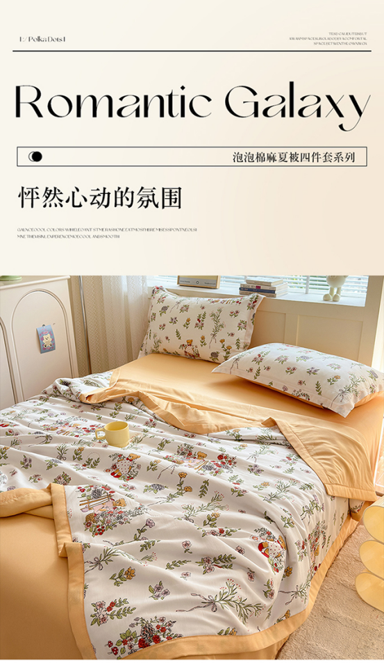 📣【泡泡棉麻夏凉被四件套单夏被多款可选】✅1、环保喷气印花,颜色鲜亮,手感舒适,❣️色牢度高,久洗如新✅