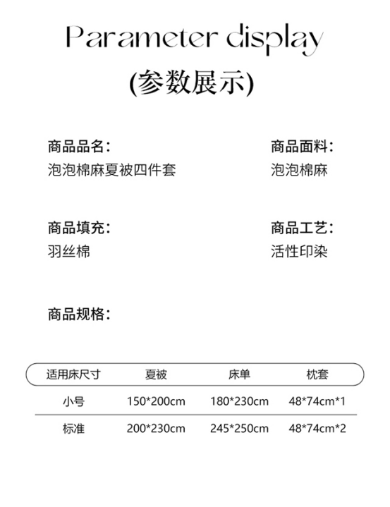 【规格】夏凉被150*200cm;夏凉被200*230cm;小号四件套;标准四件套;
