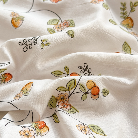 【面料】类有氧提花泡泡棉麻 【工艺】环保喷气印花,颜色鲜亮,手感舒适,色牢度高,久洗如新