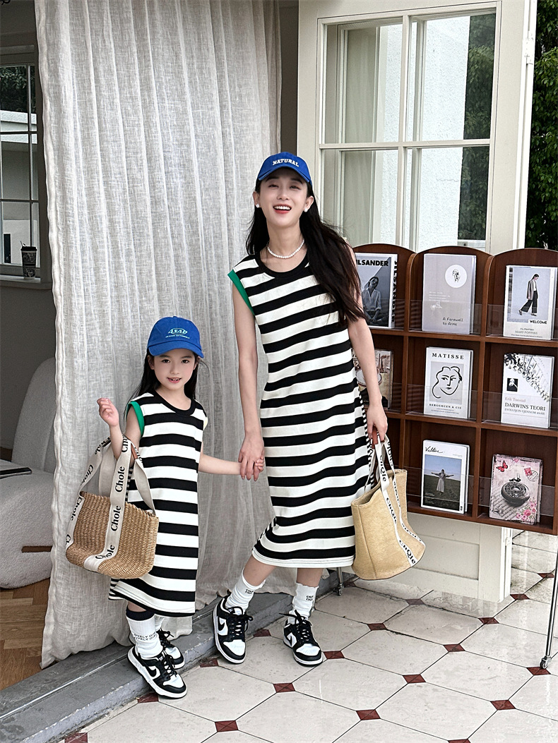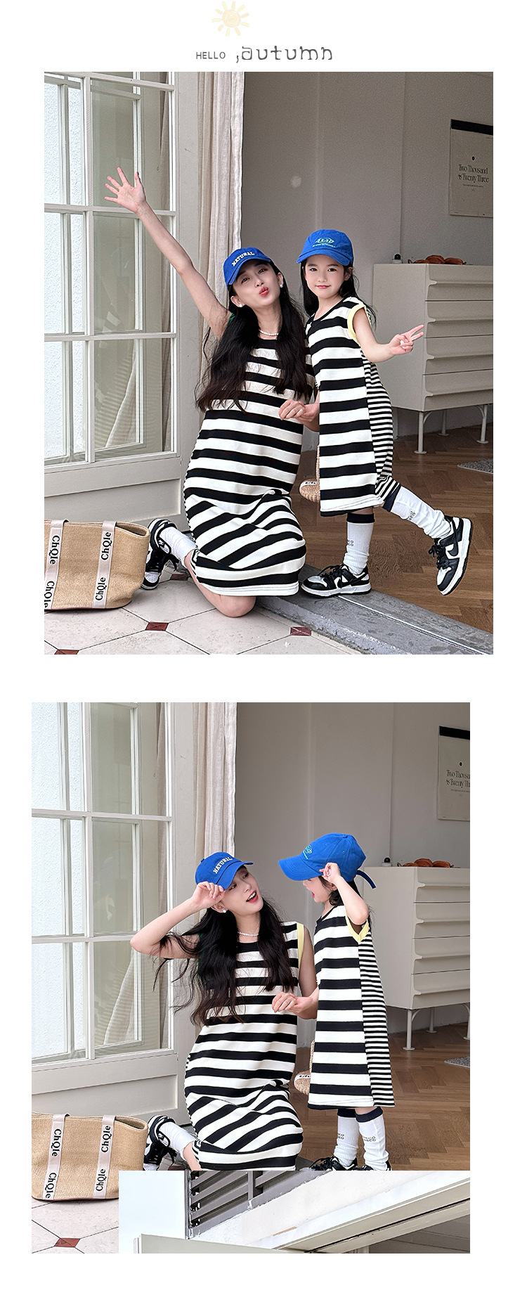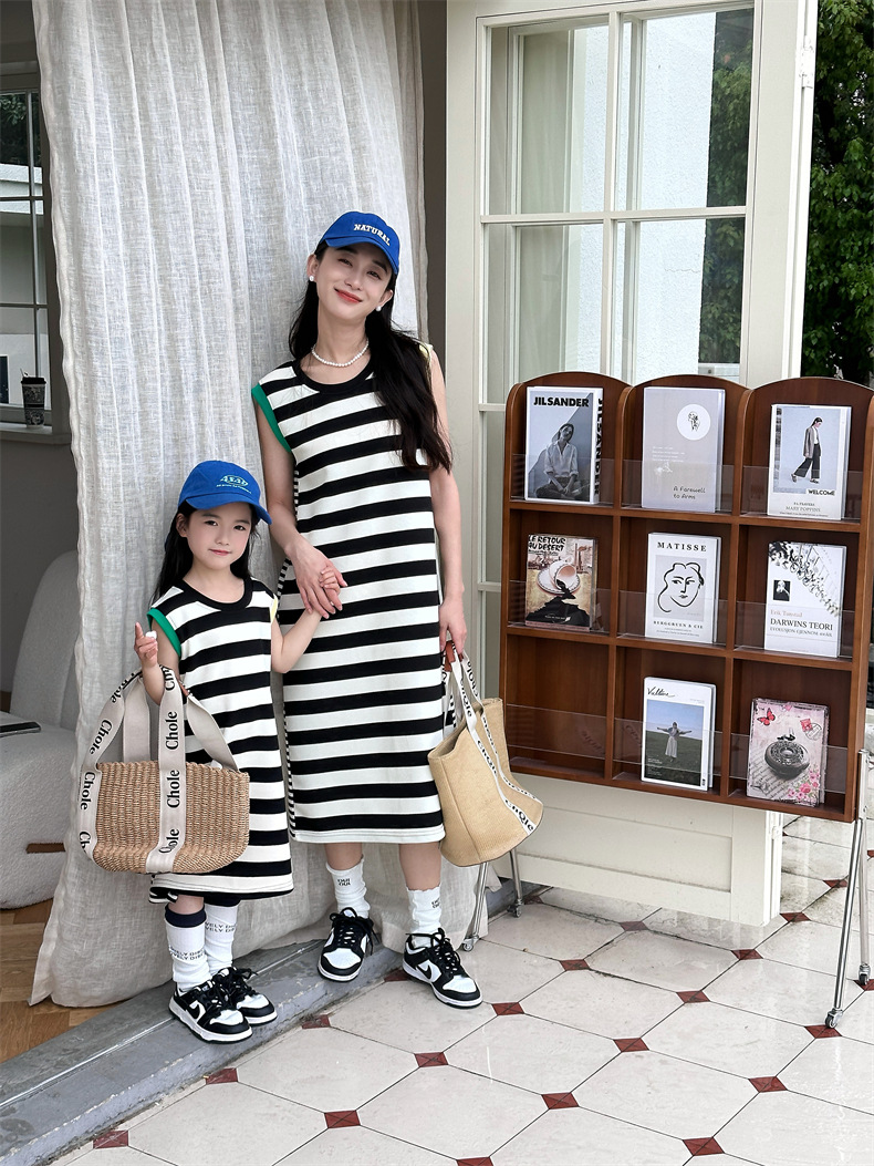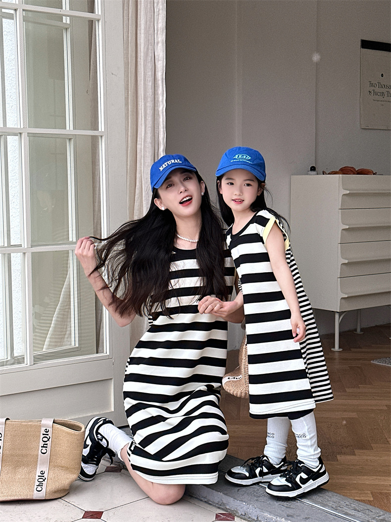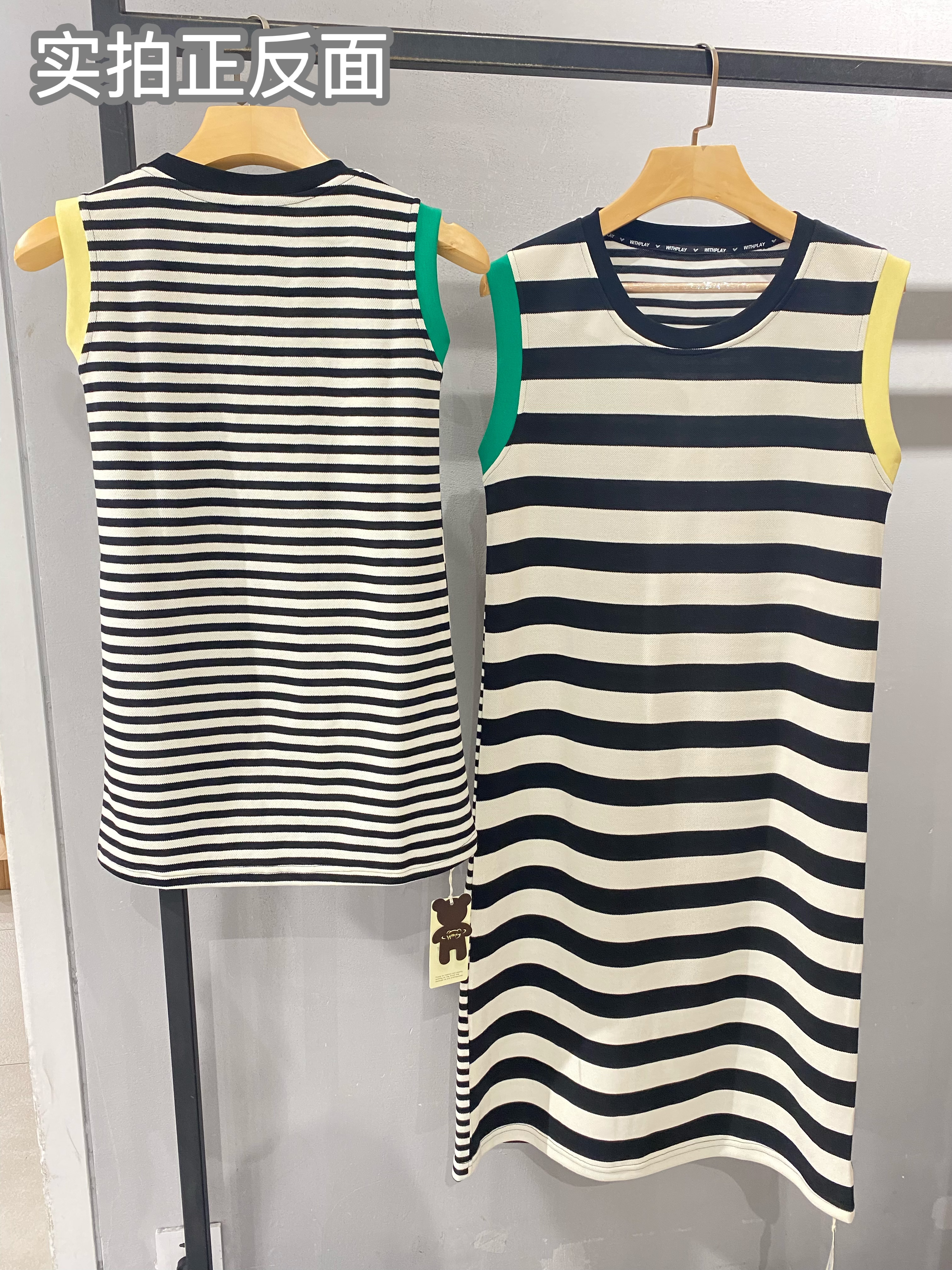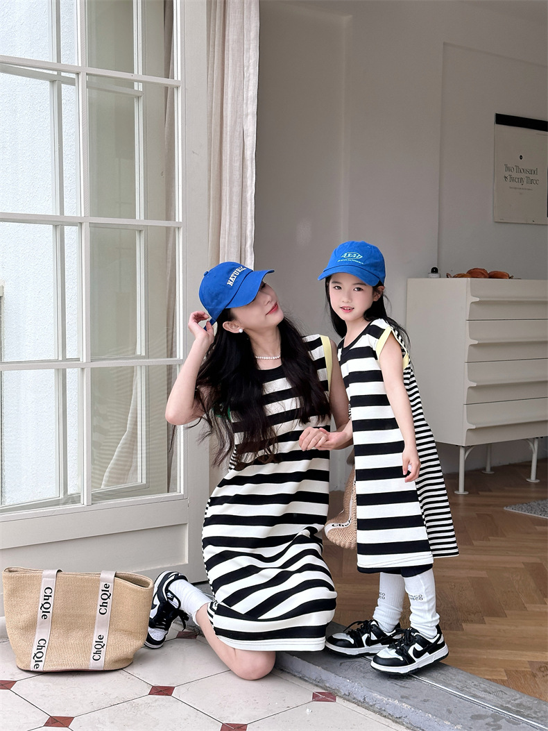 【YW】无忧购“一起玩亲子装”夏季撞色袖条纹T恤中长裙L24X51(截单后7天发货)25年清仓捡漏