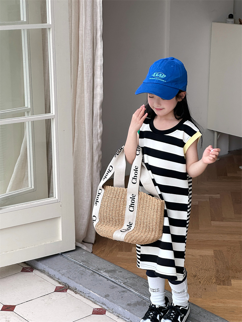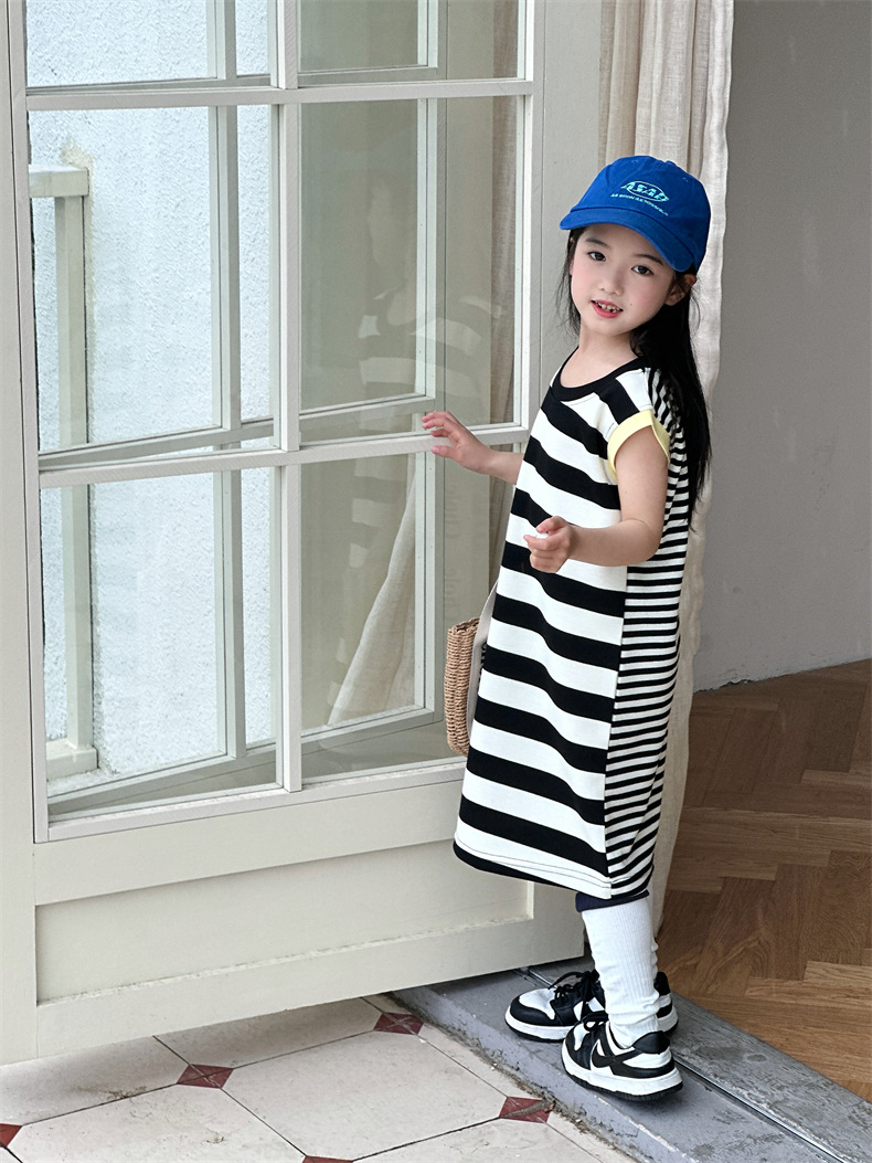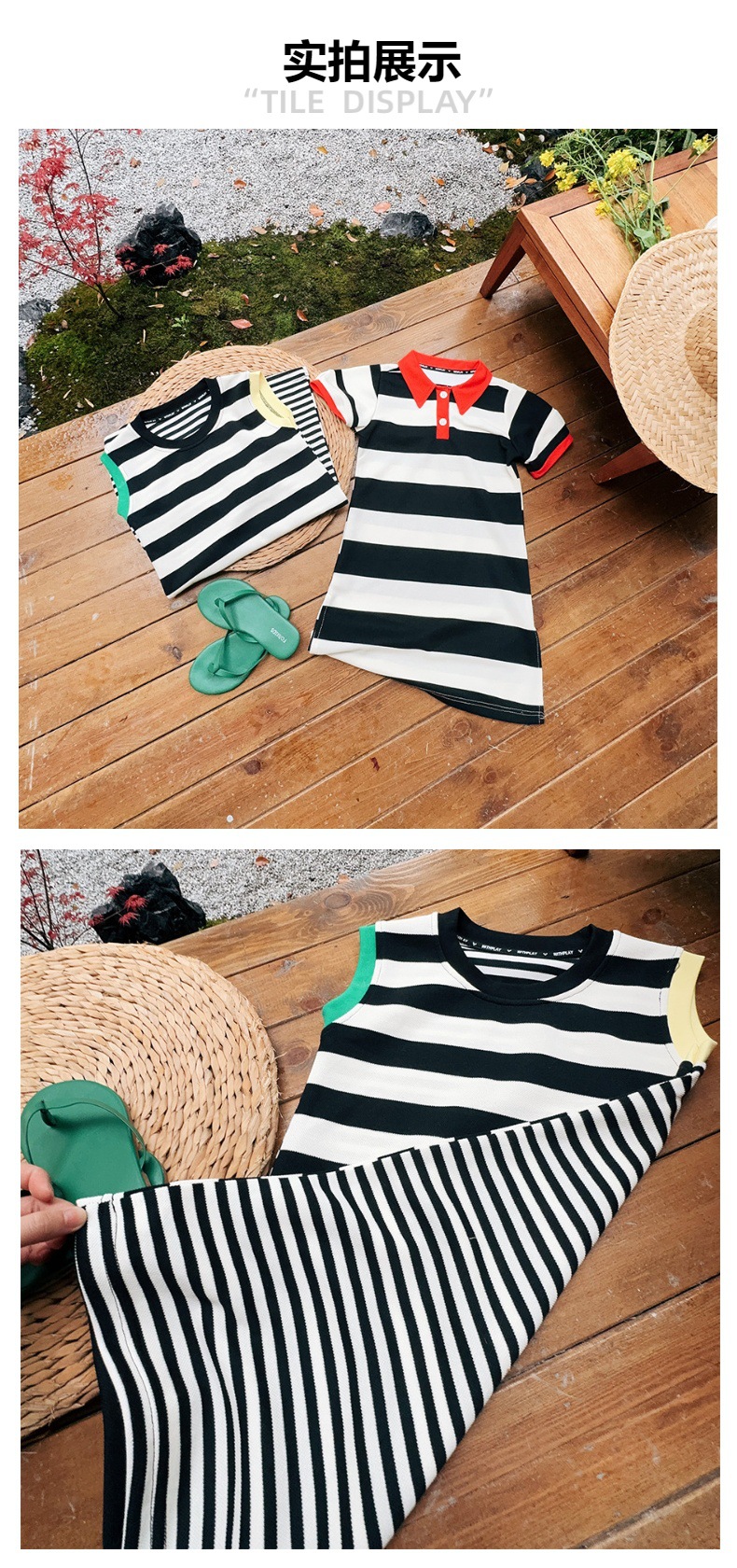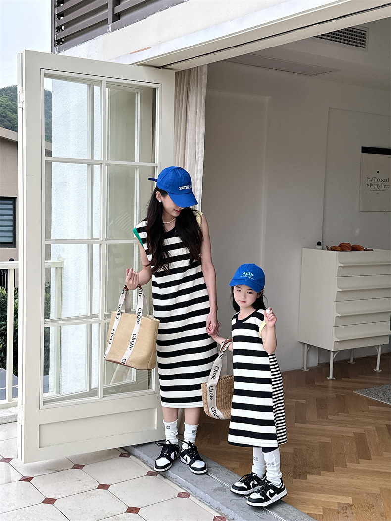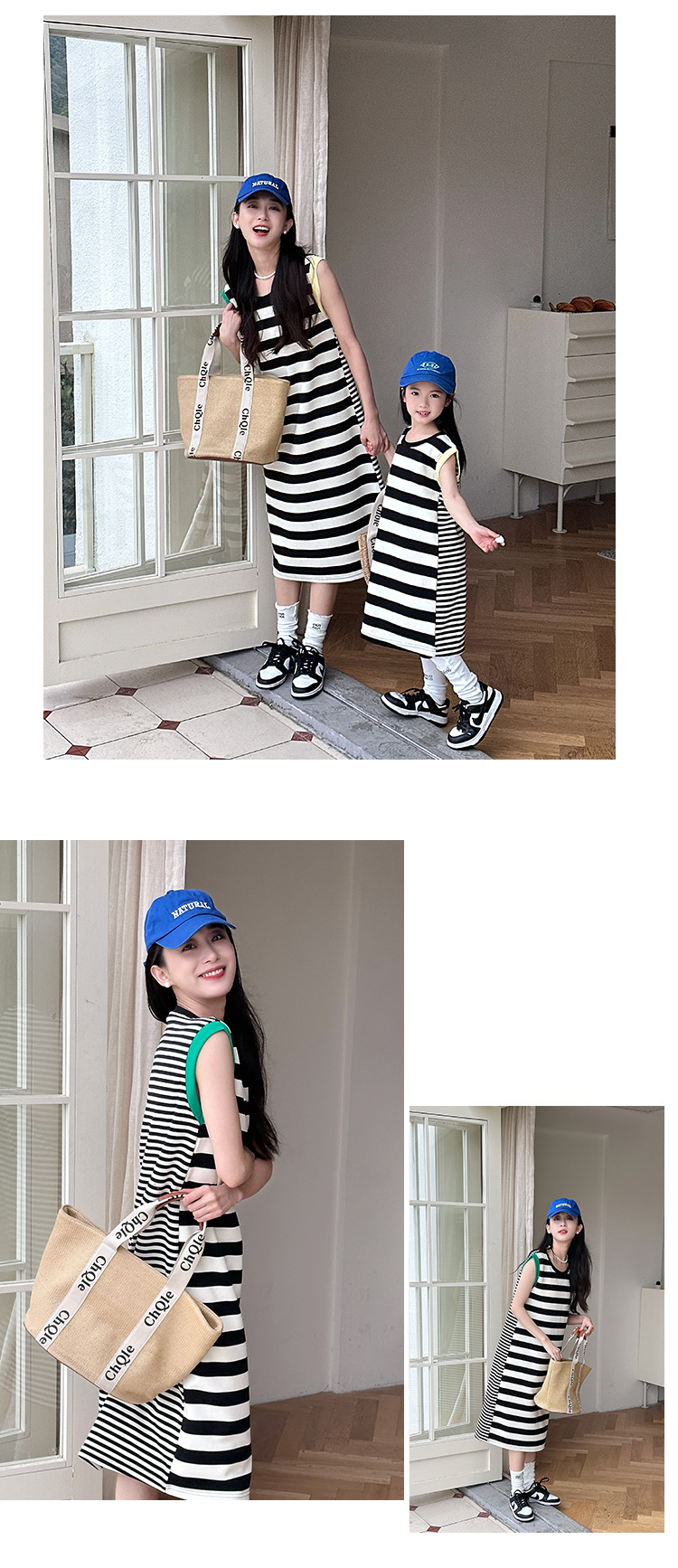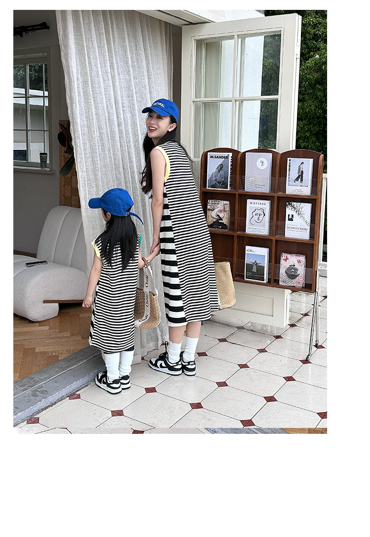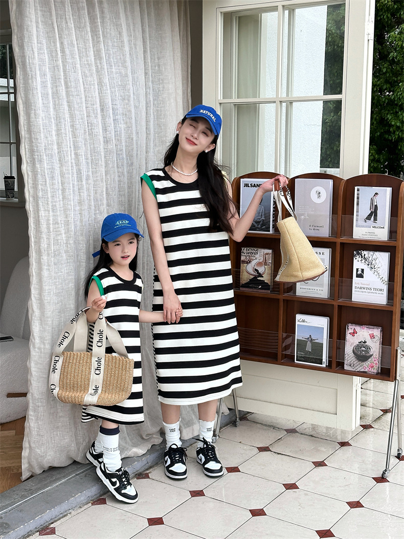 【YW】无忧购“一起玩亲子装”夏季撞色袖条纹T恤中长裙L24X51(截单后7天发货)25年清仓捡漏
