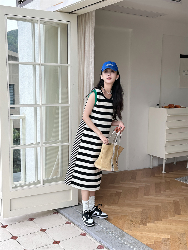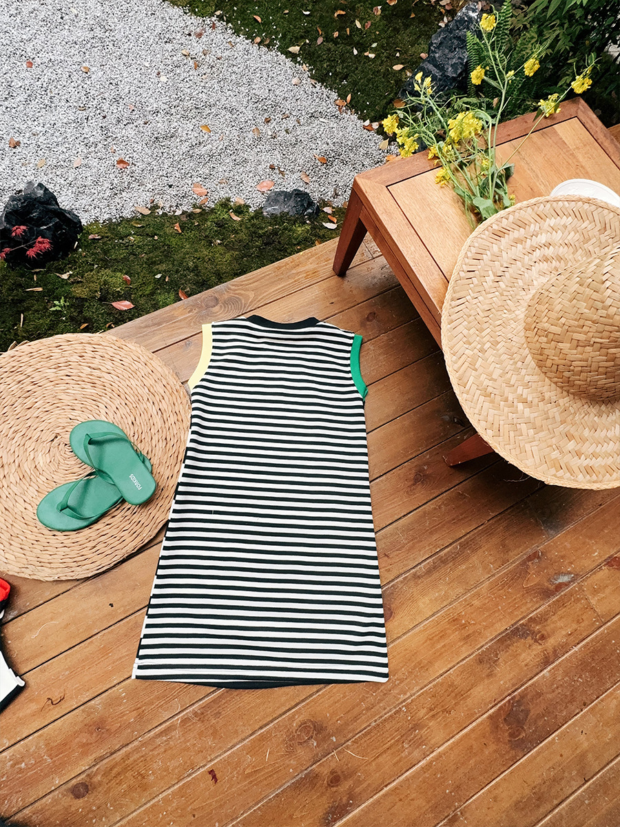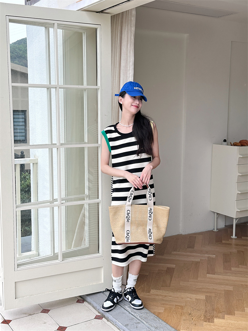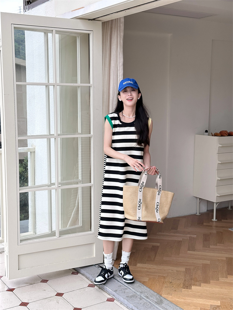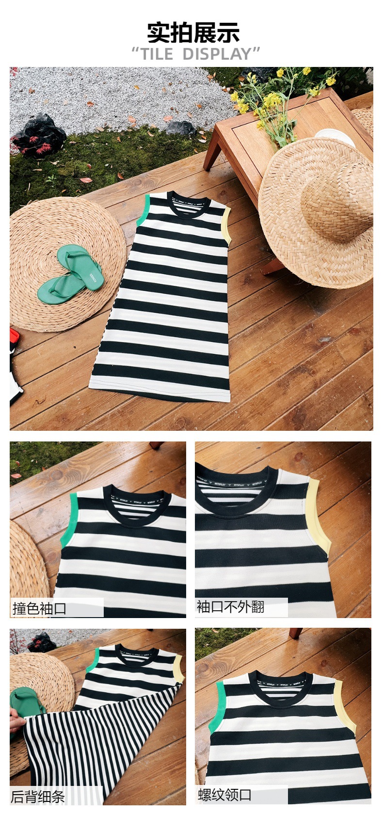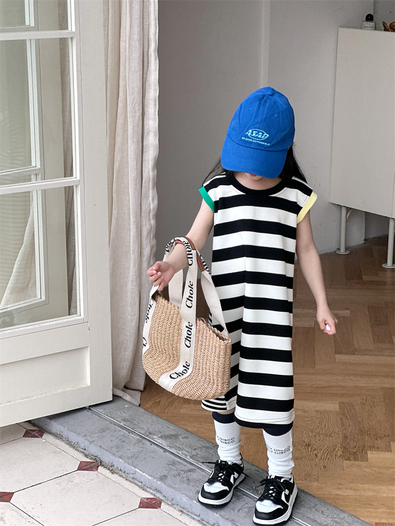 【YW】无忧购“一起玩亲子装”夏季撞色袖条纹T恤中长裙L24X51(截单后7天发货)25年清仓捡漏