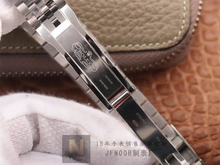 2、表带头粒与原装一致、5件拼装、难度非常高,表带与表壳交错型无缝连结。