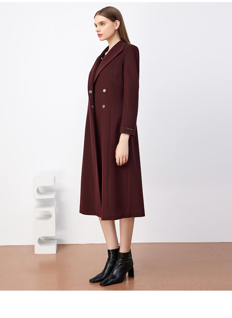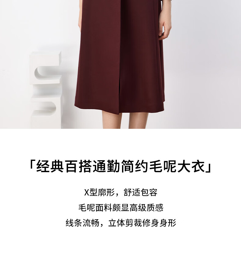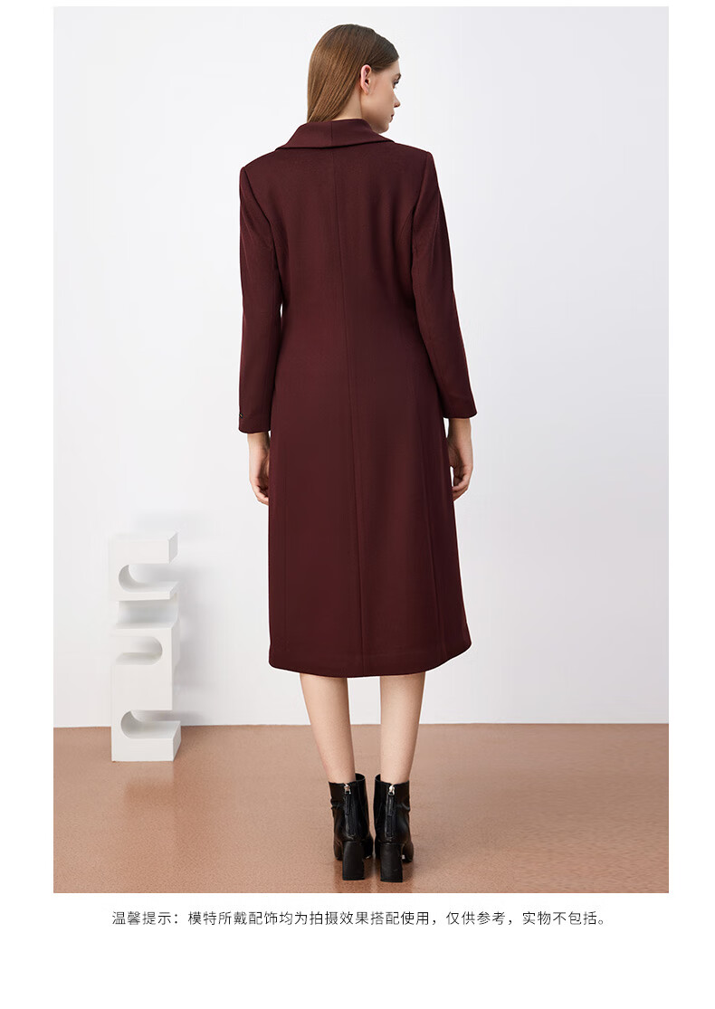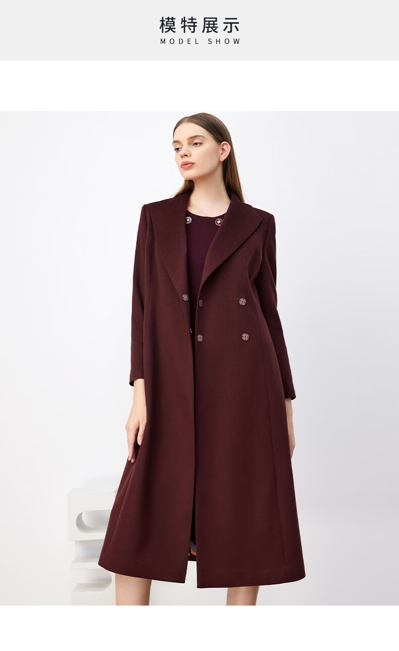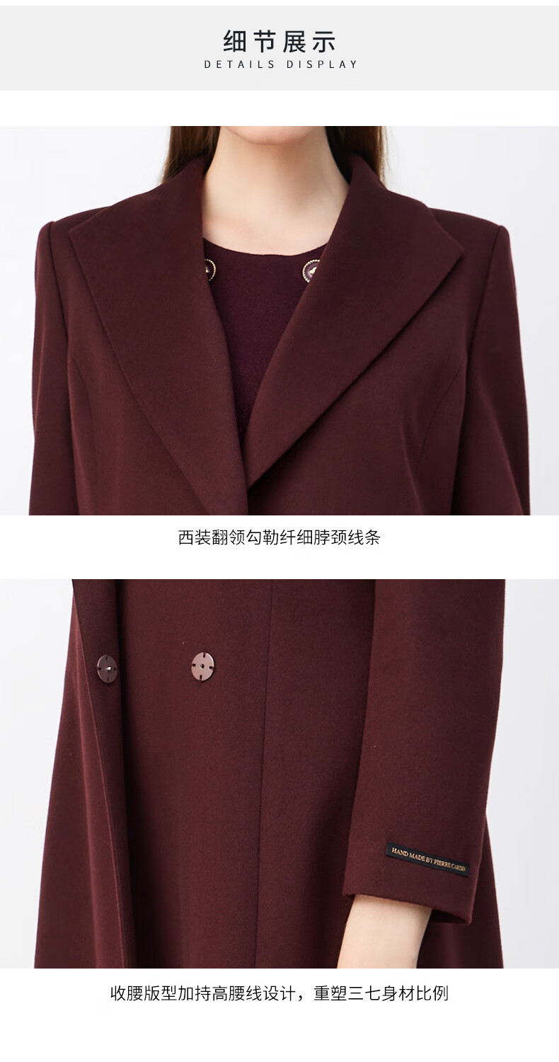 皮尔卡丹女装毛呢外套秋冬季大码高级感中长法式大衣P3455C3996K0