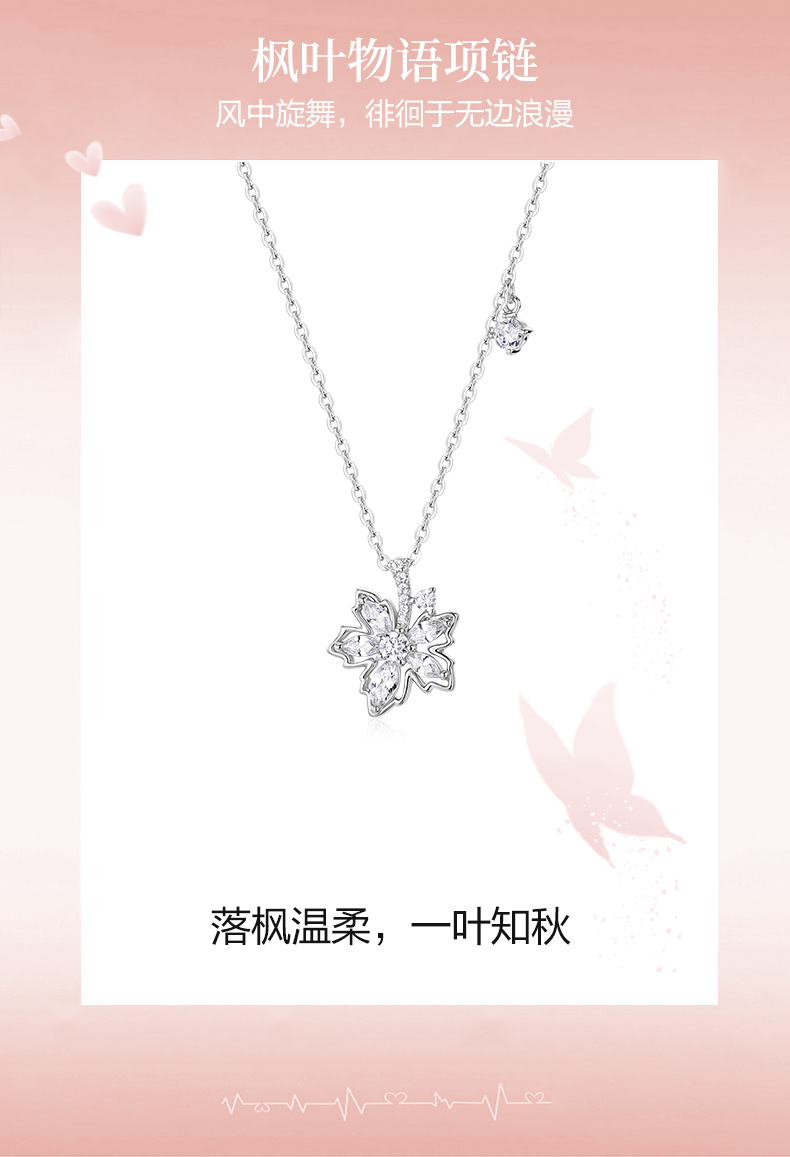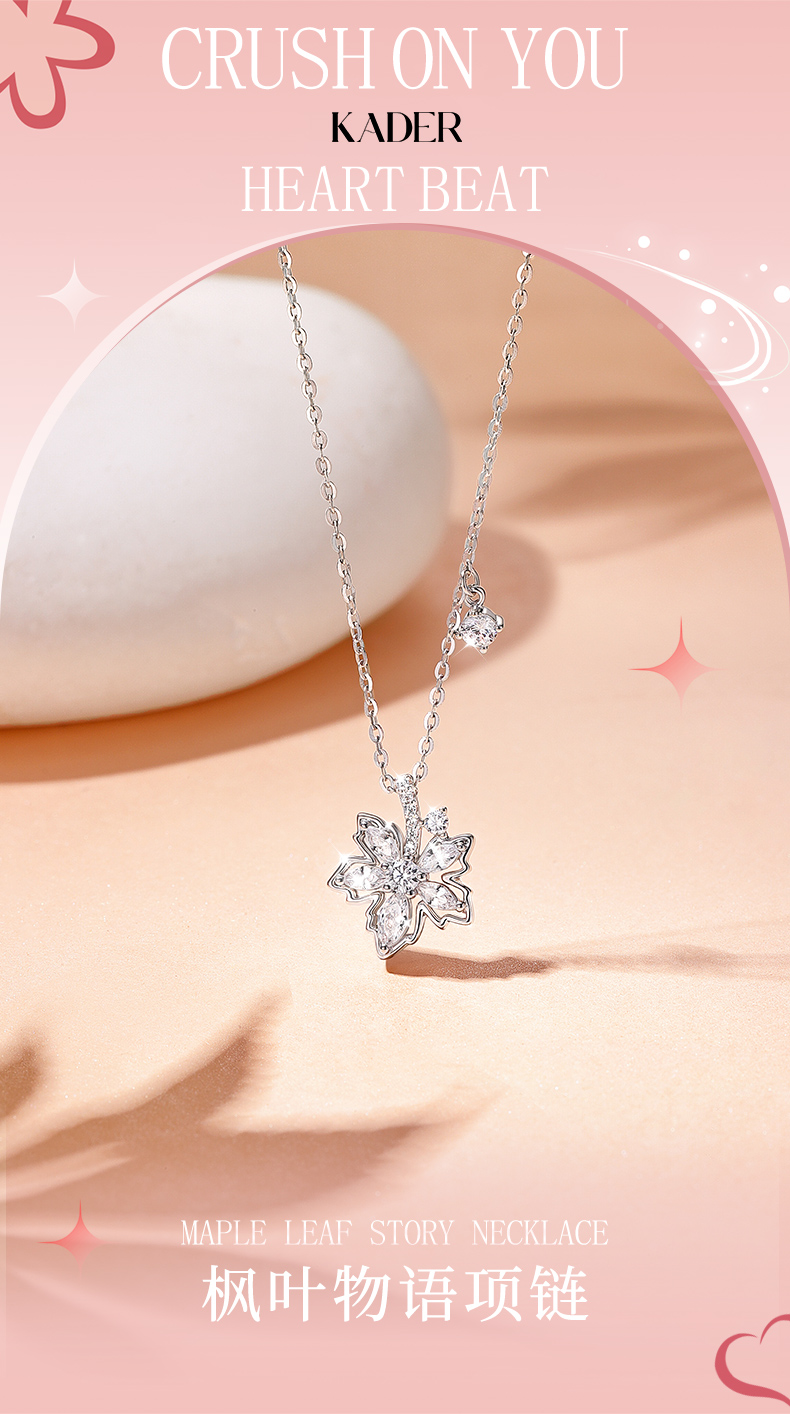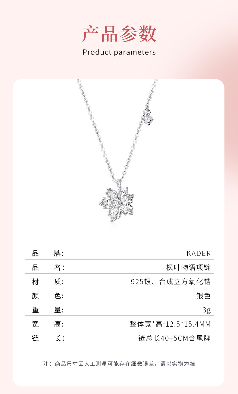 卡蒂罗/KADER 枫叶物语项链 枫叶像思念爱意传达精致百搭吊坠 满镶宝石时尚穿搭拼接链 生日礼品