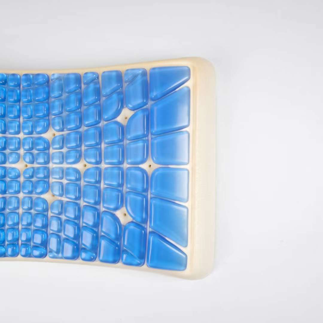 至于凝胶体颜色,慕思品牌方有专利权,工厂为避开不必要的争端,所以在凝胶体的配色上做成了清新的钻石蓝! 非常清澈!枕芯实拍 慕思凝胶枕中的凝胶,也是市面唯一一款可以做到360度支持颈椎的枕头,优于设计和材质,枕头不会出现向上、向下、向两侧的移动,是一种三维材料,它能像液体一样变形适应您的身体,又能像固体一样提供失重感的支撑。