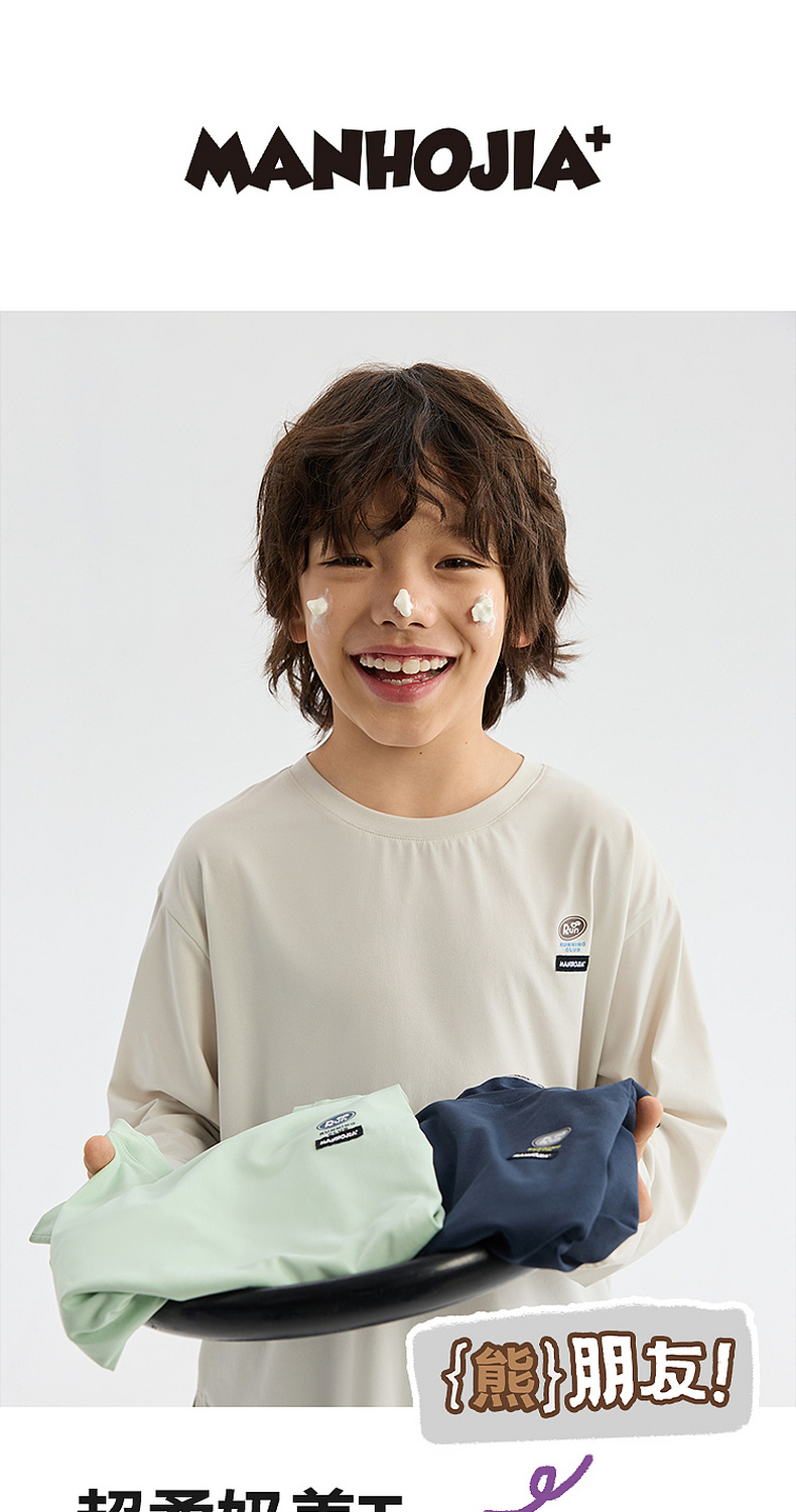 MANHOJIA【奶盖T】儿童长袖T恤超轻超柔运动速干亲肤打底T恤