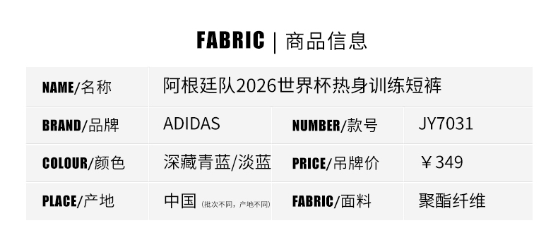 SFS阿迪达斯2026世界杯阿根廷足球训练短裤 JY7031