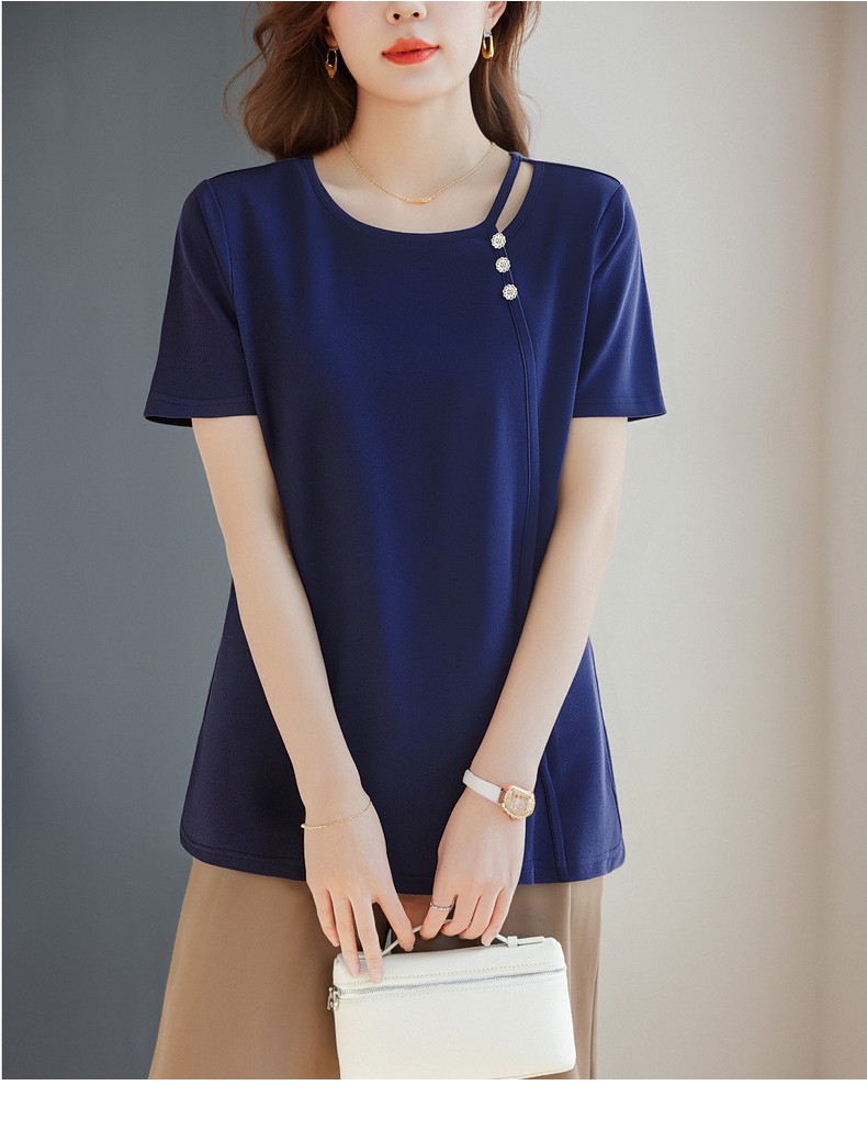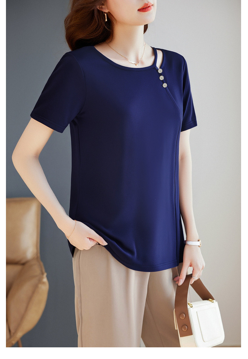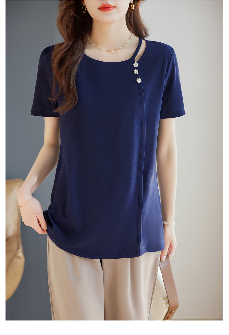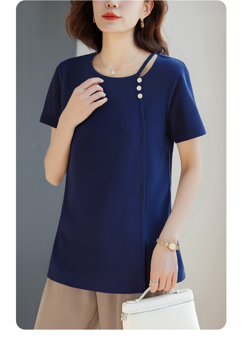 芳妮诗2025夏季新款大码女士T恤胖mm宽松翻领短袖减龄娃娃领上衣