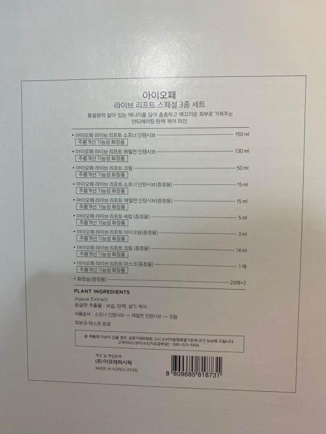IOPE/艾诺碧/亦博 live lift 龙舌兰保湿紧致颜柔水乳面霜套盒JPY带授权招加盟代理