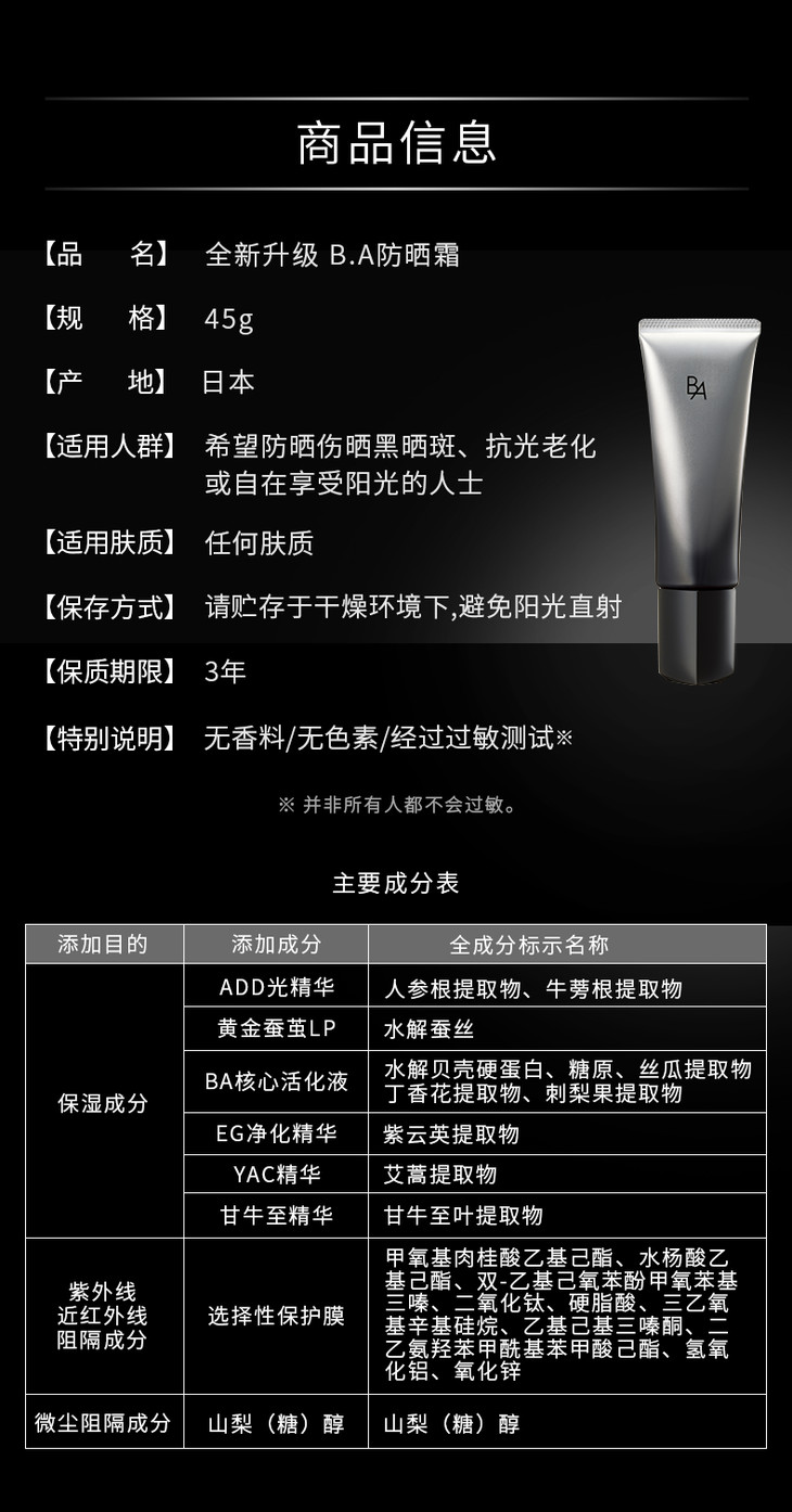 POLA/宝丽 新款黑BA防晒霜45g SPF50+ 面部保湿防紫外线隔离日霜