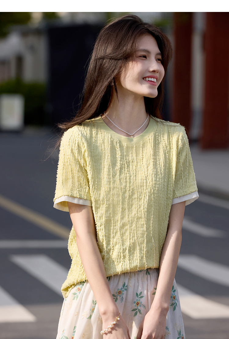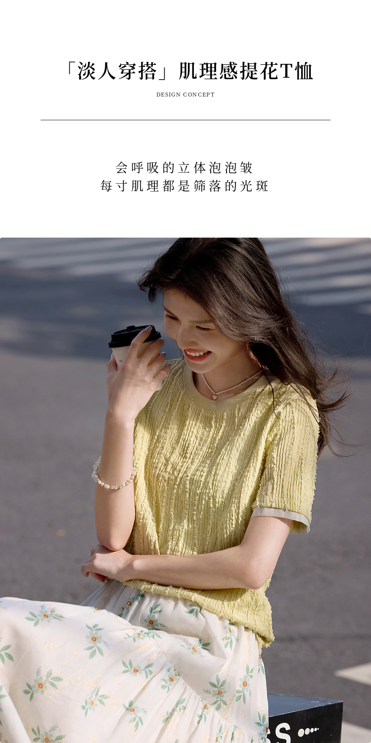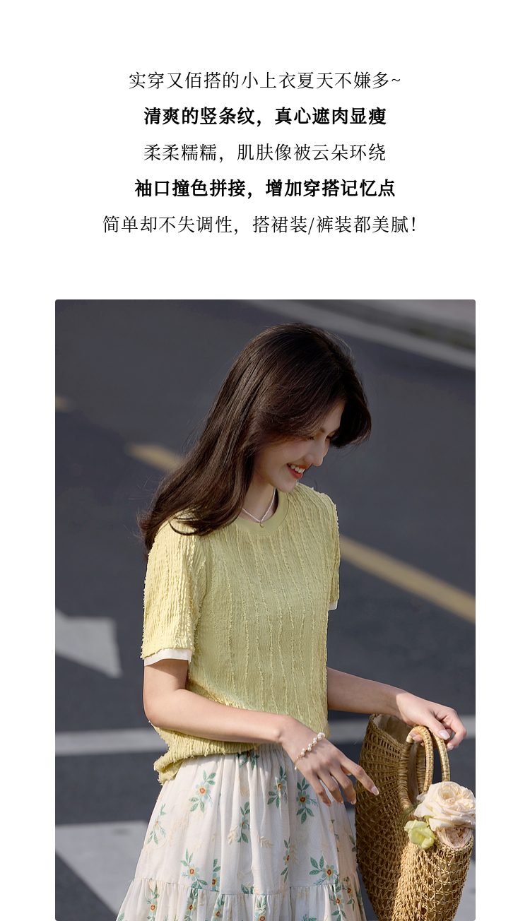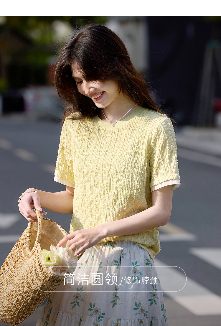 【专属特价】熙世界肌理针织提花T恤女短袖2025夏季新款法式气质正肩体恤上衣